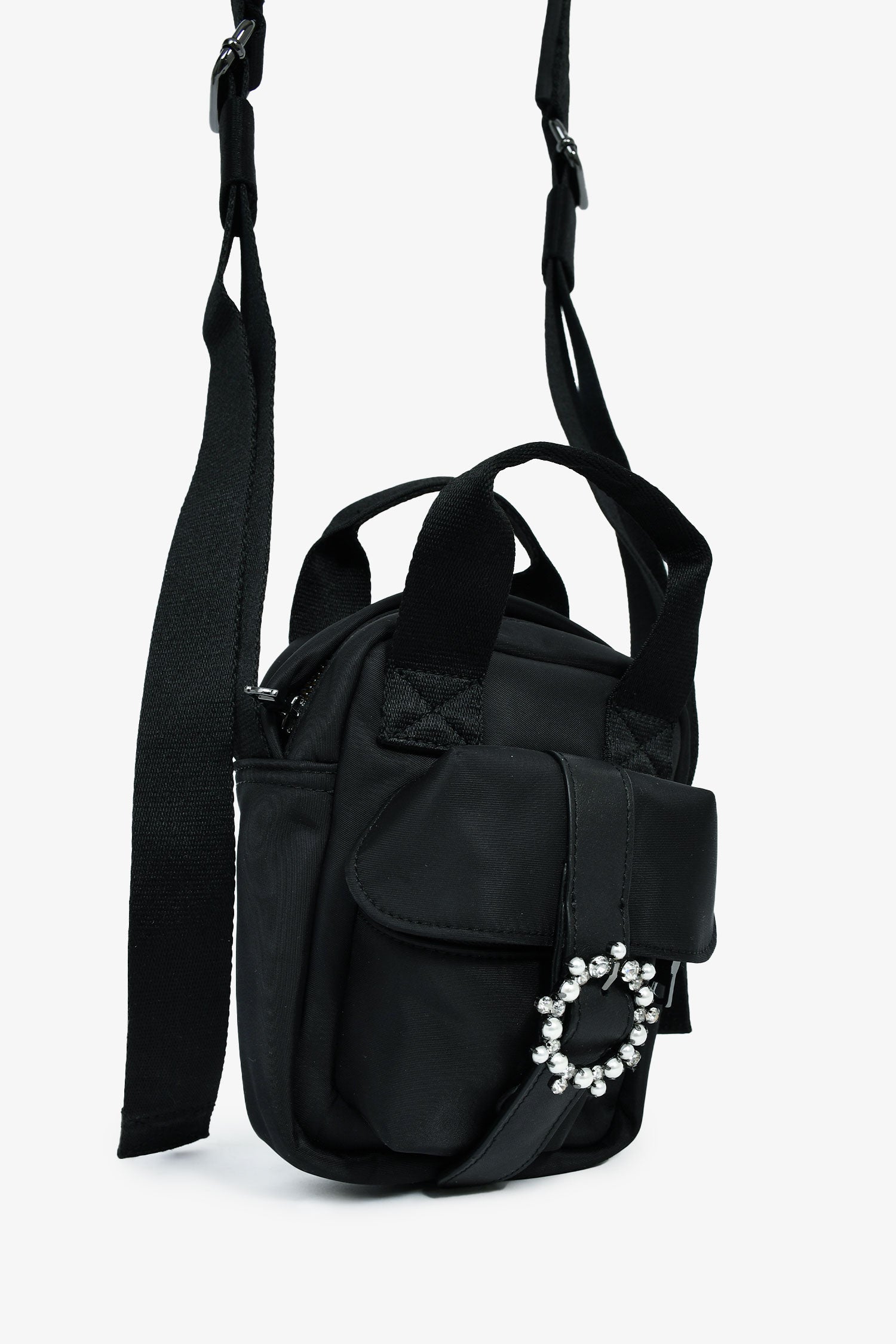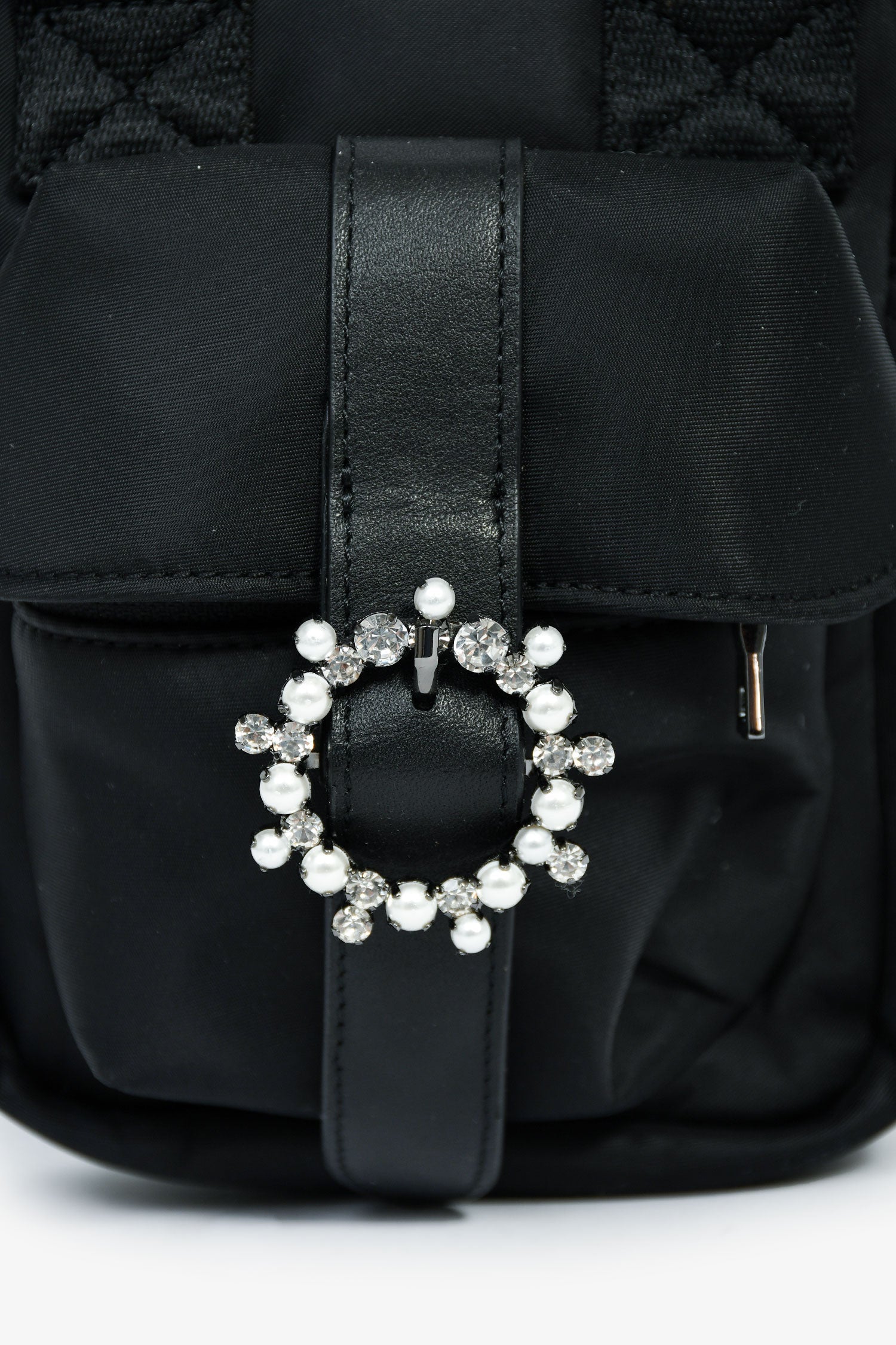 Simone Rocha Black Nylon Faux Pearl/Crystal Buckle Crossbody Bag