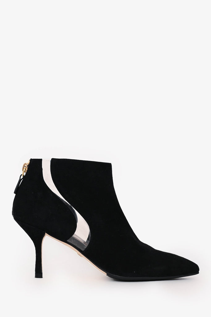 Stuart Weitzman Black Suede Leather/PVC Dasha Ankle Boots Size 6
