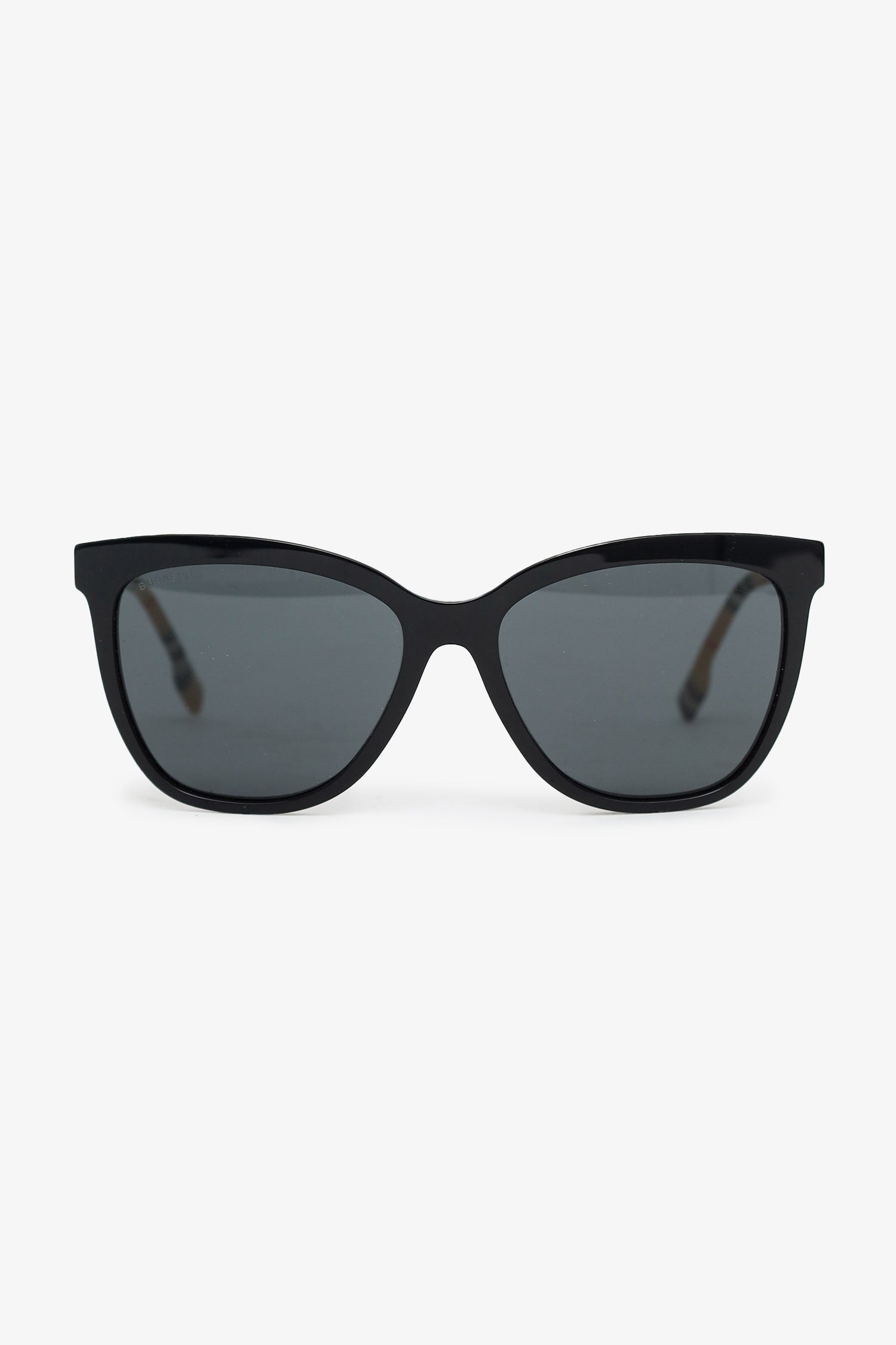 Burberry Black Frame Check Sunglasses. Built-in nose pads. Silver-tone hardware.