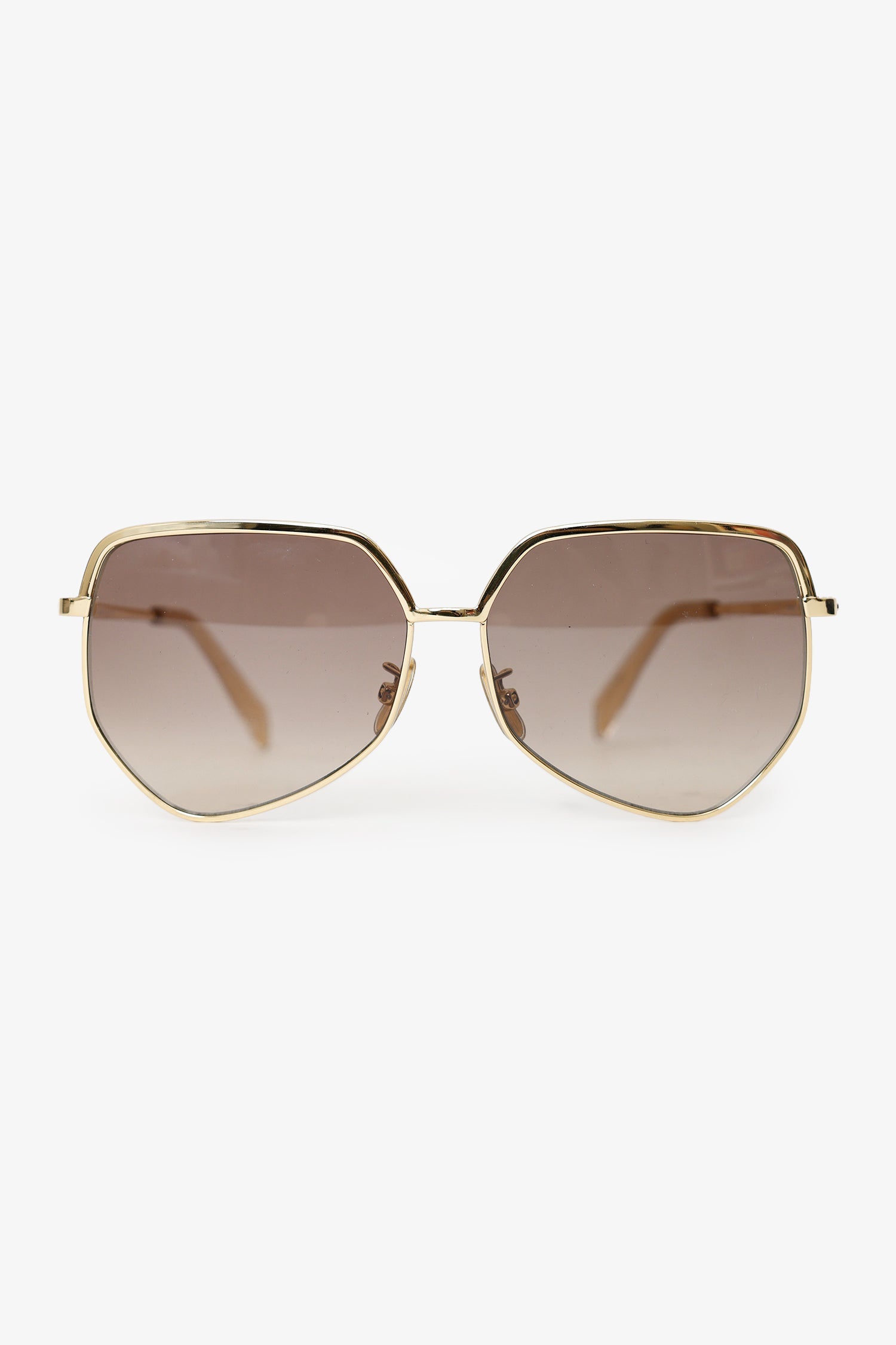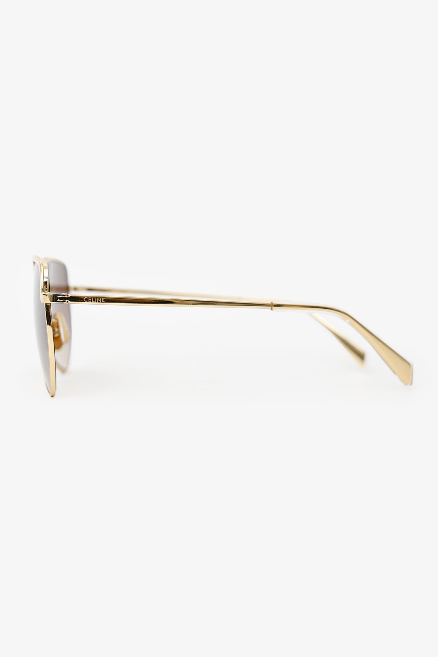 Celine Gold Tone Metal Frame Square Sunglasses. Adjustable nose pads. Gold-tone hardware.