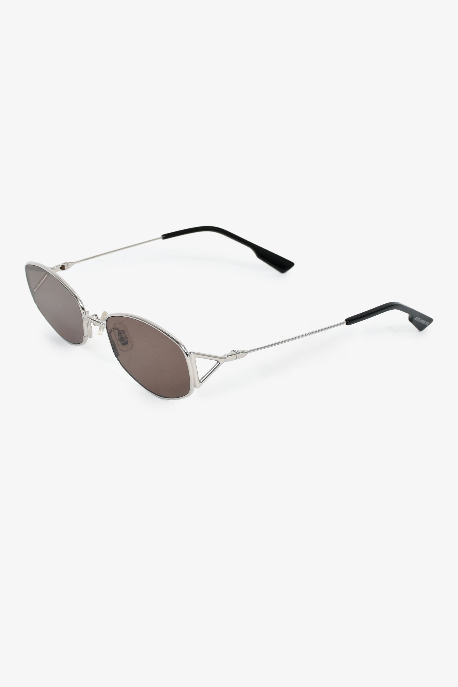 Gentle Monster Black/Silver 'Moneta 02' Narrow Sunglasses. Built-in nose pads. Silver-tone hardware.