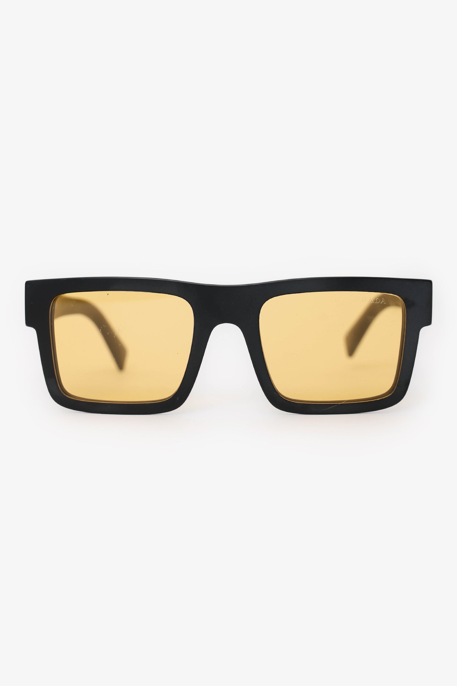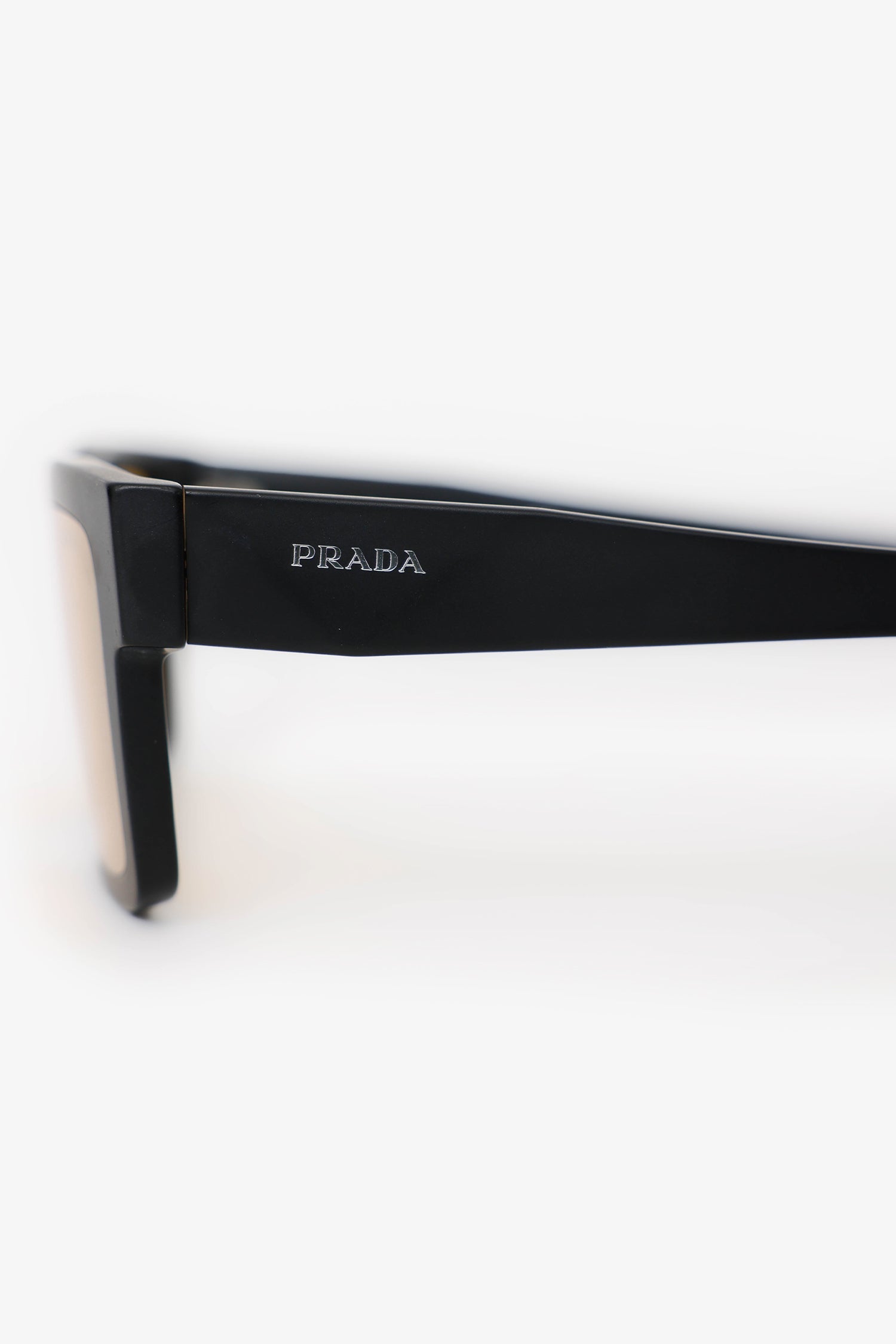 Prada SPR 19W Black Acetate Symbole Sunglasses. Built-in nose pads. Silver-tone hardware.
