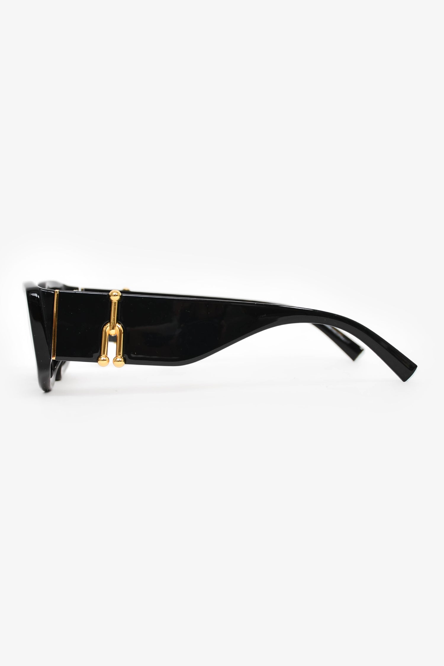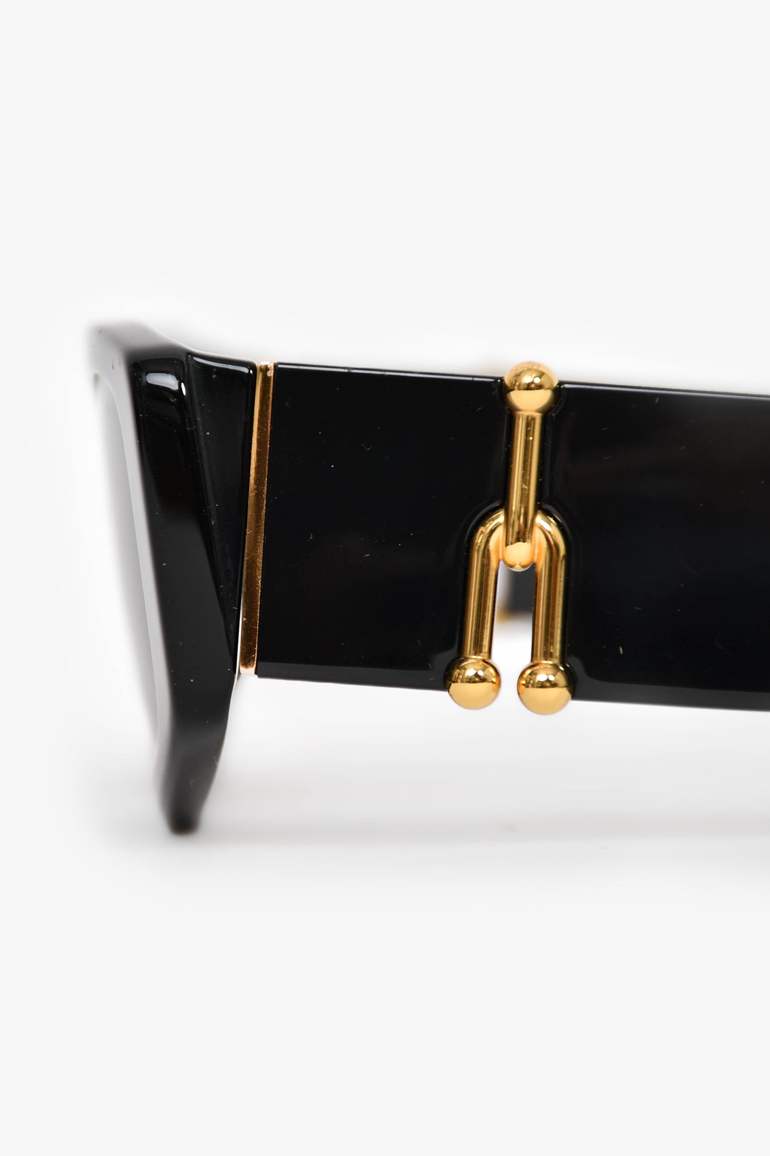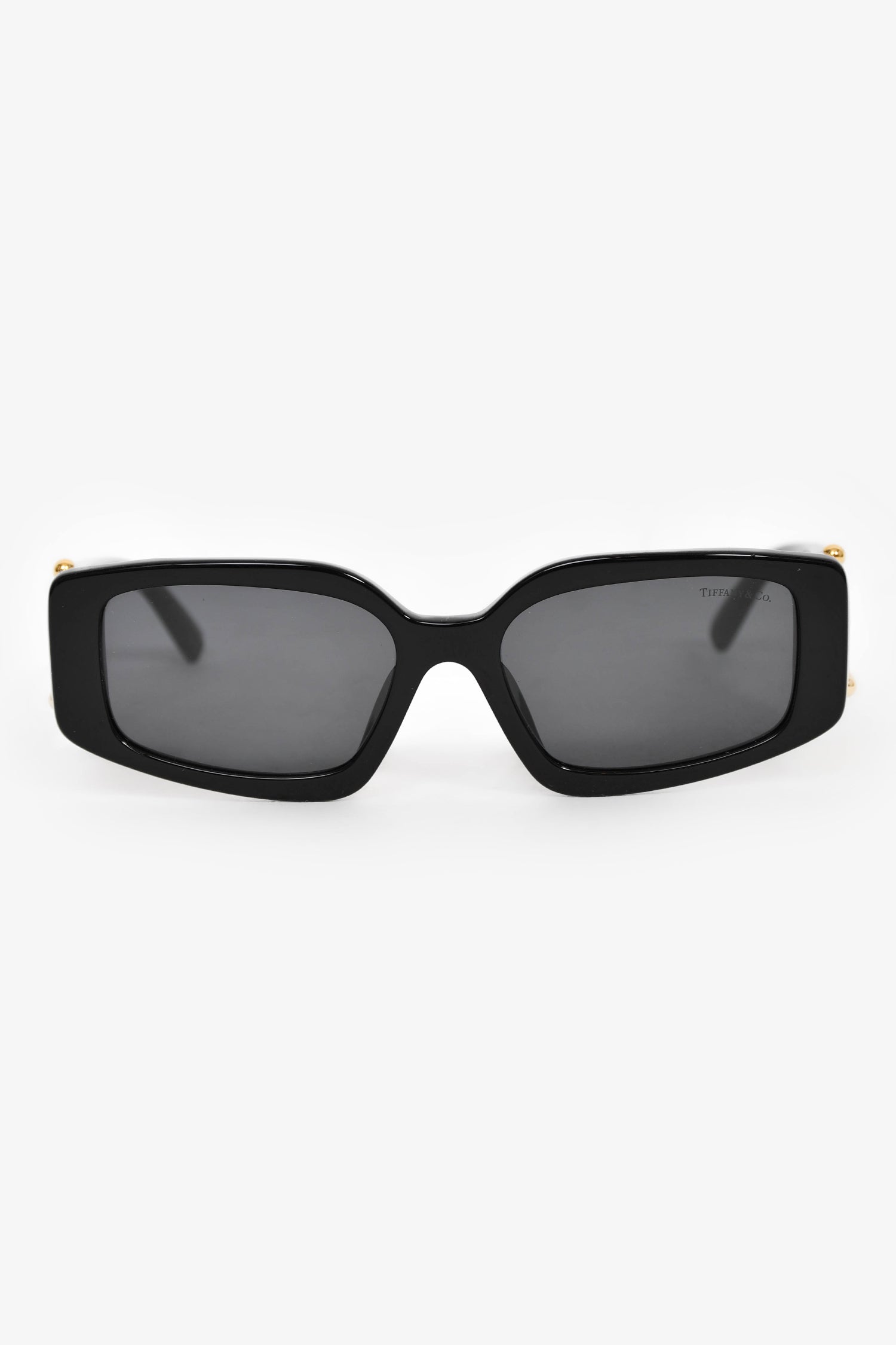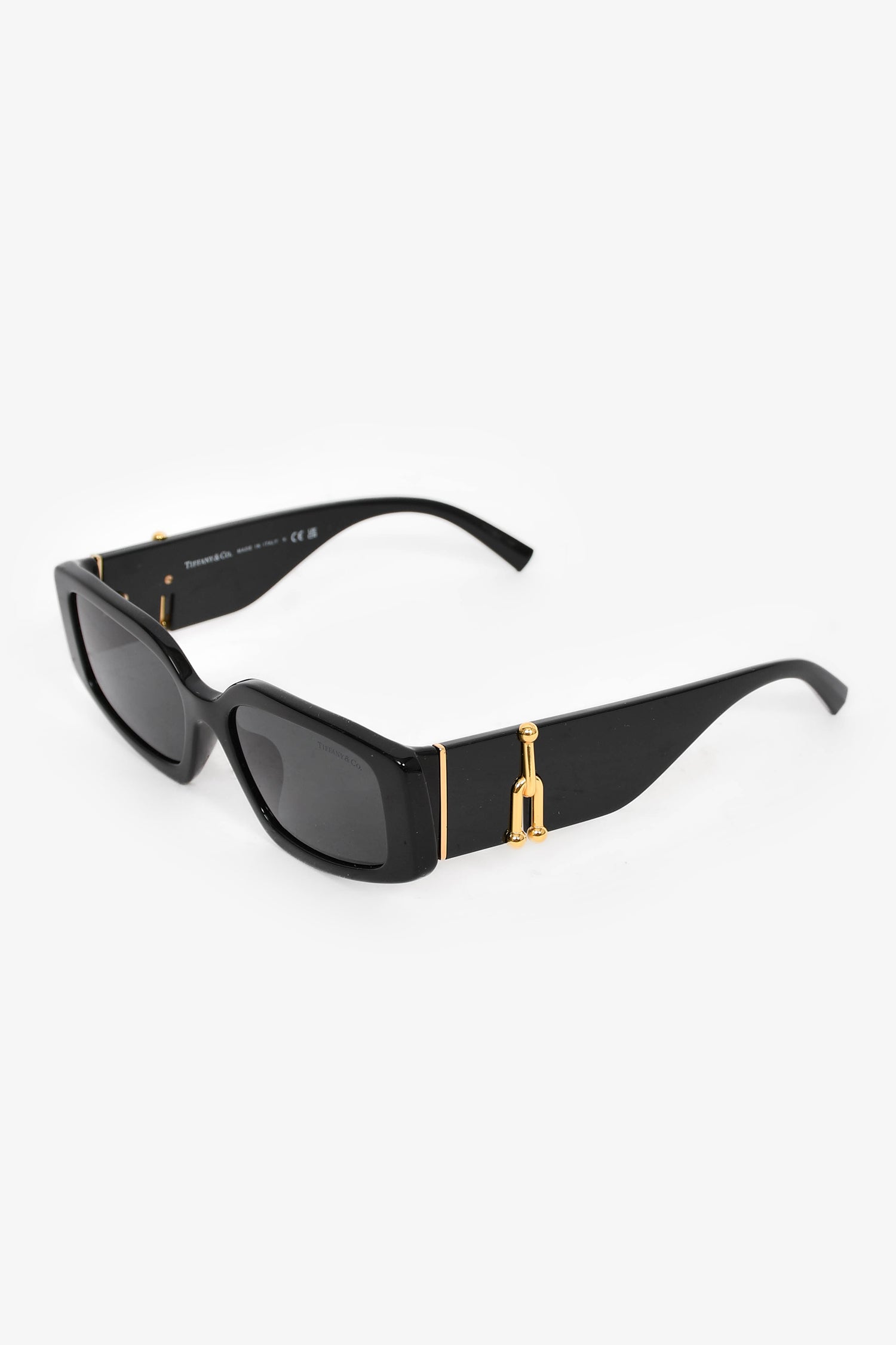 Tiffany & Co. Black Rectangular Sunglasses. Built-in frame nose pads. Gold-tone hardware.