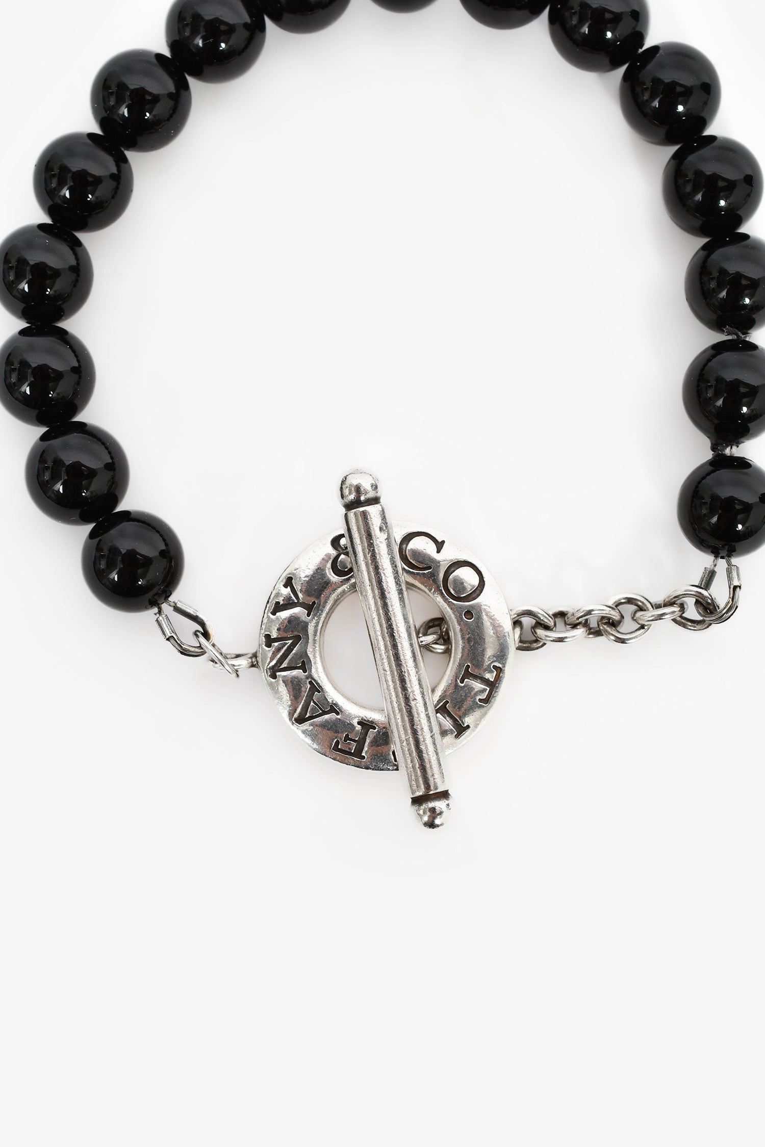 Tiffany & Co. Onyx Bead/Sterling Silver Toggle Bracelet. Toggle closure.