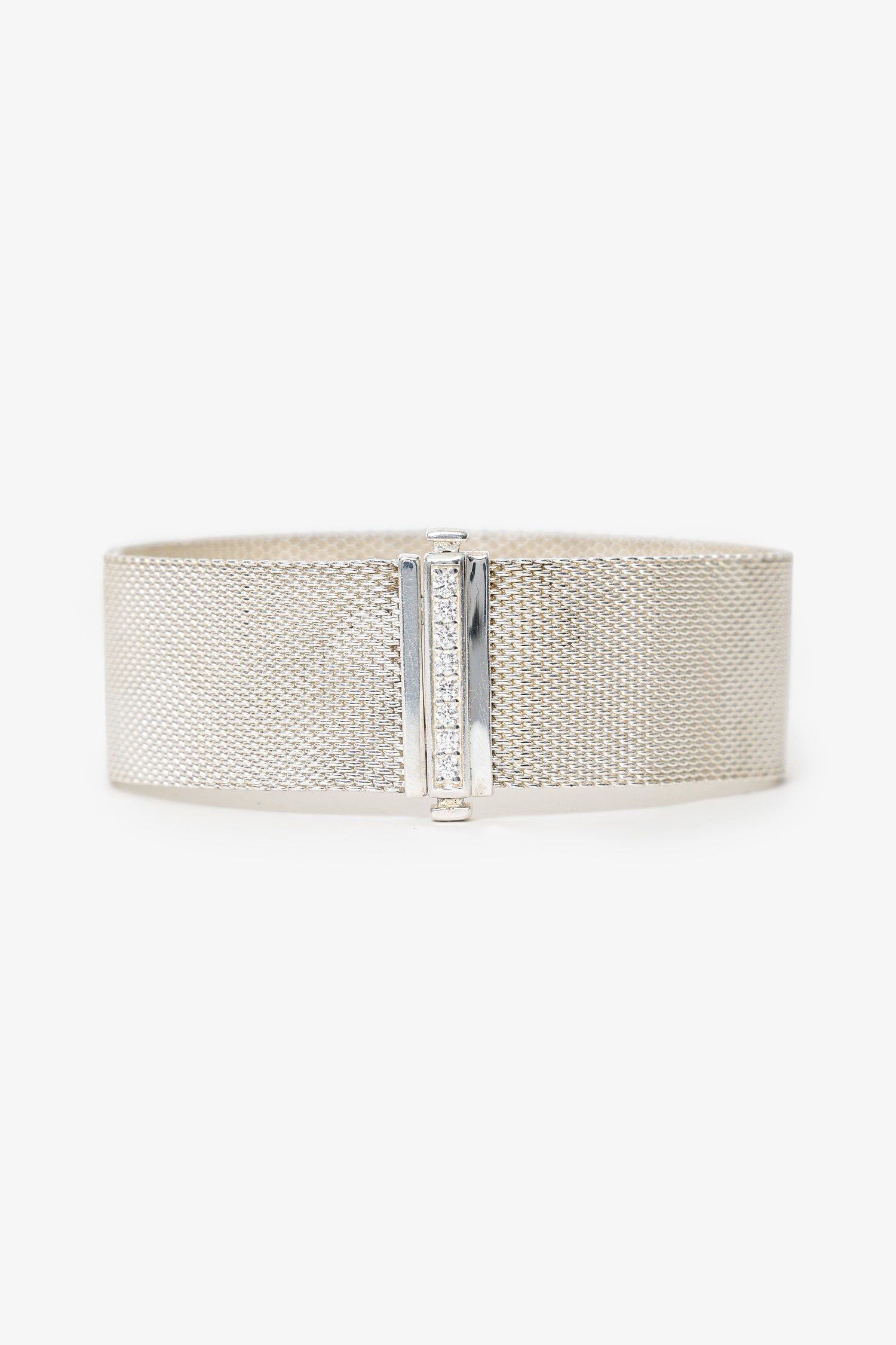 Tiffany & Co Sterling Silver Diamond Mesh Somerset Bracelet. Push-clasp closure.