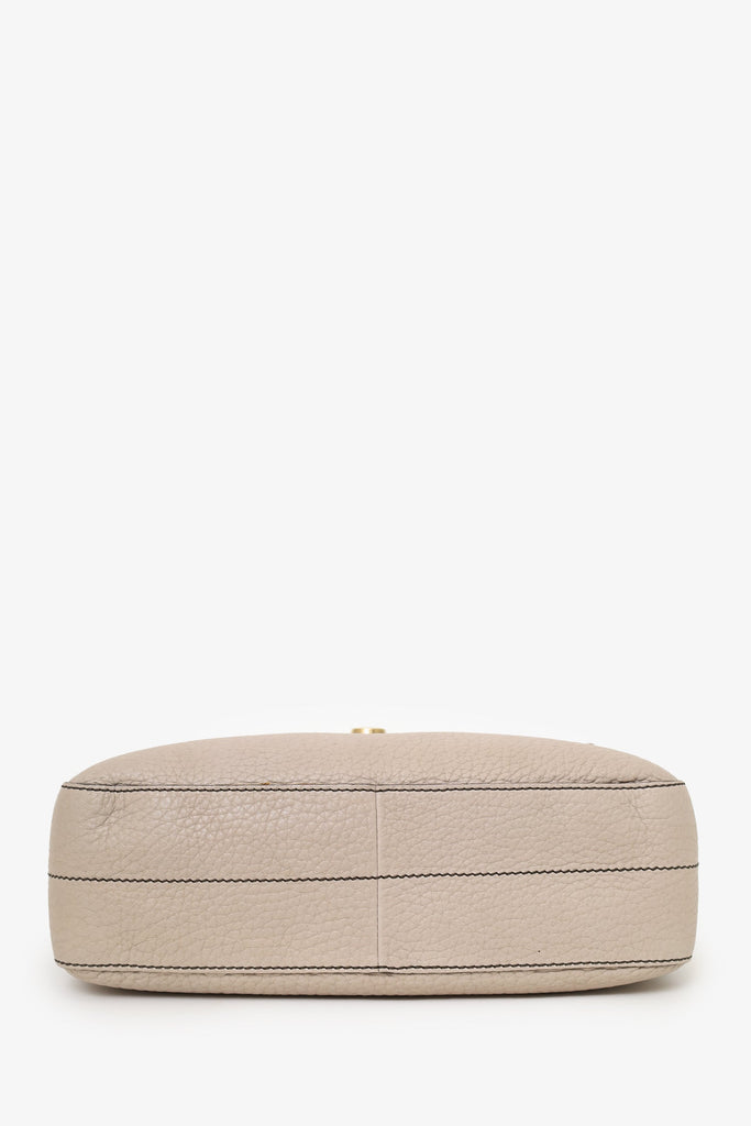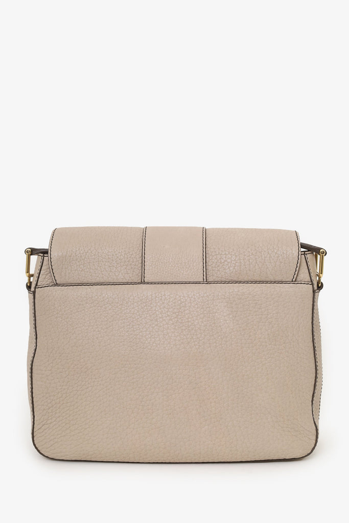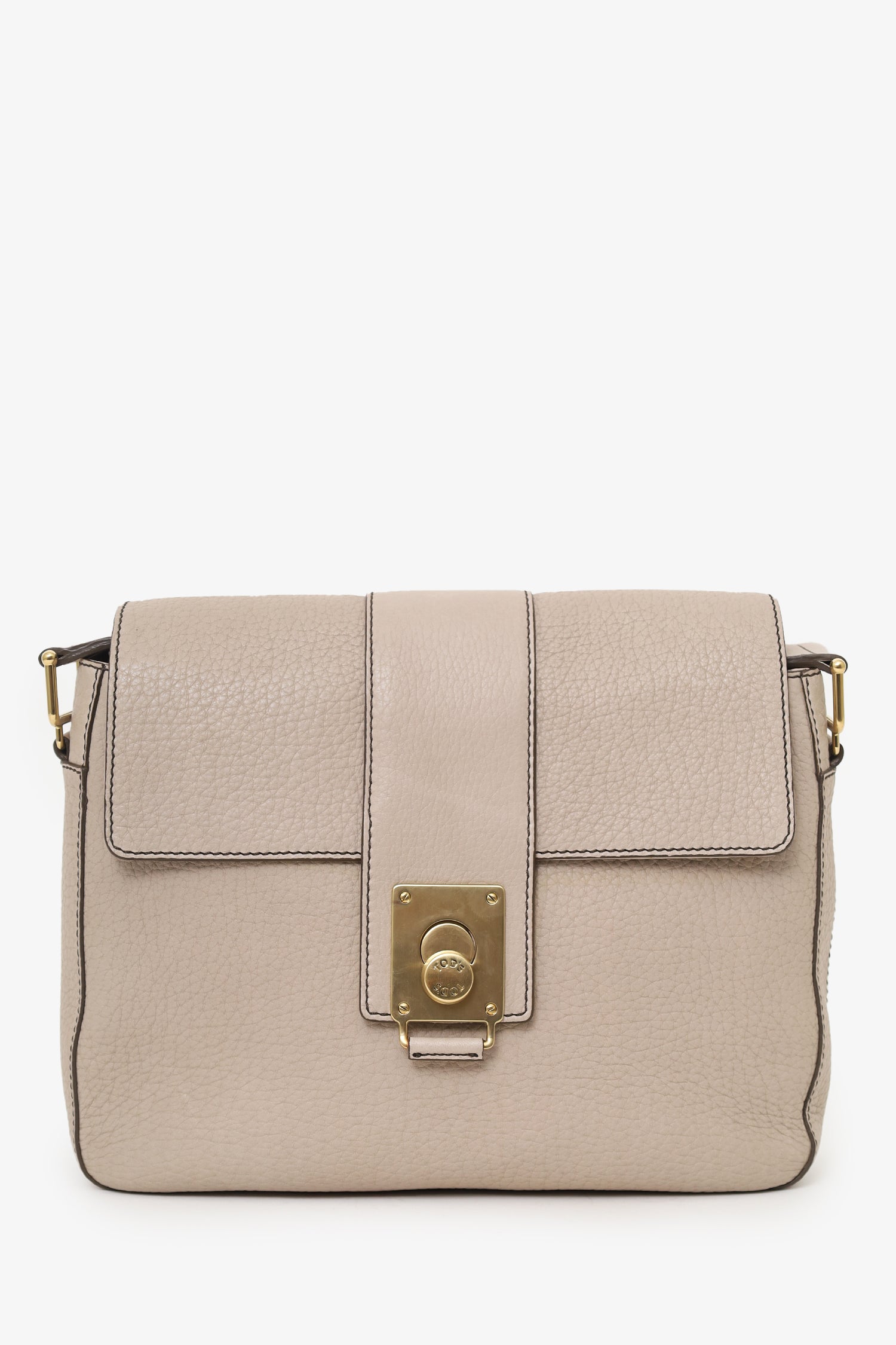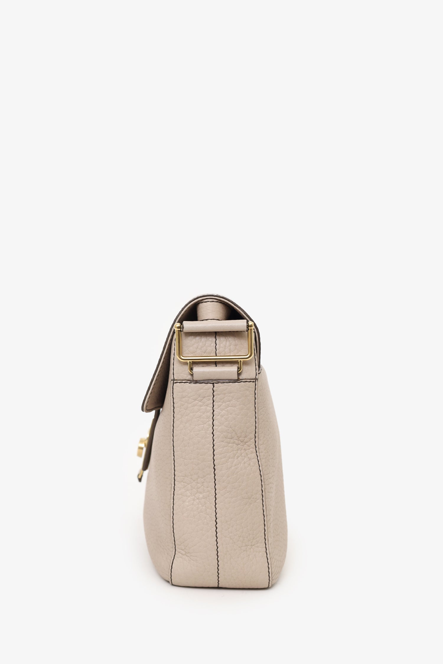 Tod's Grey Leather Crossbody Shoulder Bag. Front fold-over flap with turn-lock closure. Strap with adjustable push-pin closure. Lined interior. Single interior zip pocket. Gold-tone hardware. Tonal stitching.