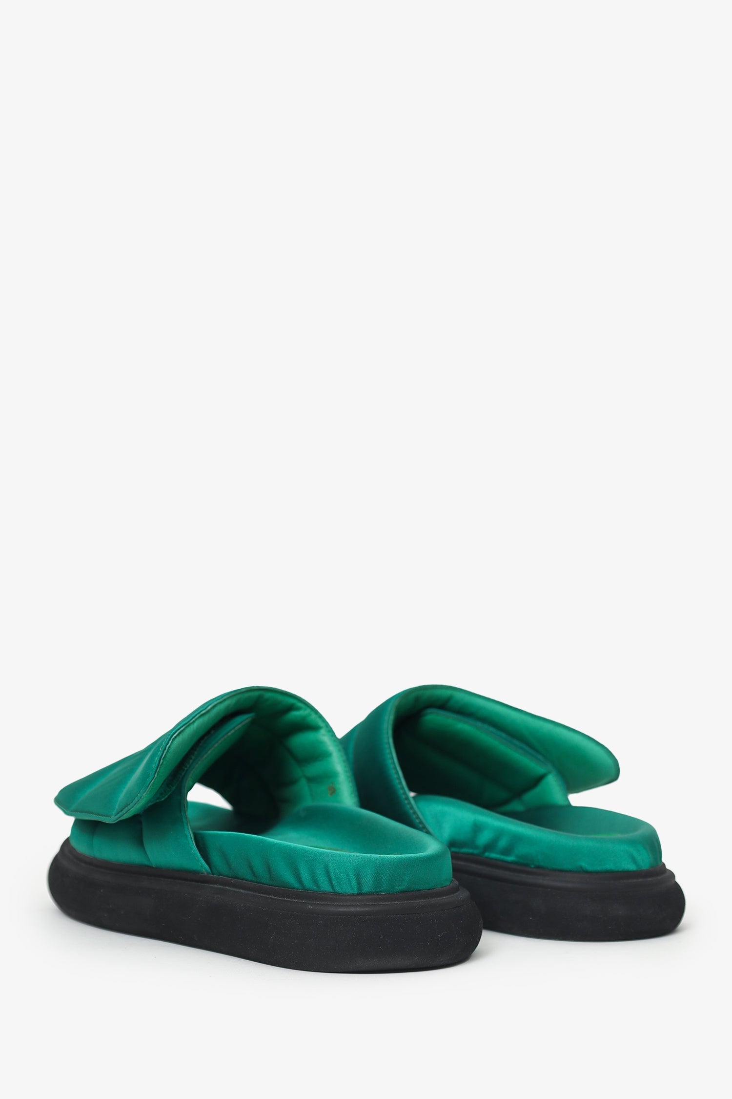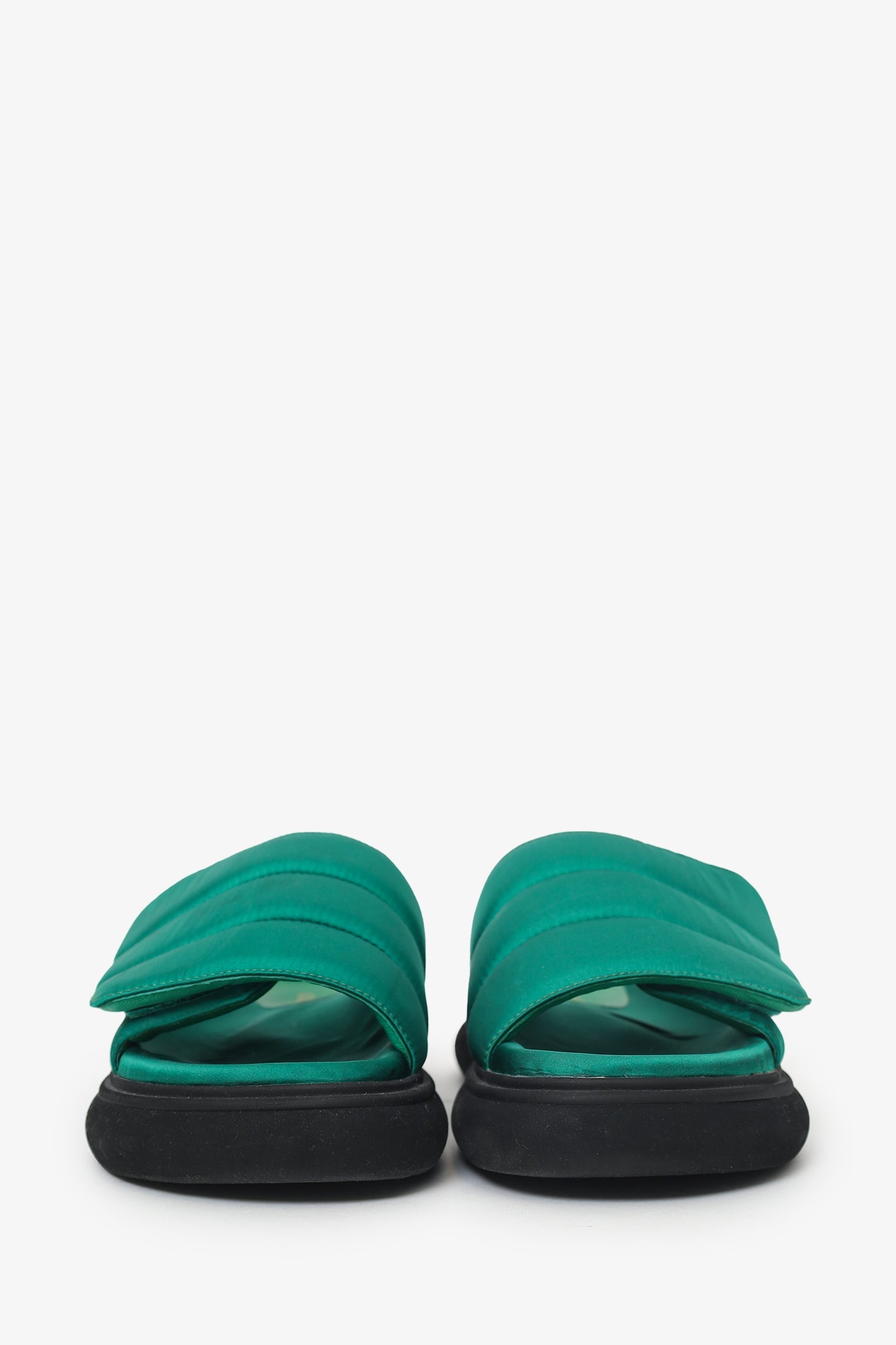 Alias Mae Green Padded Clove Sandals. Slip-on. Round toe. Velcro closure to vamp. Tonal stitching.