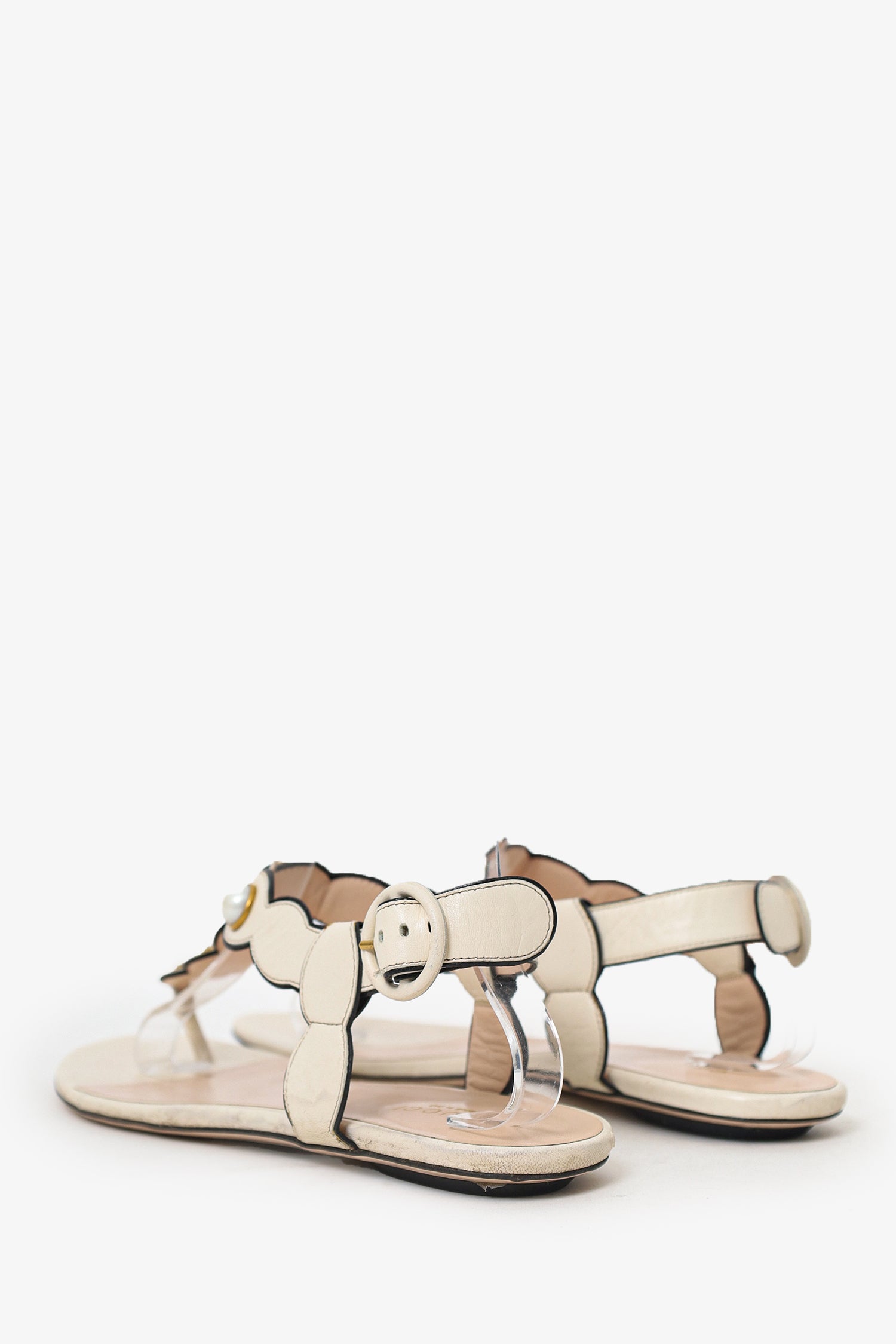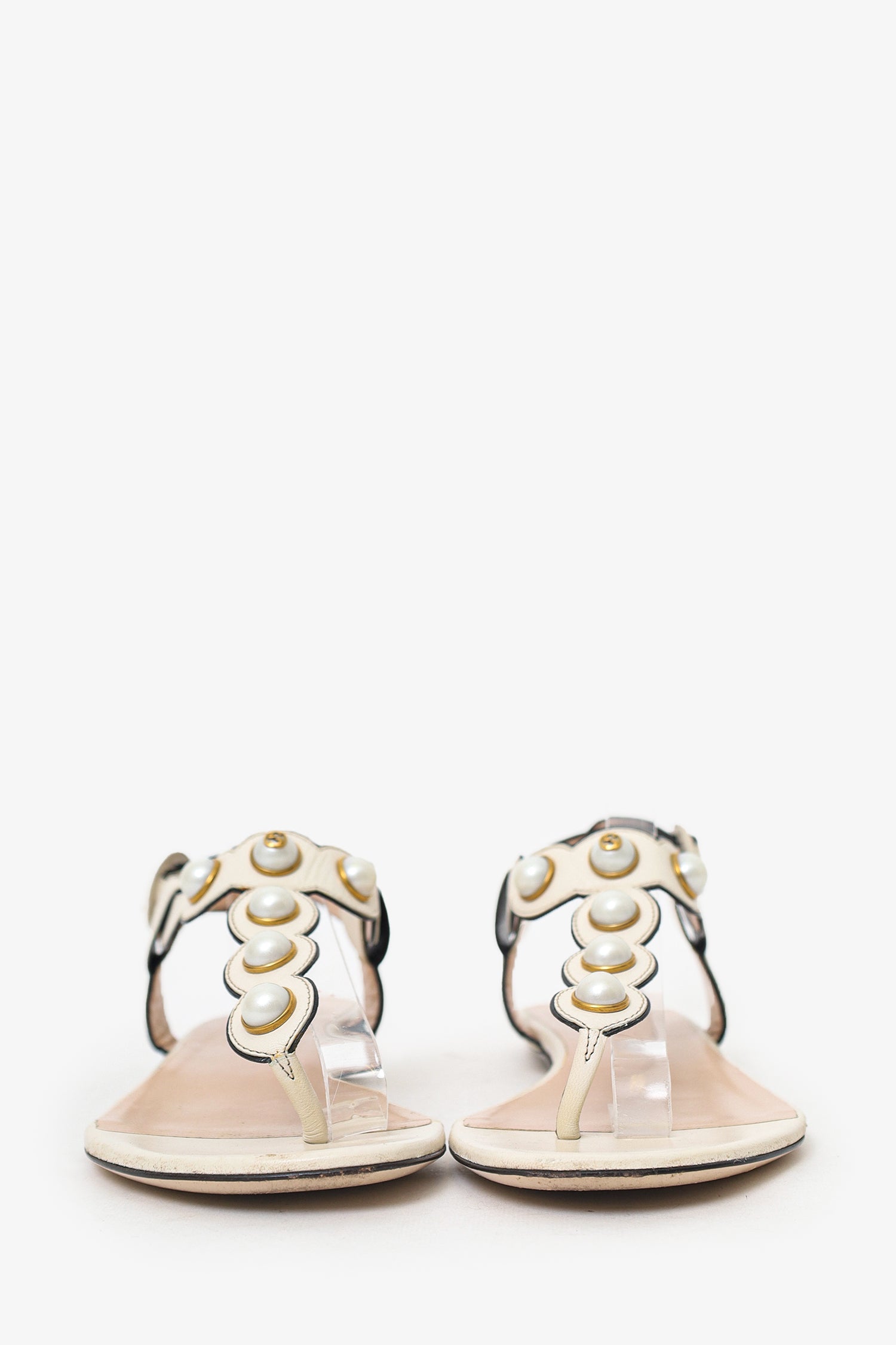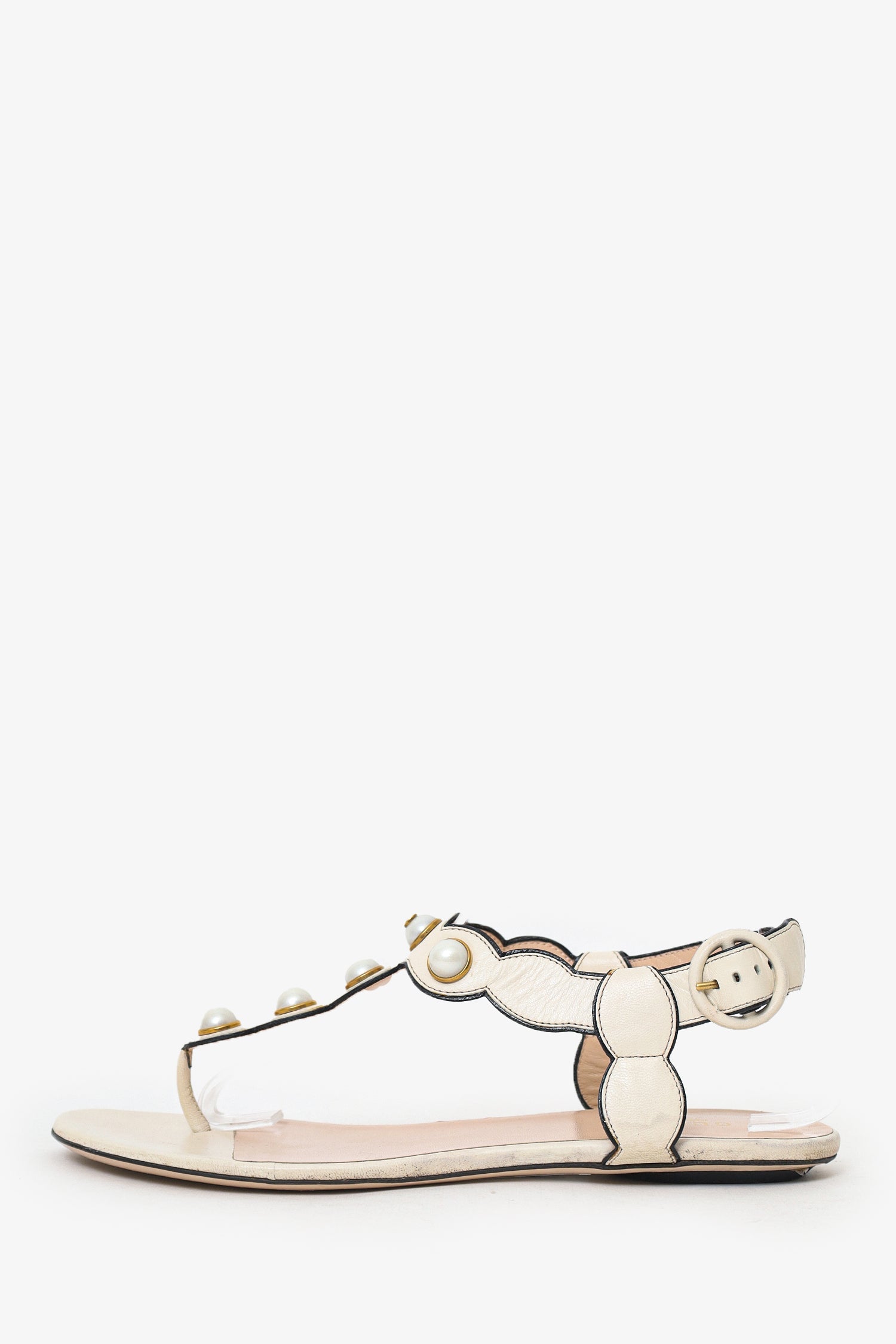 Gucci White Leather Pearl Detail Sandals Size 38.5