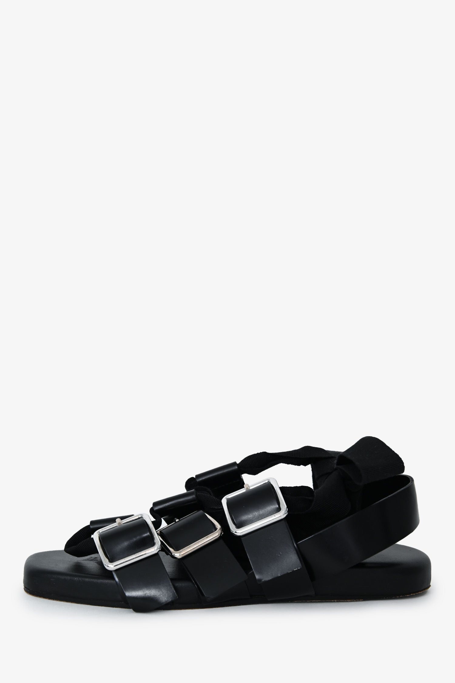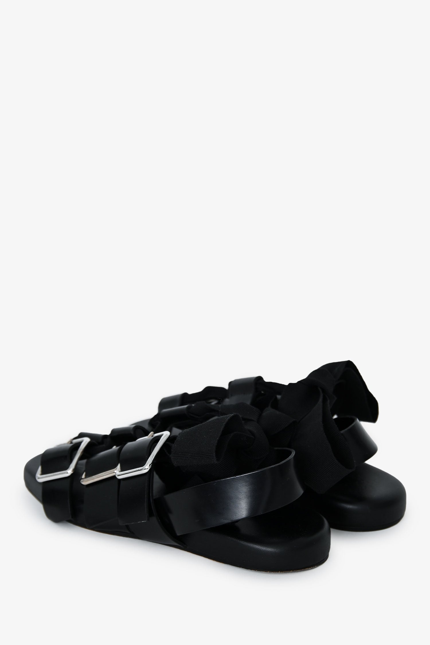 Jill Sander Black Leather Gladiator Buckle Sandals With Ribbon Size 35.5