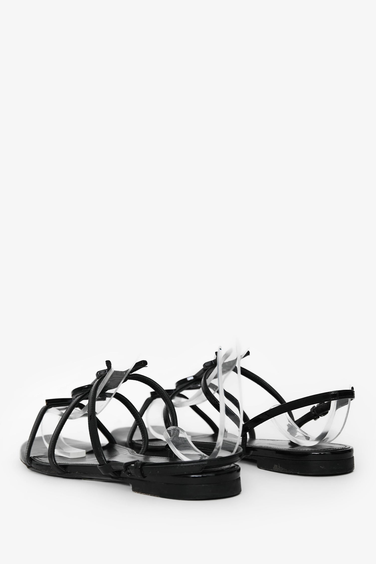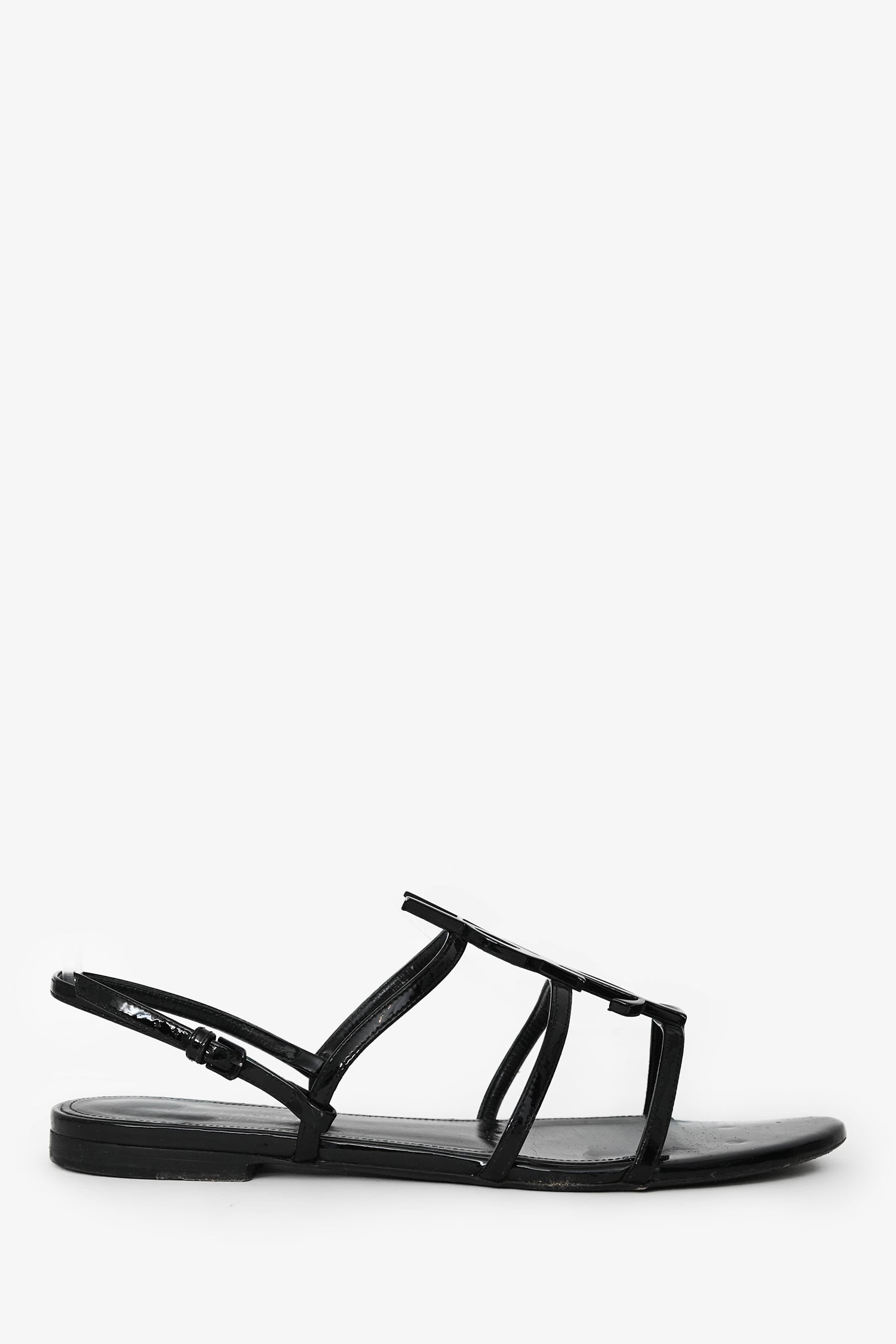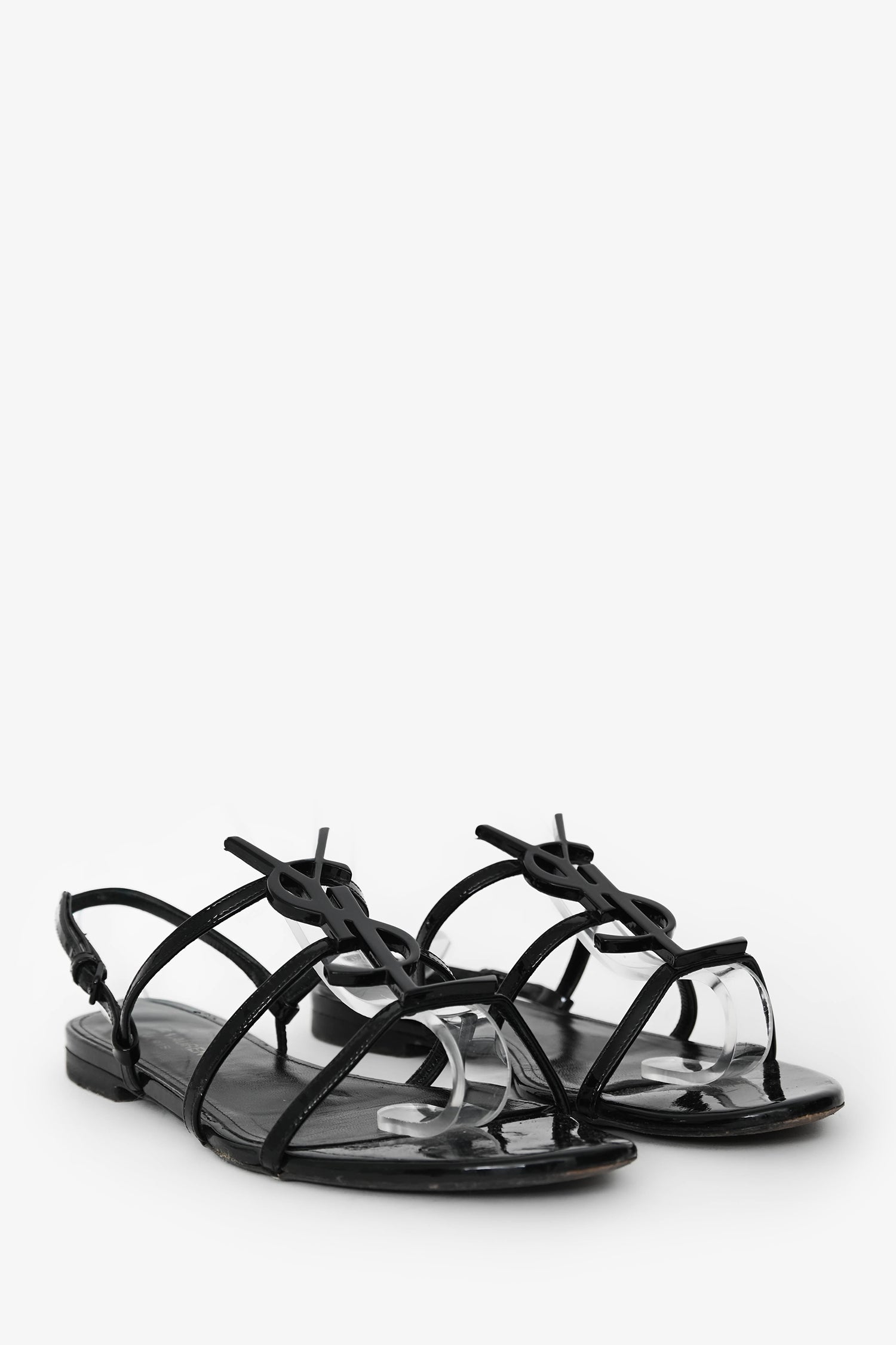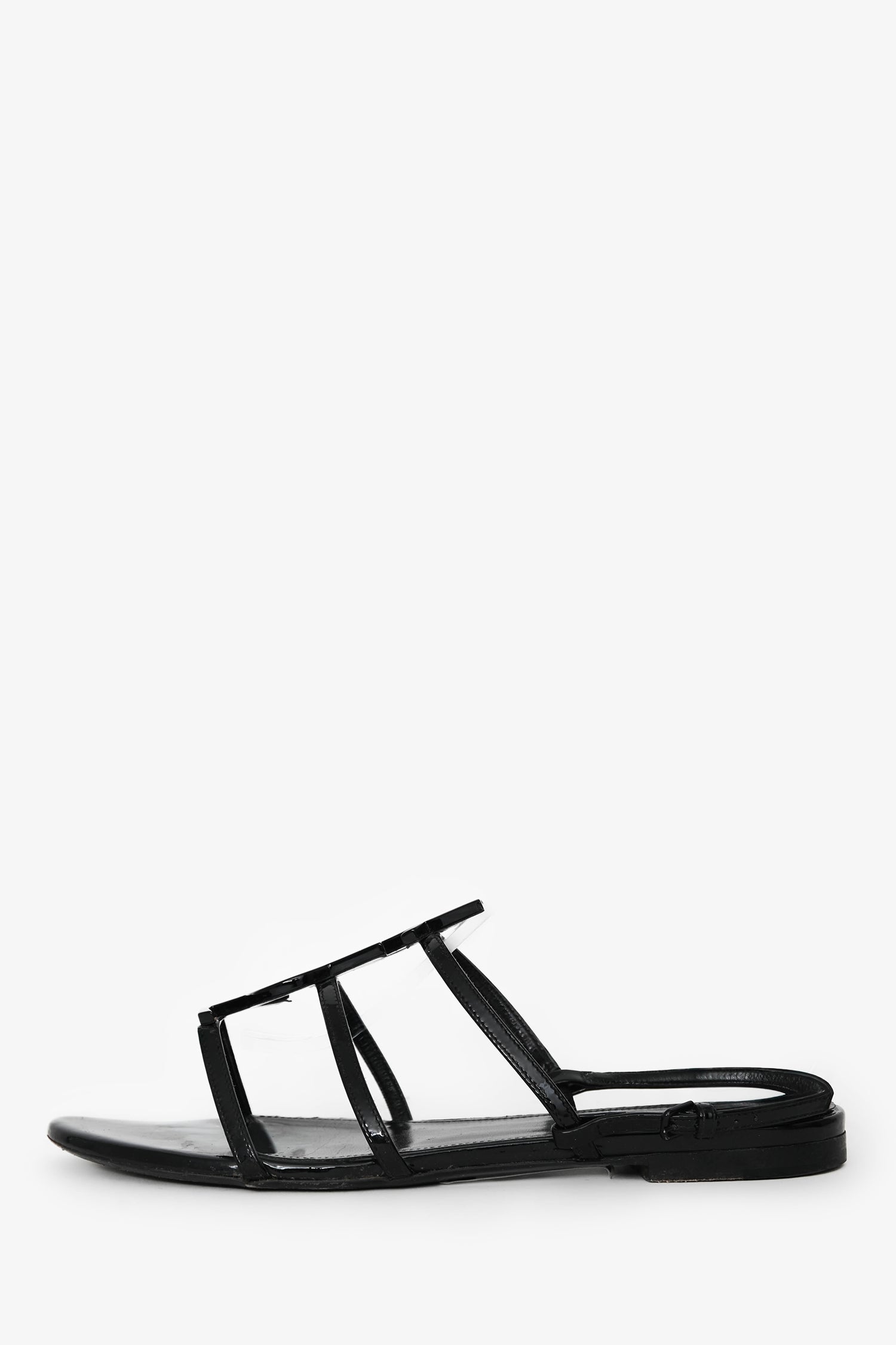 Saint Laurent Black Patent Cassandra YSL Flat Sandals Size 37.5 (As Is)