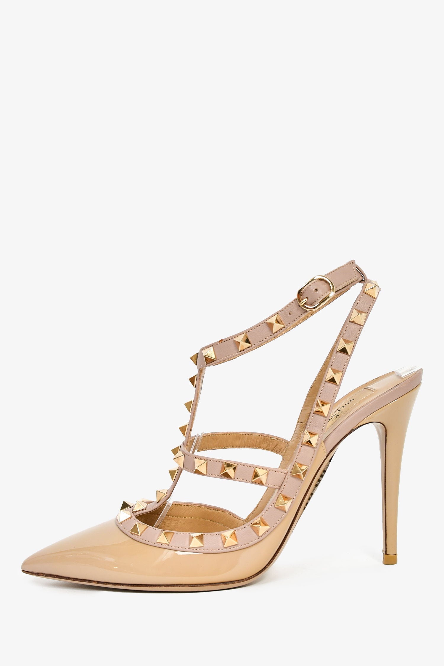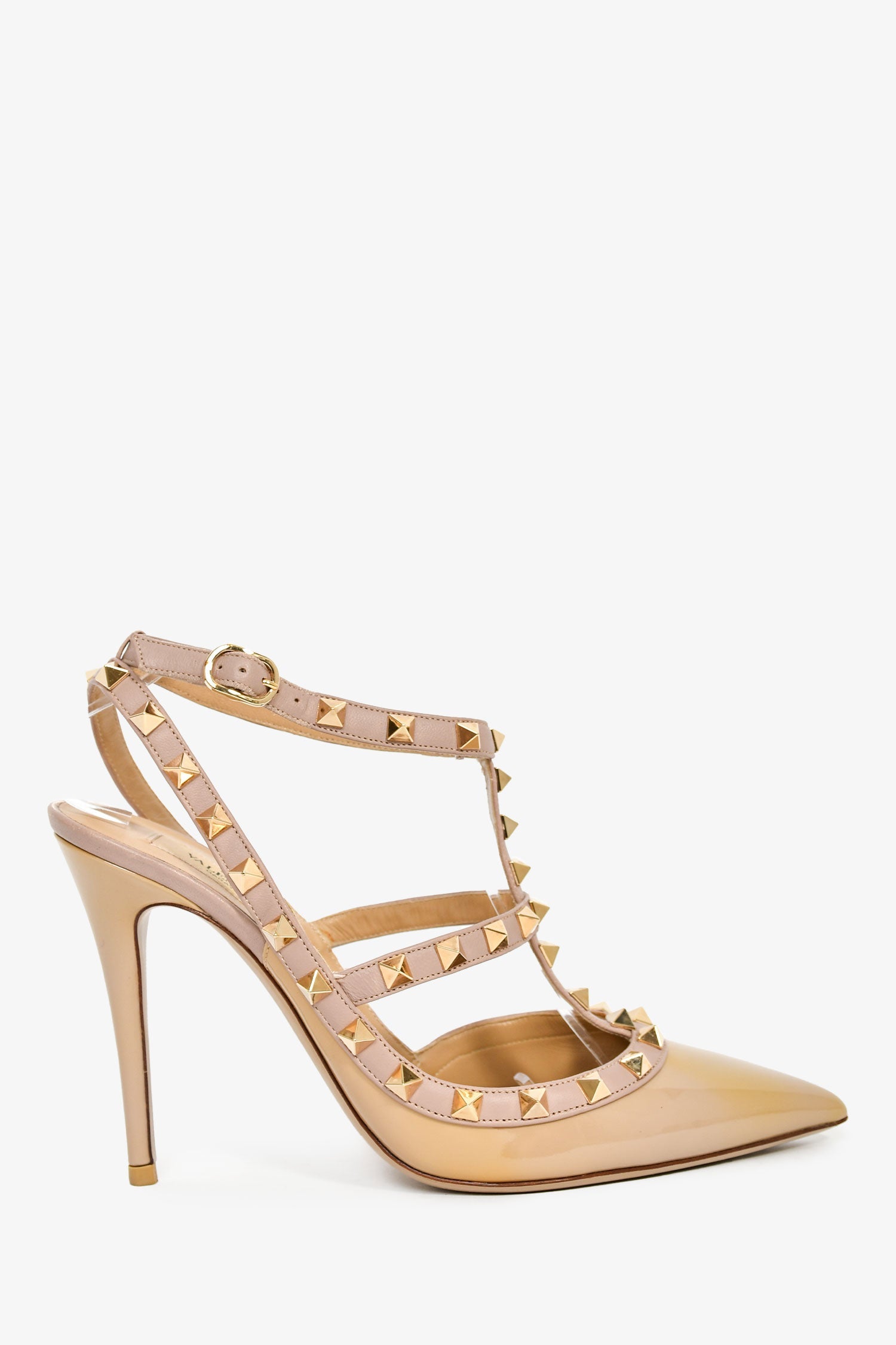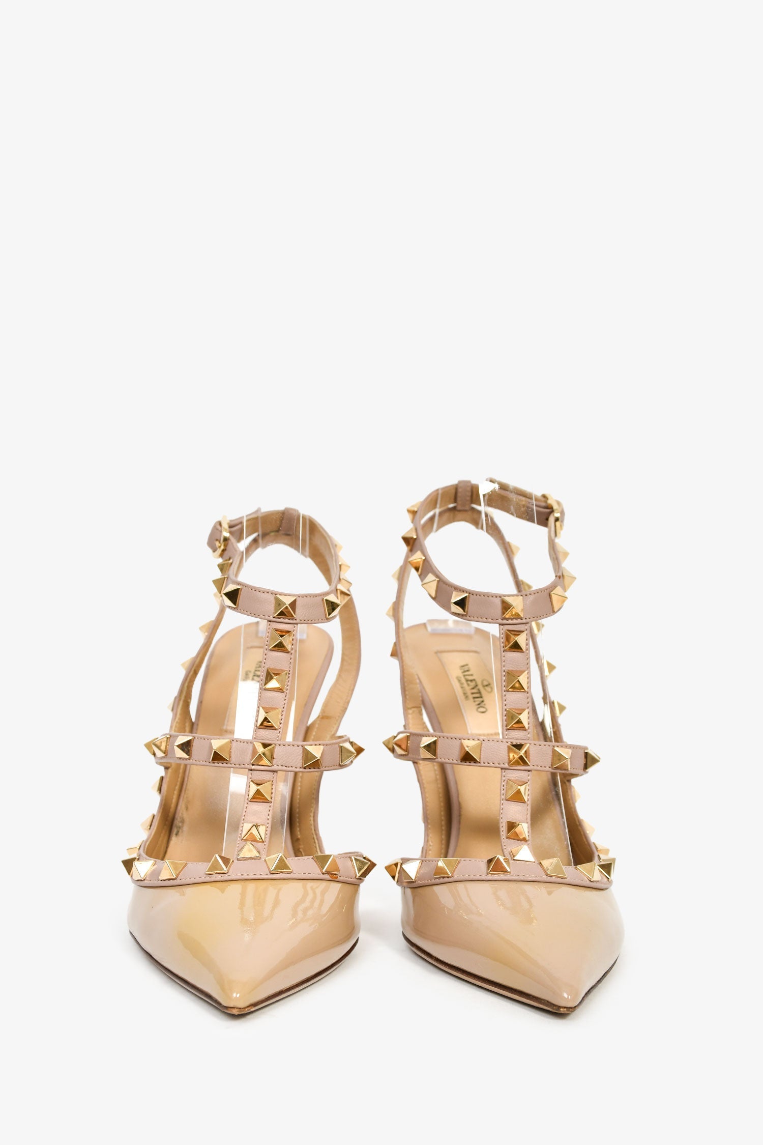 Valentino Beige Patent Leather Cage Rockstud Heels Size 39