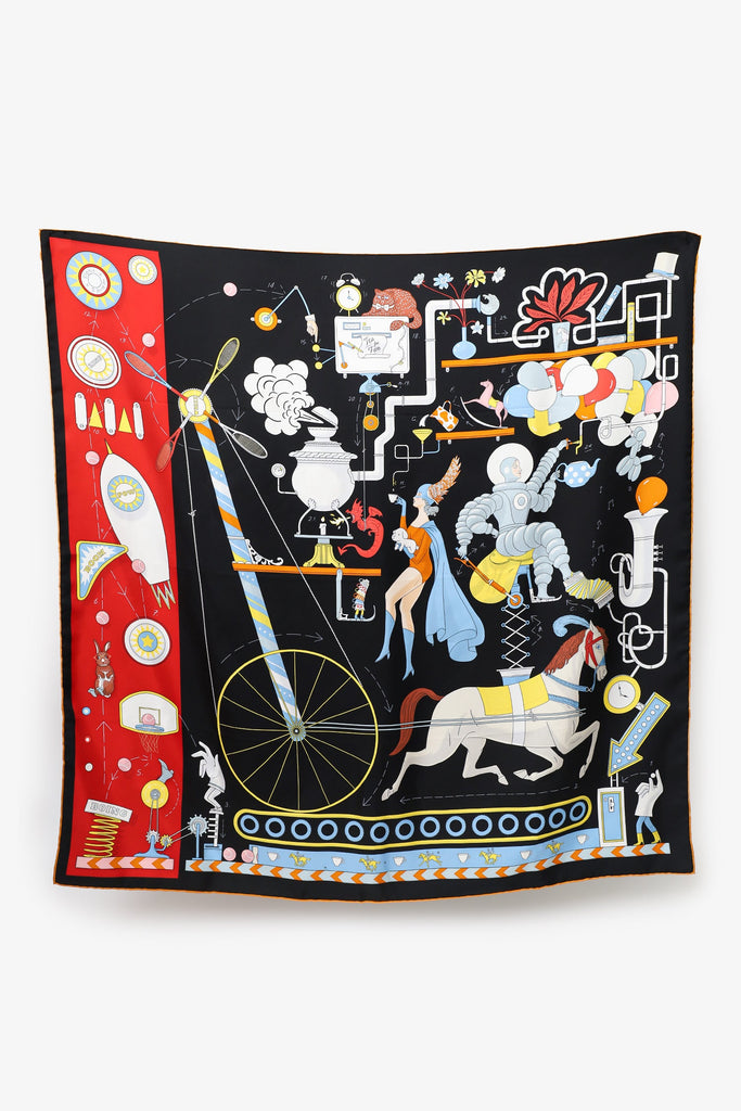 Hermès Blue/Orange Silk Graphic Printed Scarf 90
