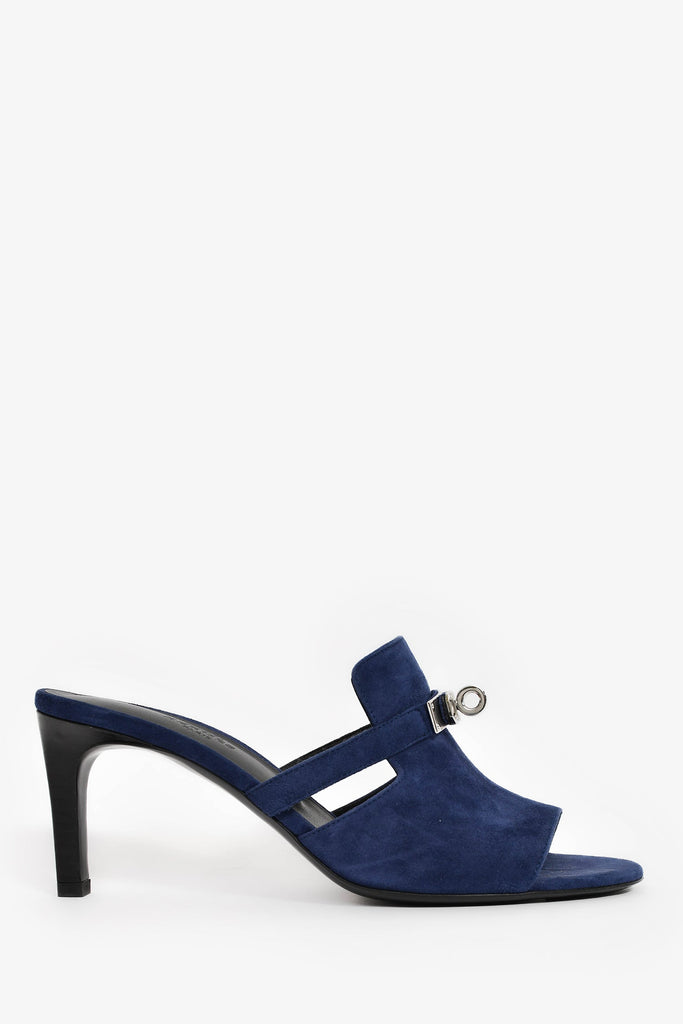 Hermès Blue Suede Kelly Lock Mules Size 38
