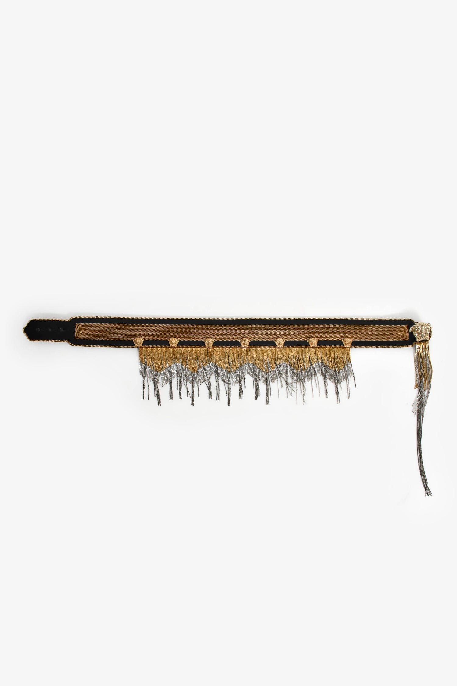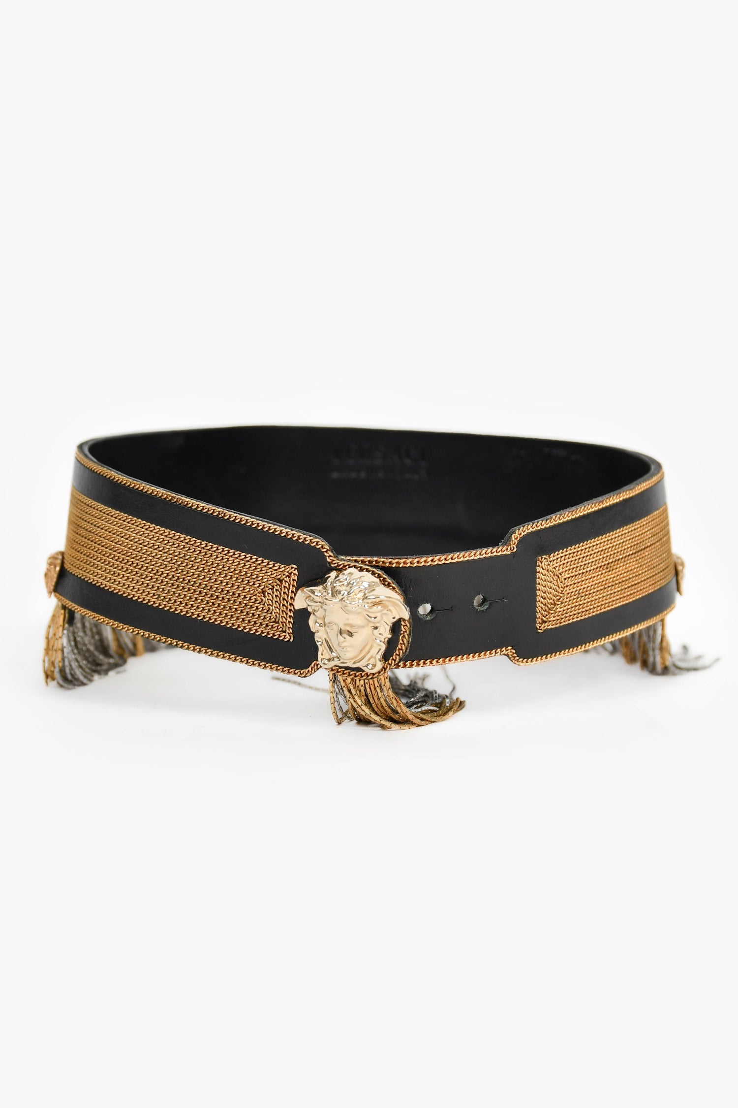 Versace Black/Gold Toned Metal Fringe Choker + Bracelet Set. Push-tab buckle closure.