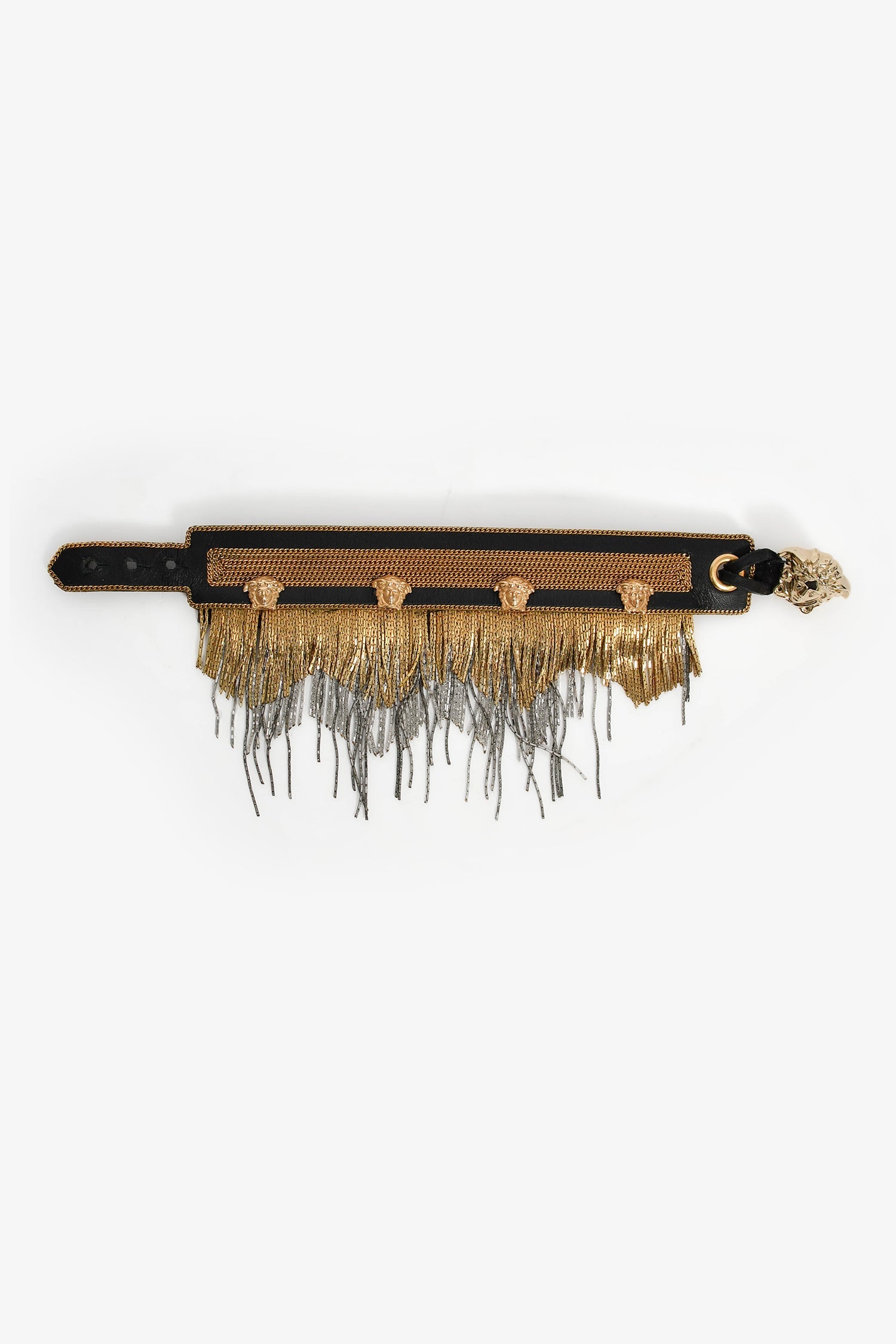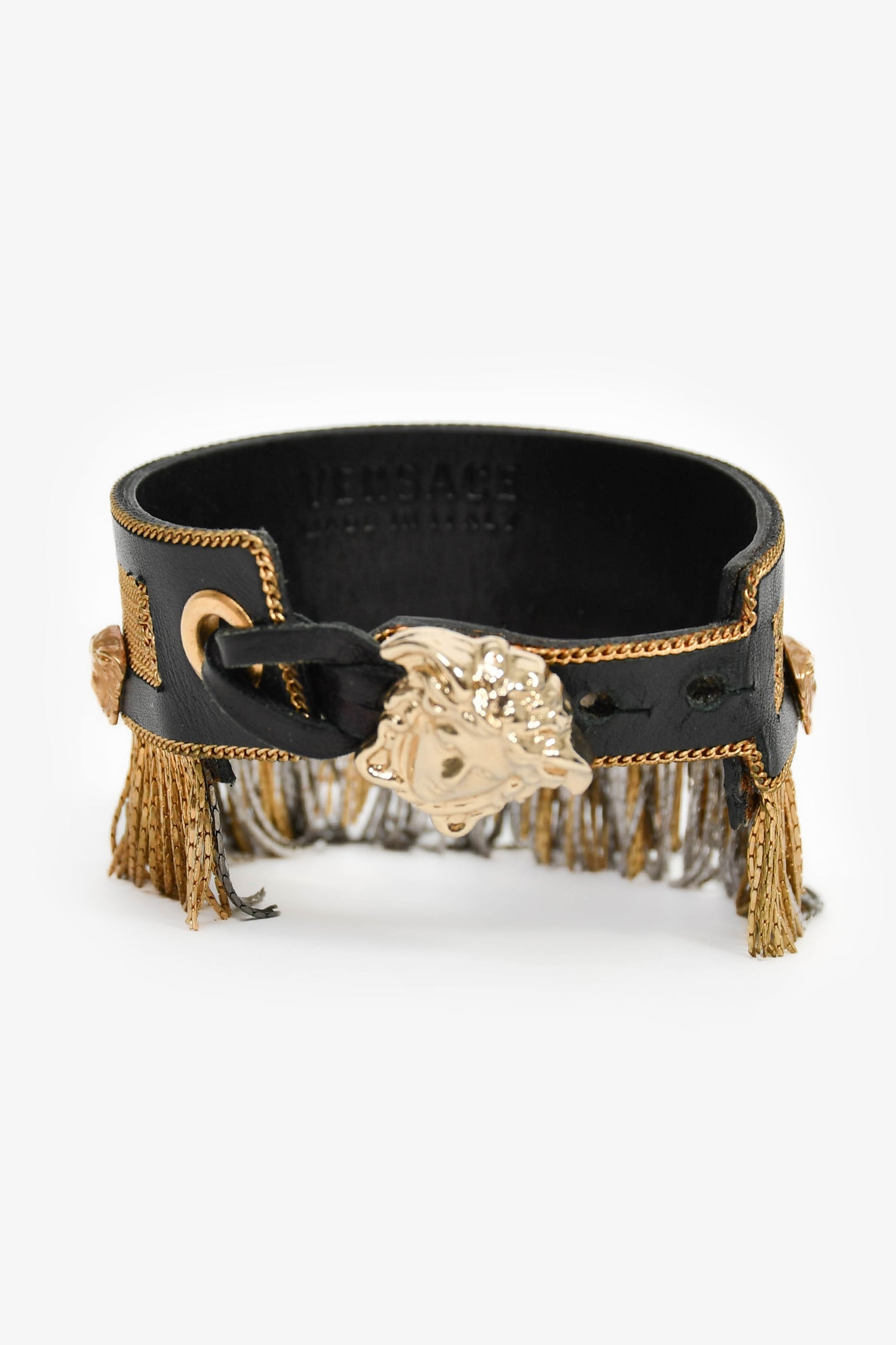 Versace Black/Gold Toned Metal Fringe Choker + Bracelet Set