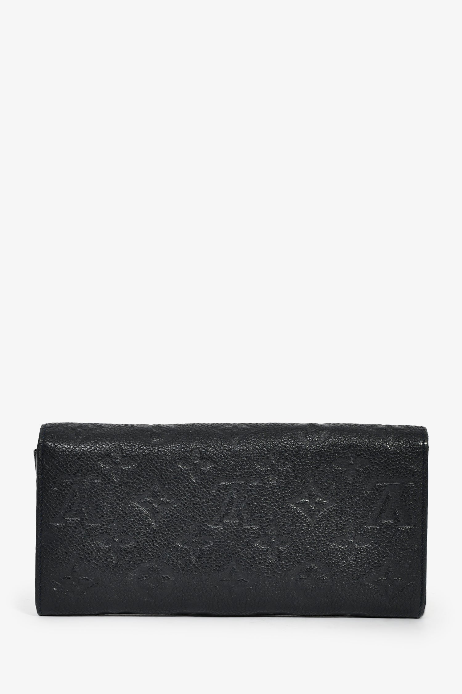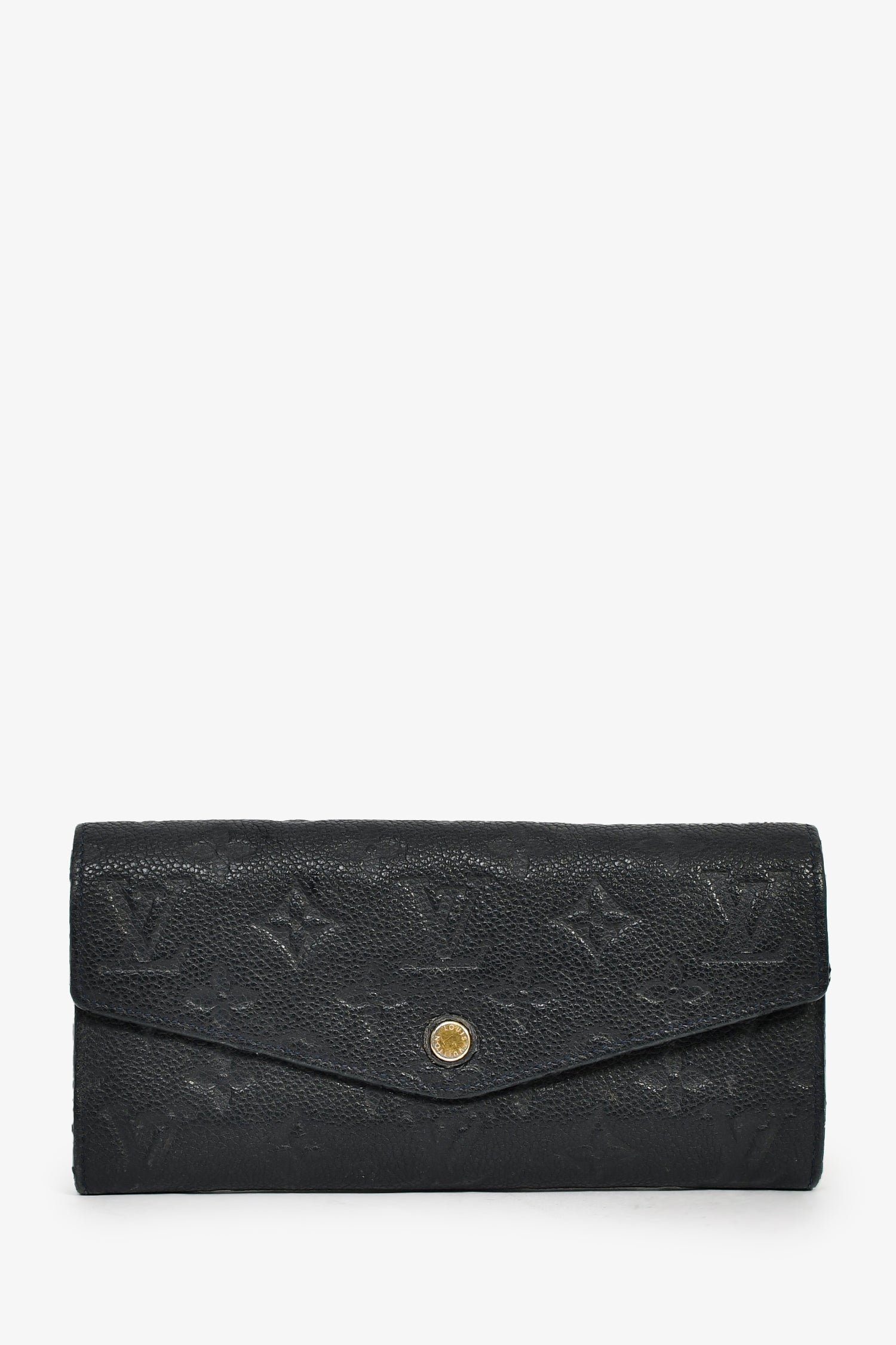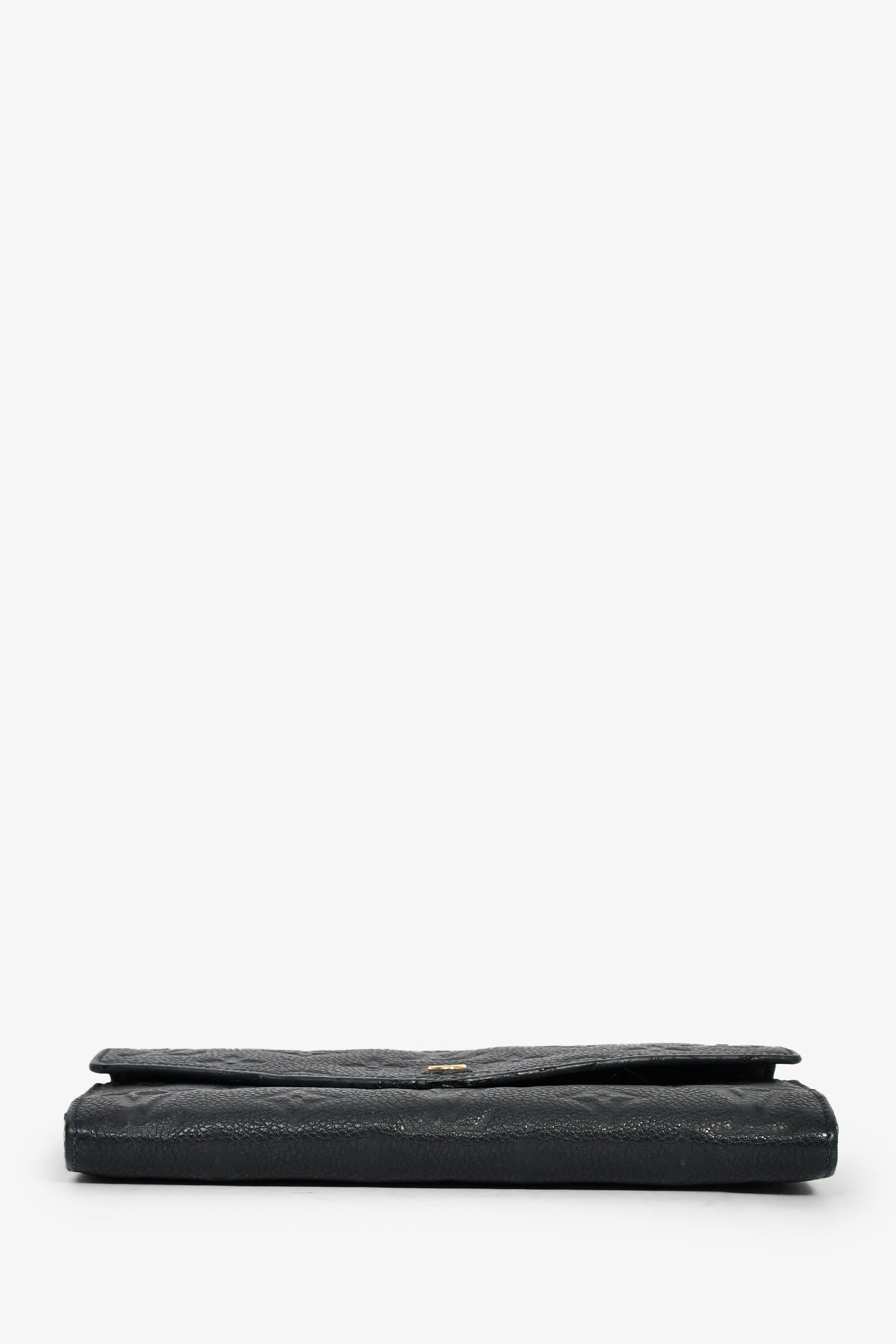 Louis Vuitton 2019 Black Empreinte 'Sarah' Wallet with Extra Insert. Front fold-over flap with snap-button closure. 4 interior card slots. 1 billfold compartment. Removable insert with zip closure. Gold-tone hardware.
