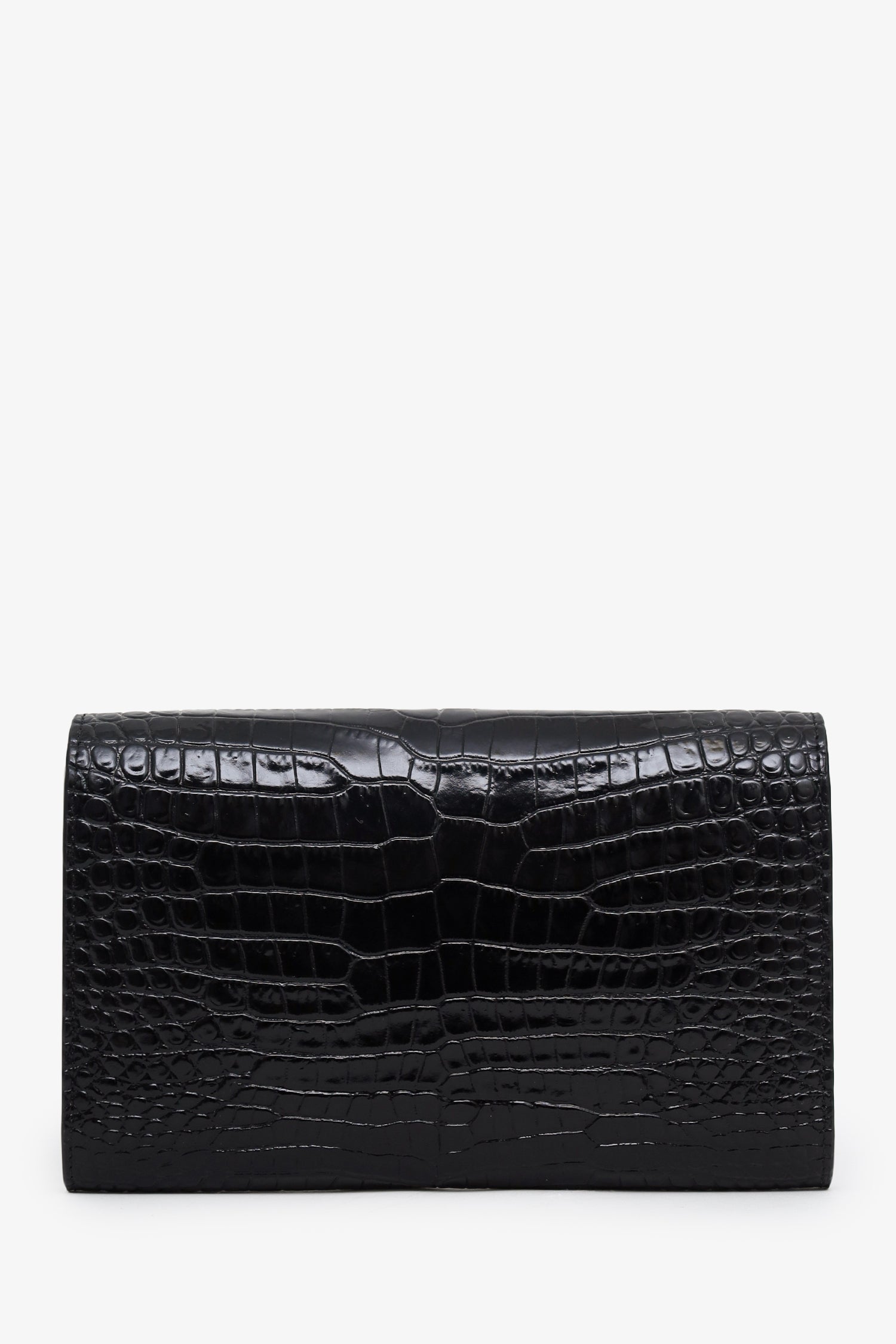 Saint Laurent Black Croc Embossed Leather Uptown Chain Wallet With Insert