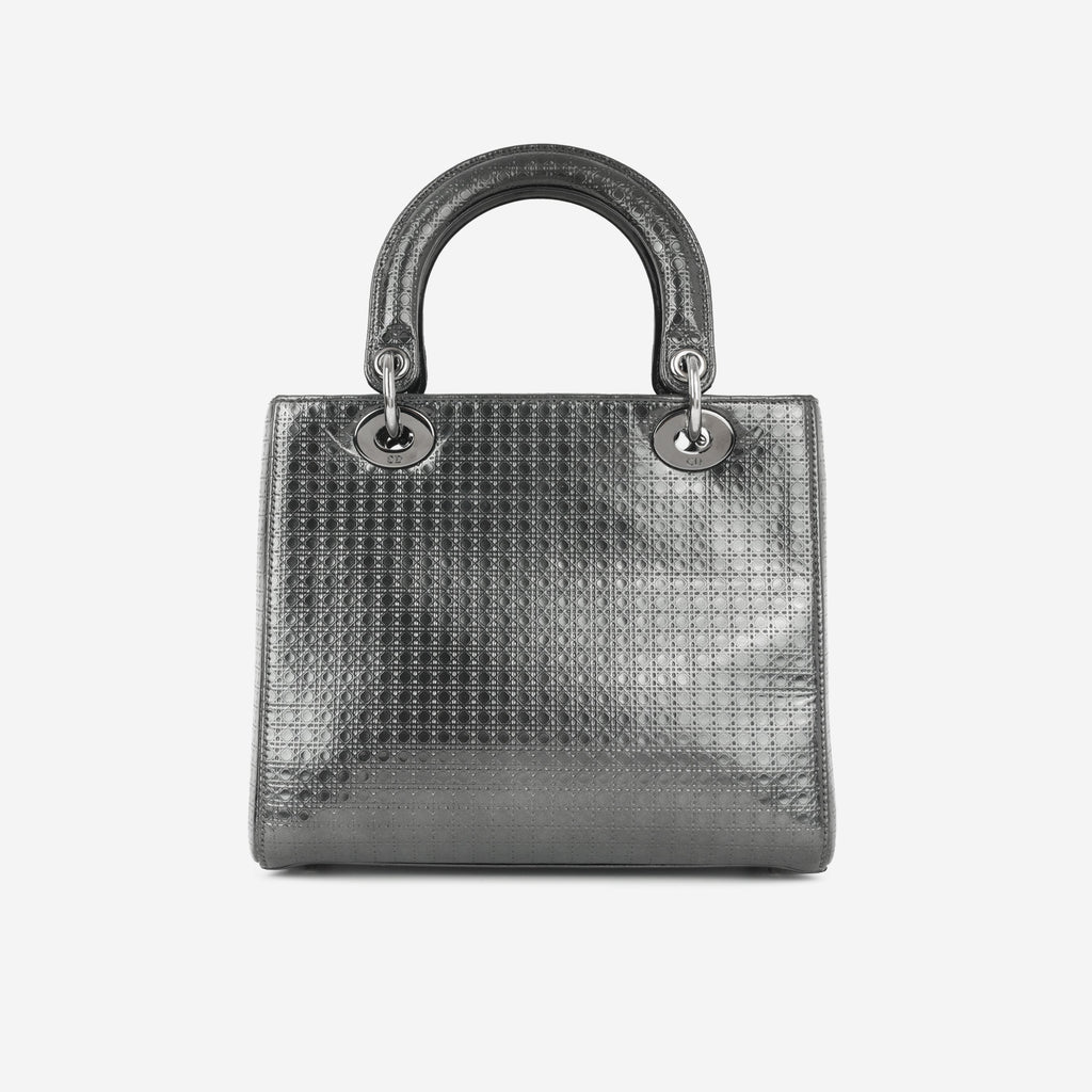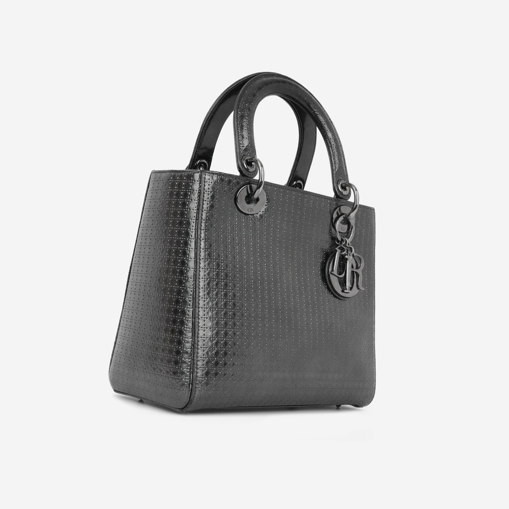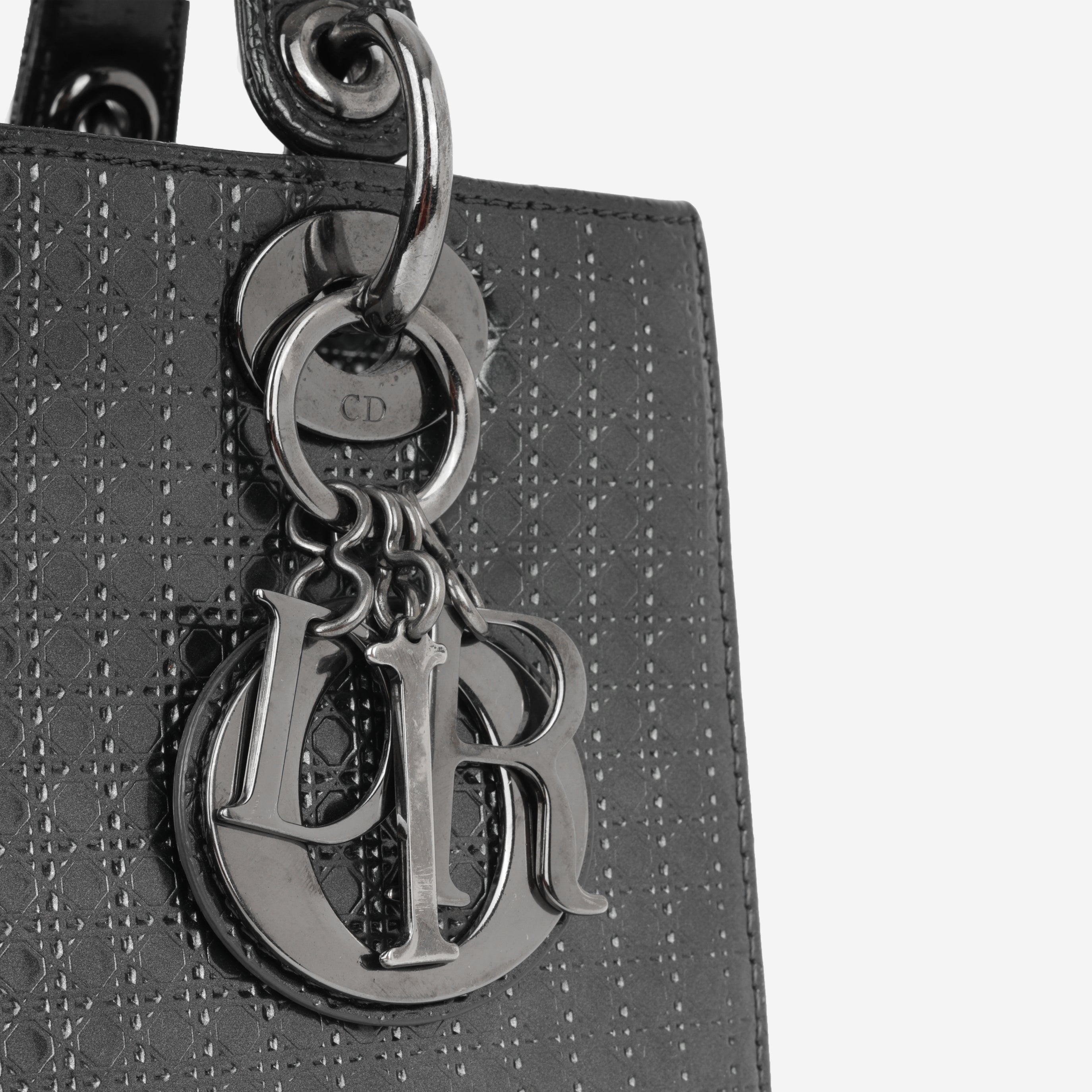 Dior Medium Lady Dior - Dark Grey Metallic Microcannage | Ruthenium Hardware