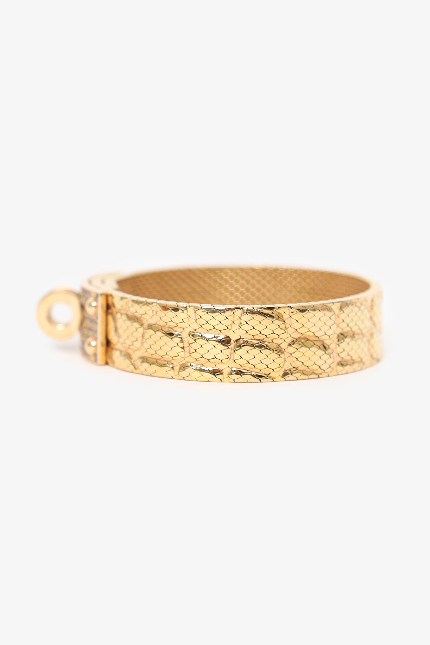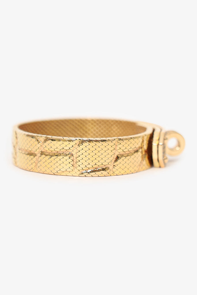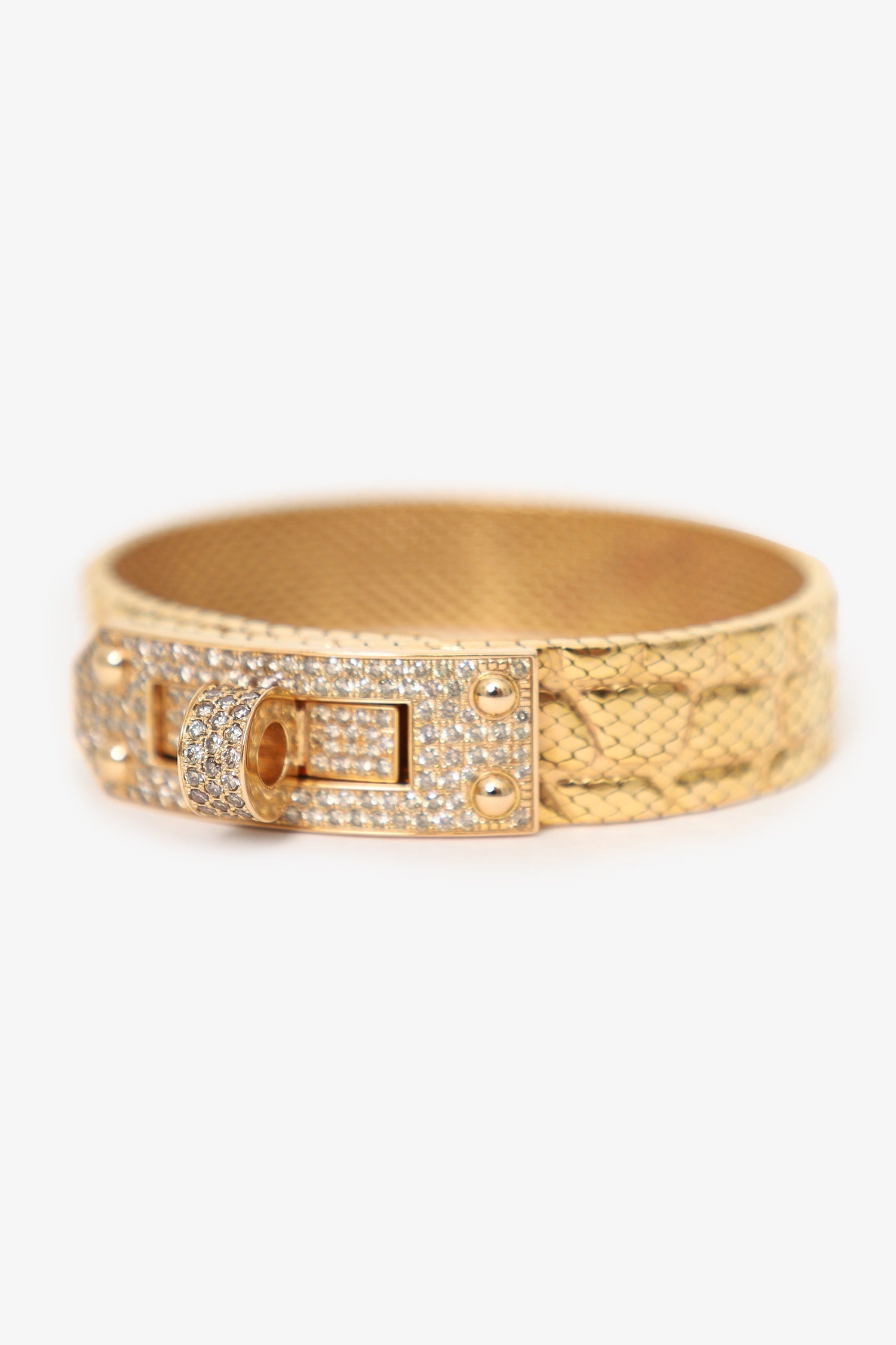 Hermès 18K Rose Gold Diamonds Milanese Mesh Kelly Bracelet. Turn-lock closure. Diamonds set on the bracelet's fastening. Milanese mesh alligator-style pattern strap. Gold-tone hardware.