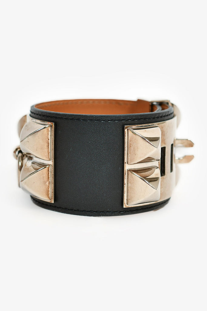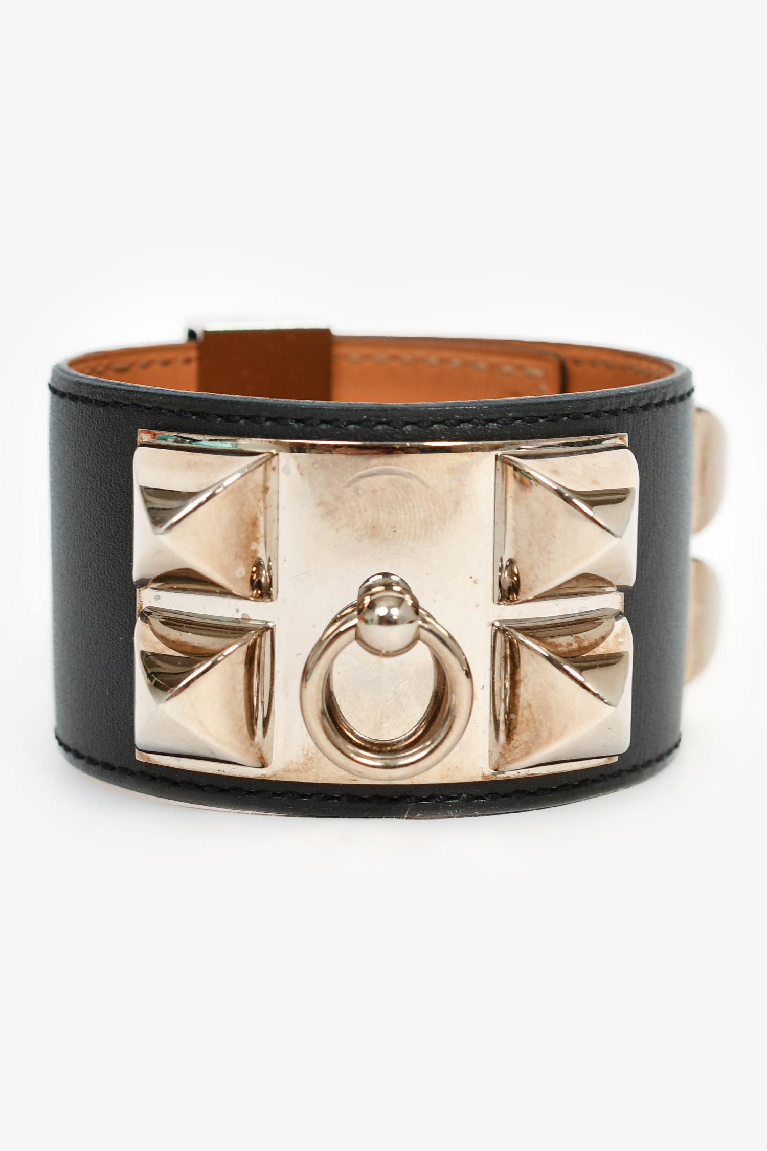 Hermès 2014 Black Leather Silver Collier de Chien Bracelet