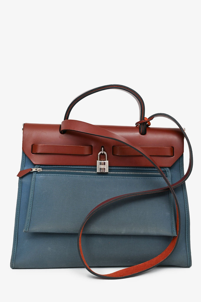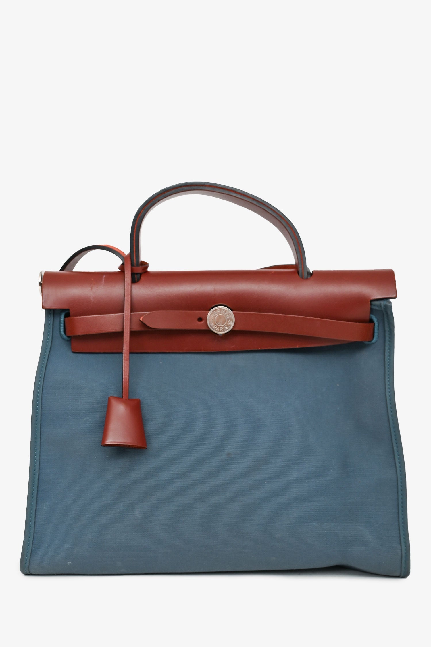 Hermes 2015 Blue/Brown Canvas Herbag 31 with Pouch (As Is)