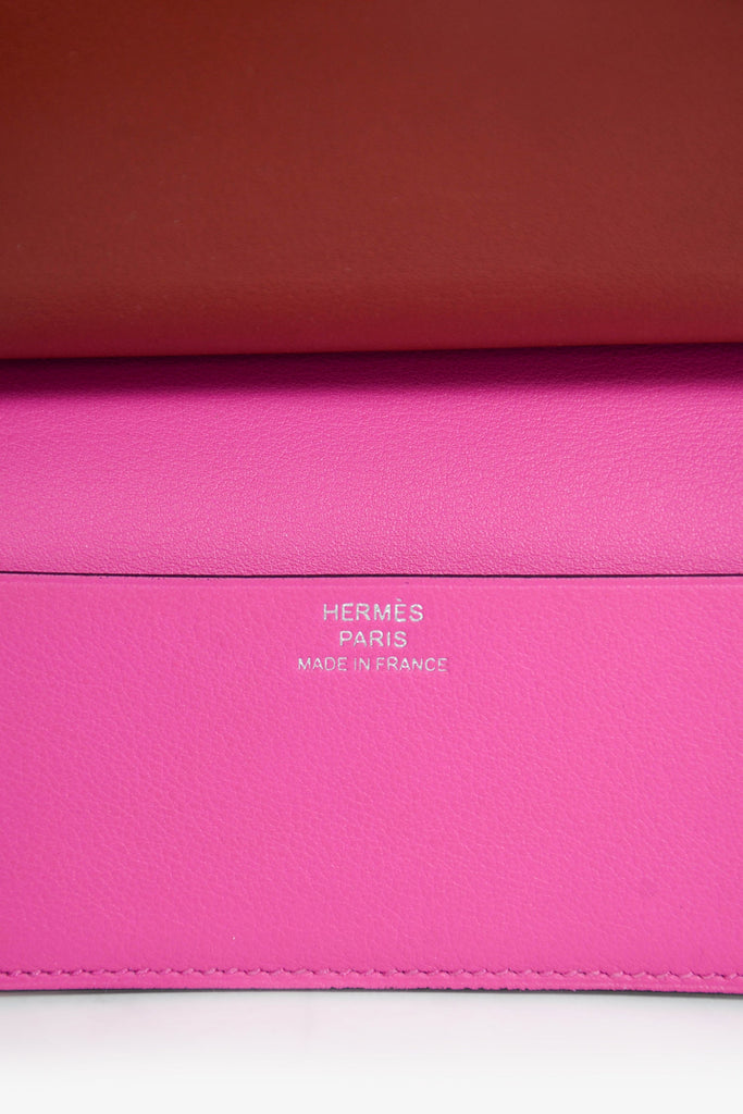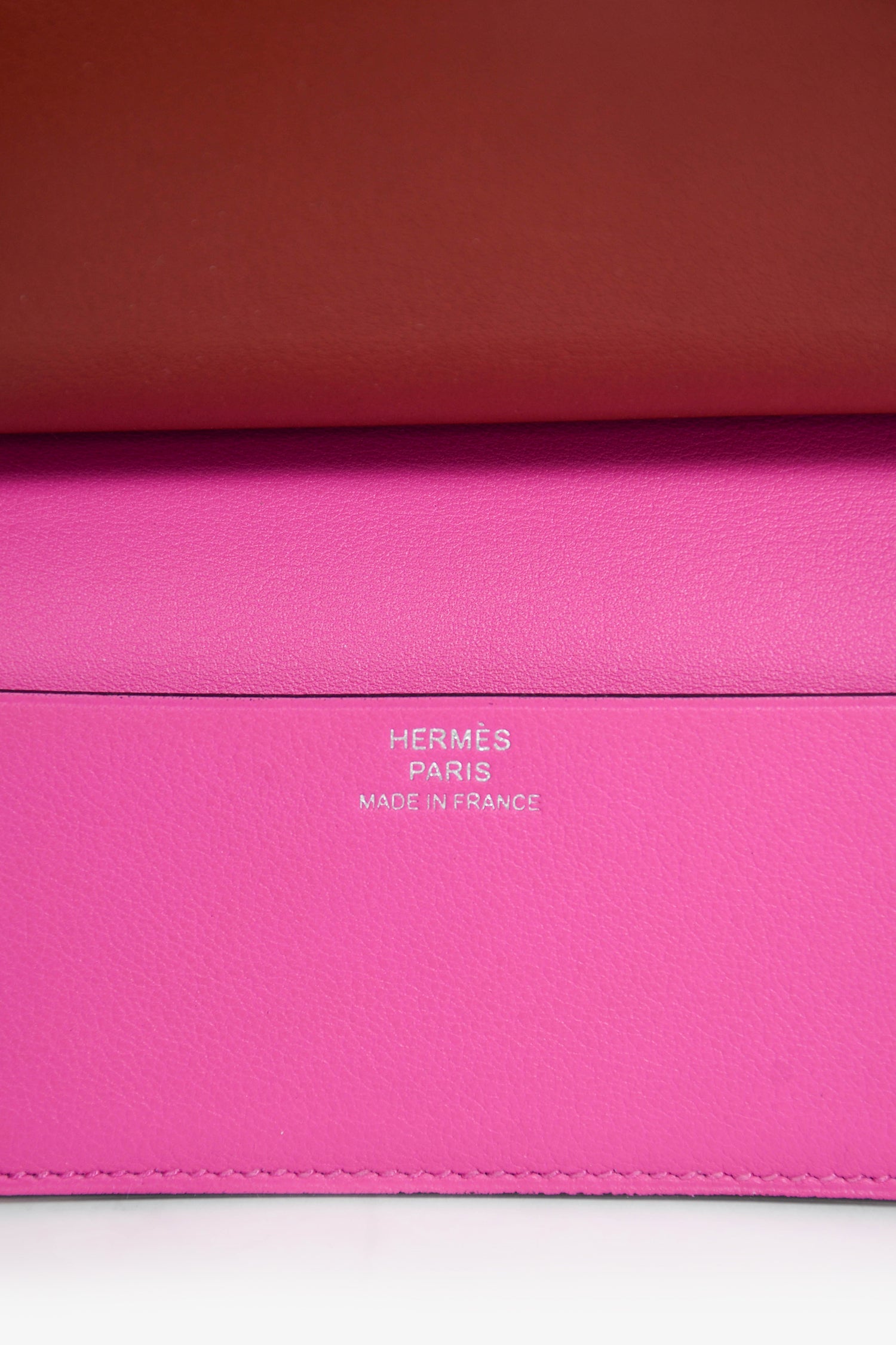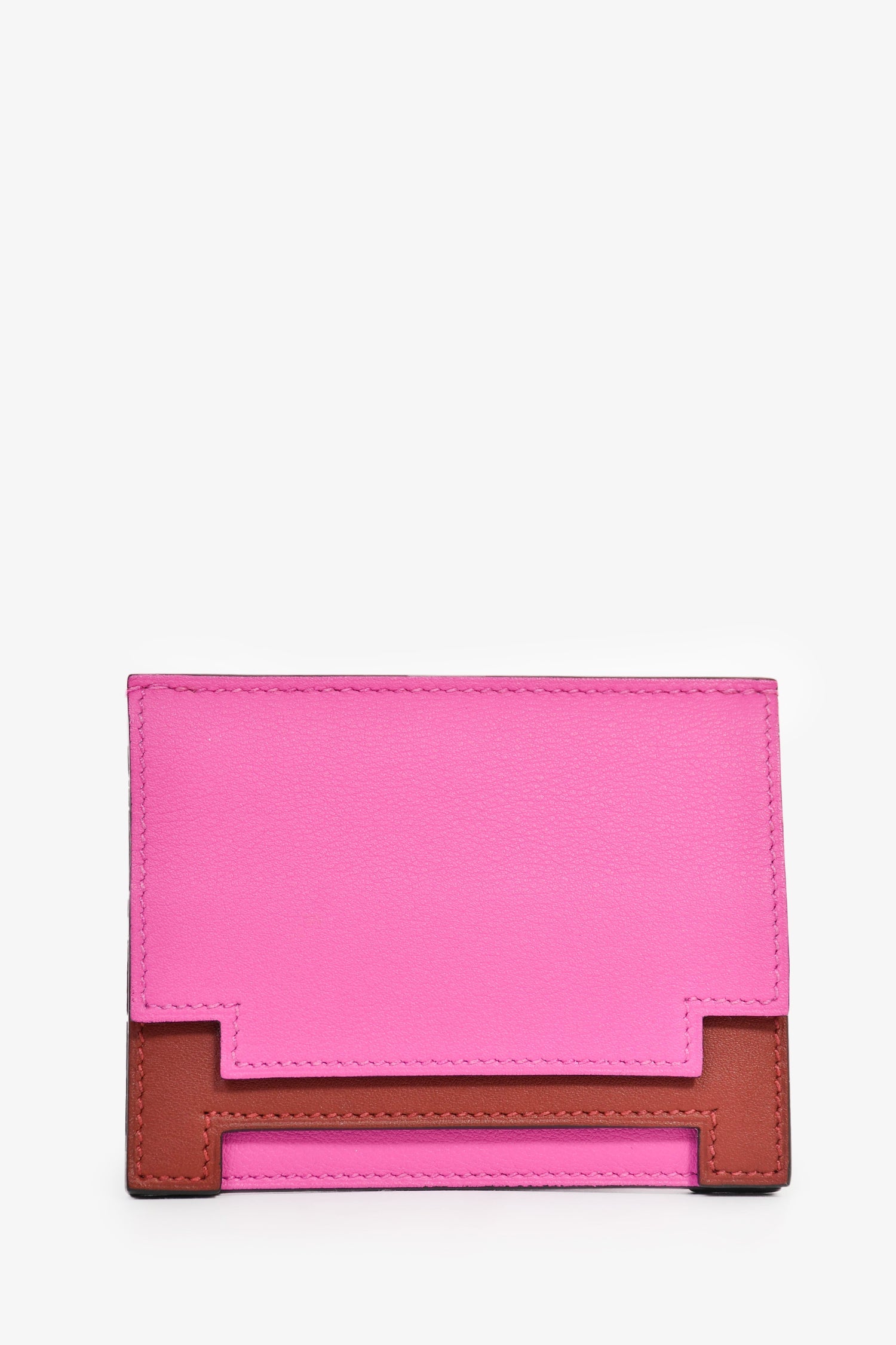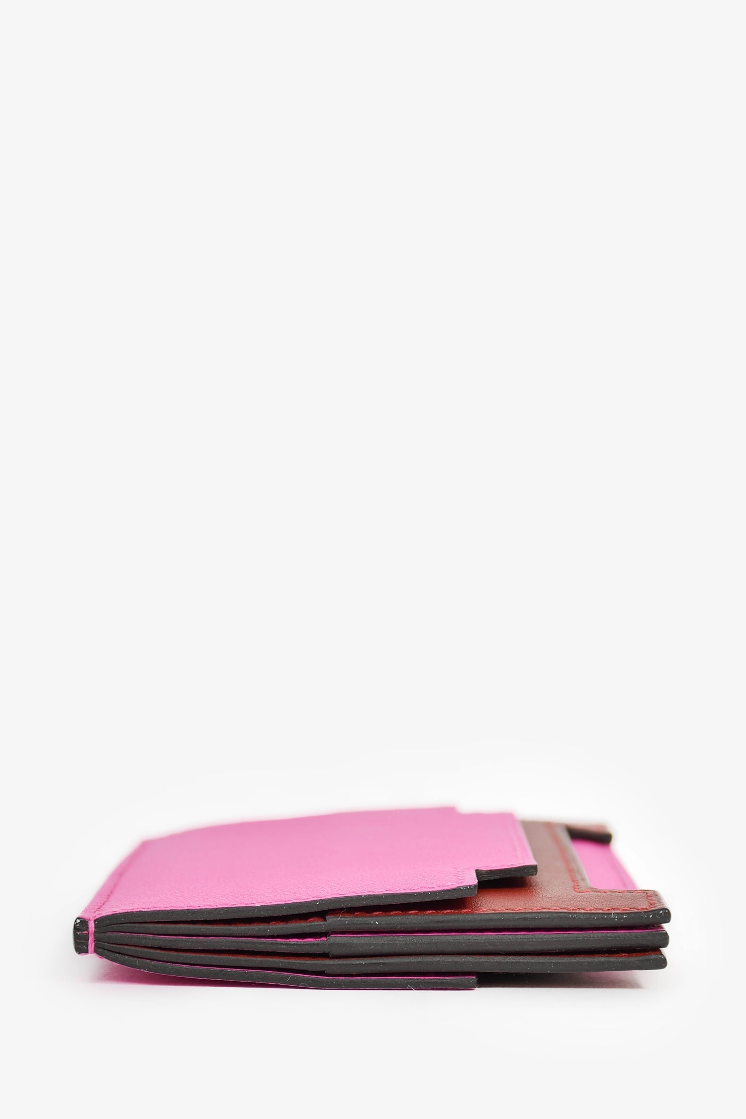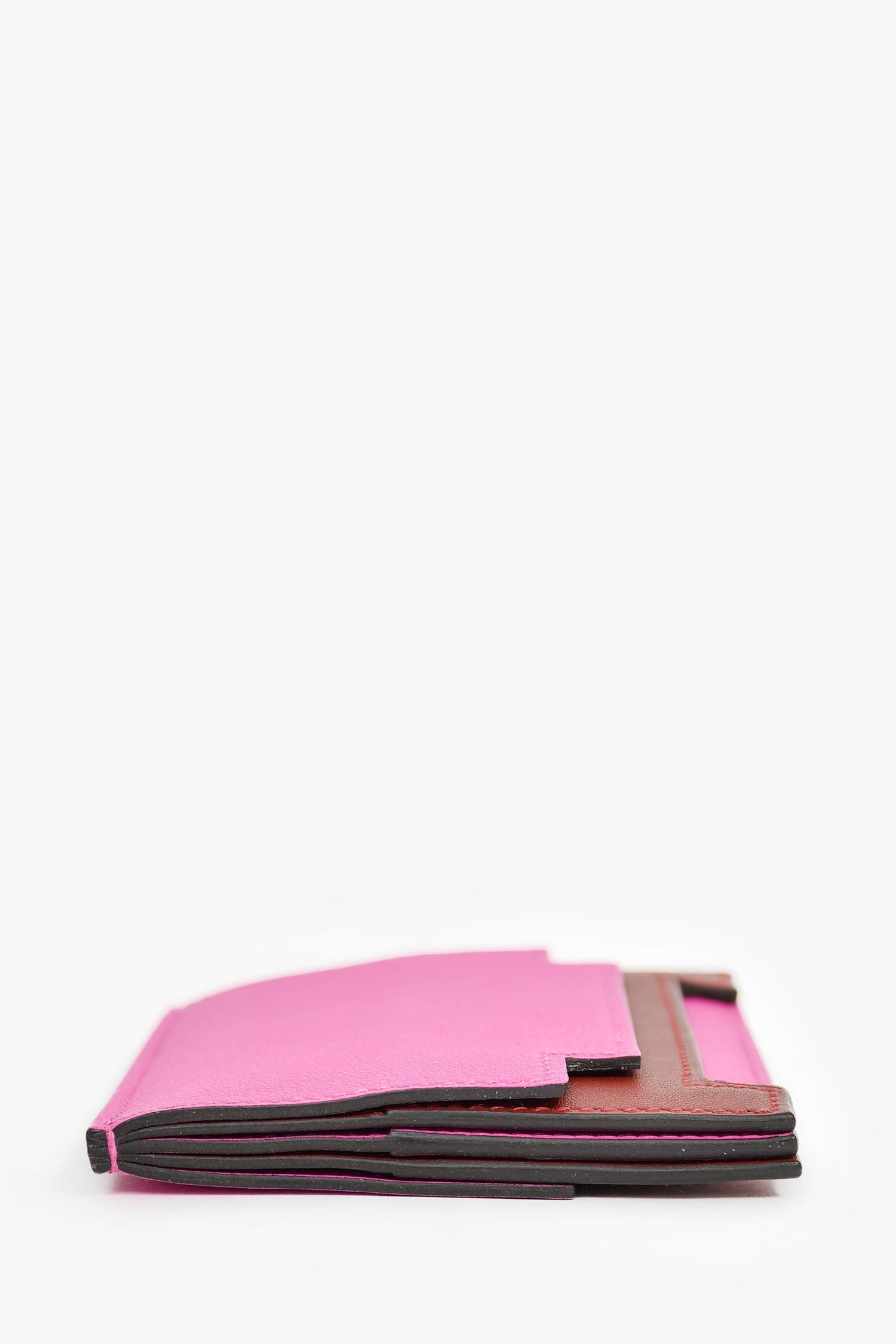 Hermes 2018 Magenta/Burgundy 'Multiplis' Cardholder. 4 card slots. 5 flap folds. Coated trim. Tonal stitching.