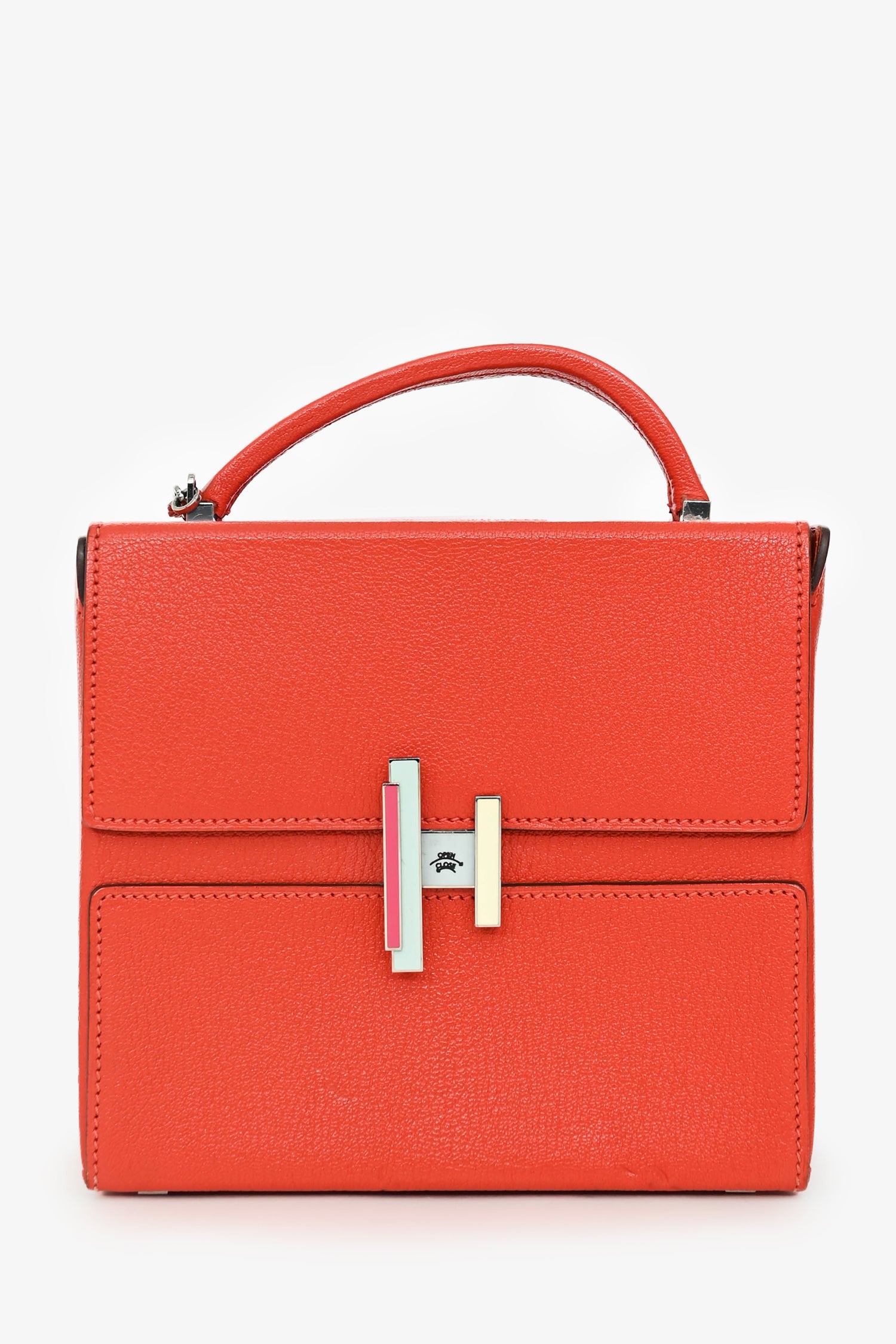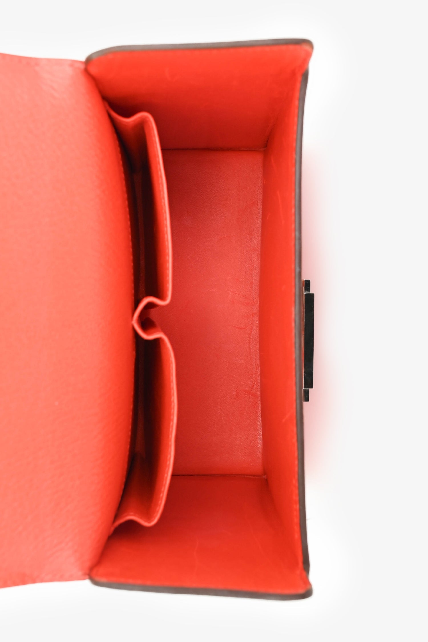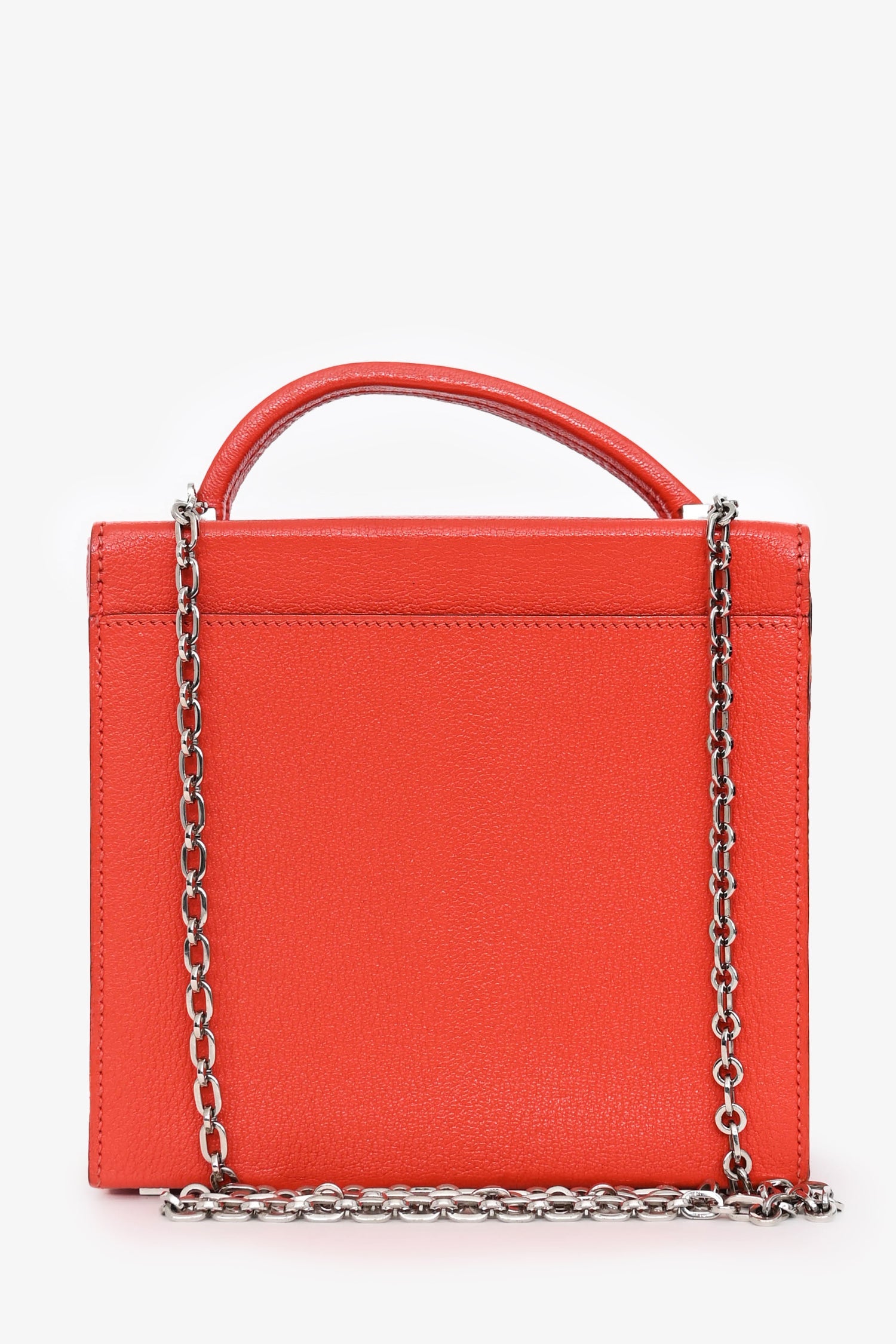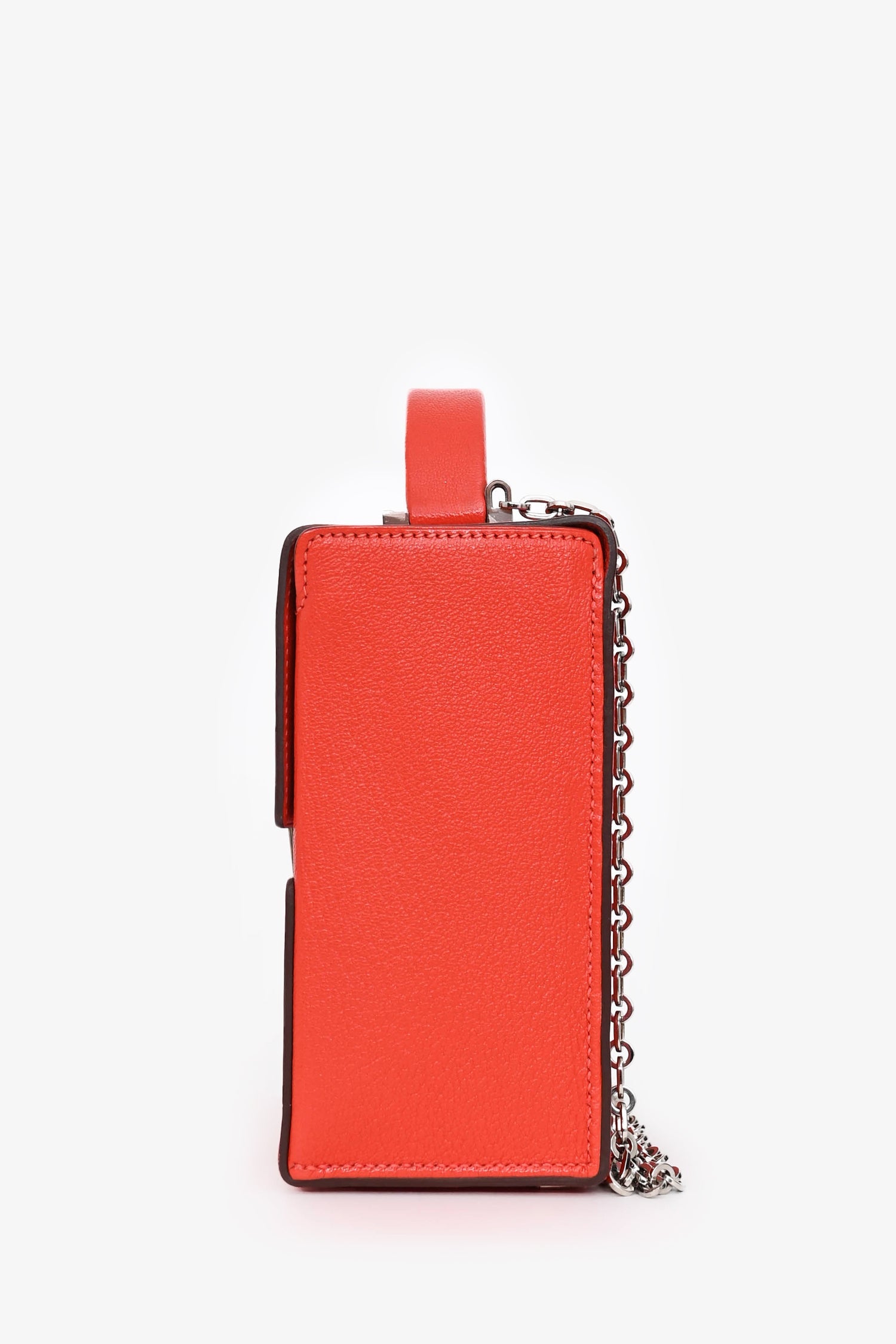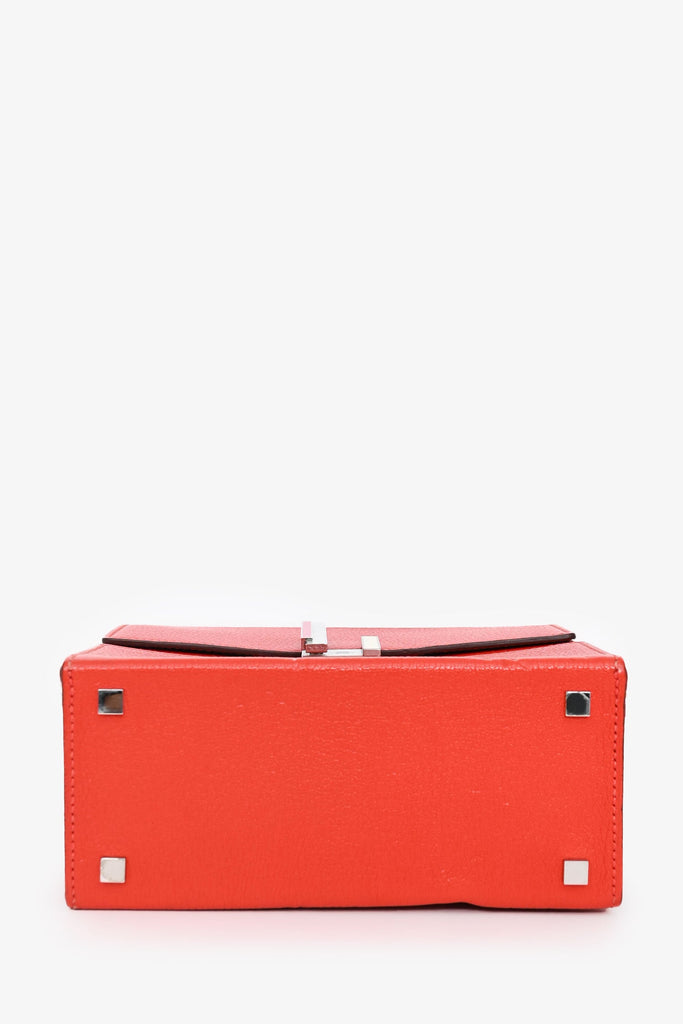 Hermès 2018 Red Mysore Leather Cinhetic Box Top Handle. Front fold-over flap with turn-lock closure. Two interior wall slip pockets. Exterior rear slip pocket. Protective metal bottom. Chain strap. Silver-tone hardware.