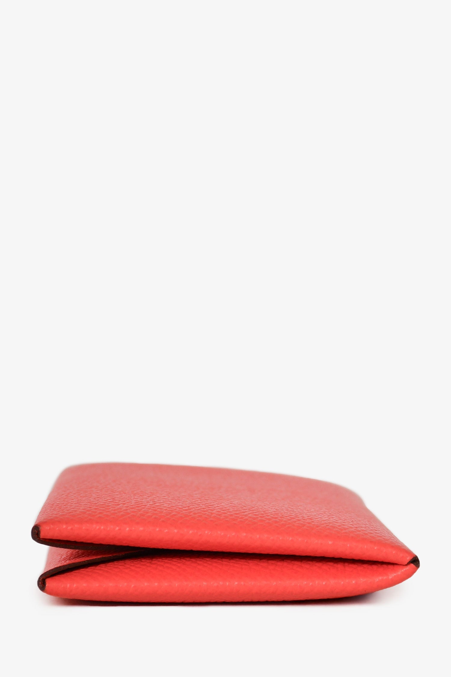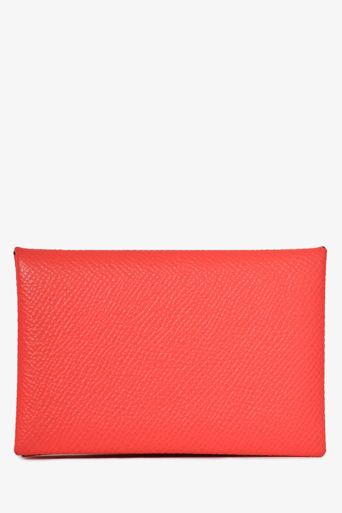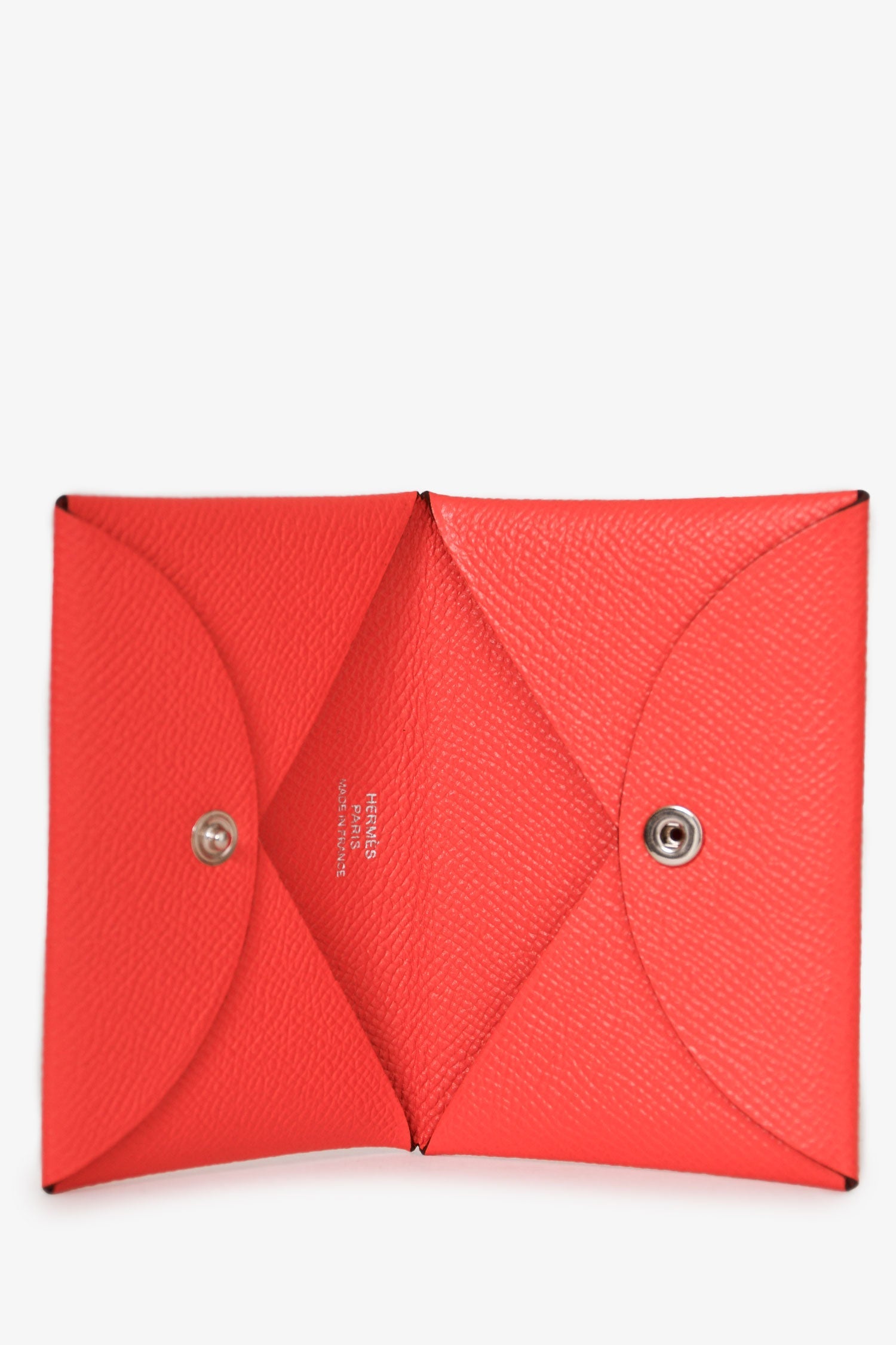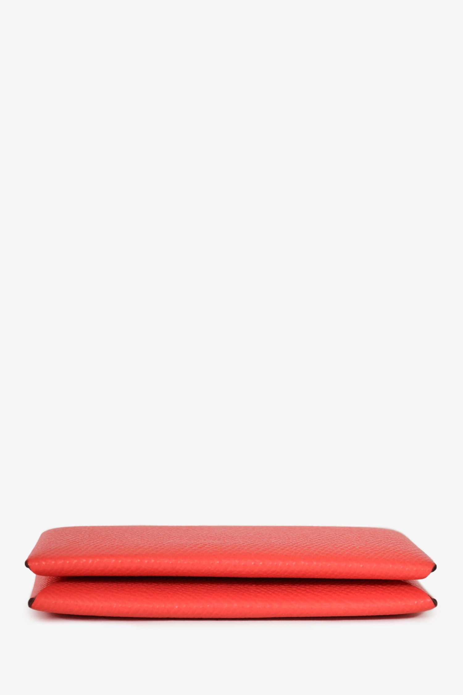 Hermes 2019 Red Epsom Leather Calvi Wallet. Snap closure. 2 pockets. Tonal stitching.