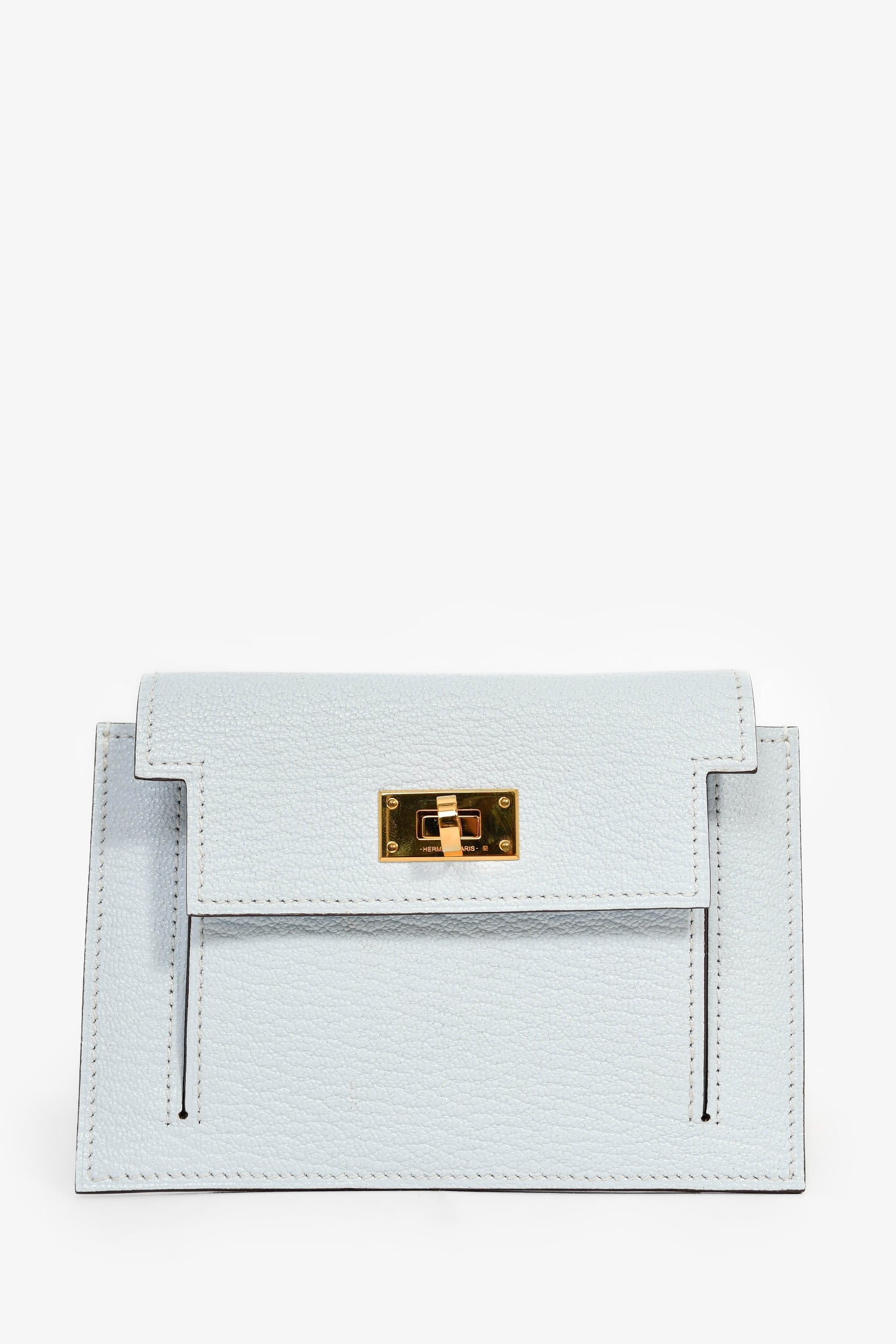Hermès 2021 Light Blue Leather Kelly Pocket Compact Wallet