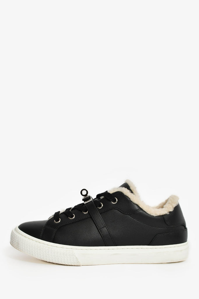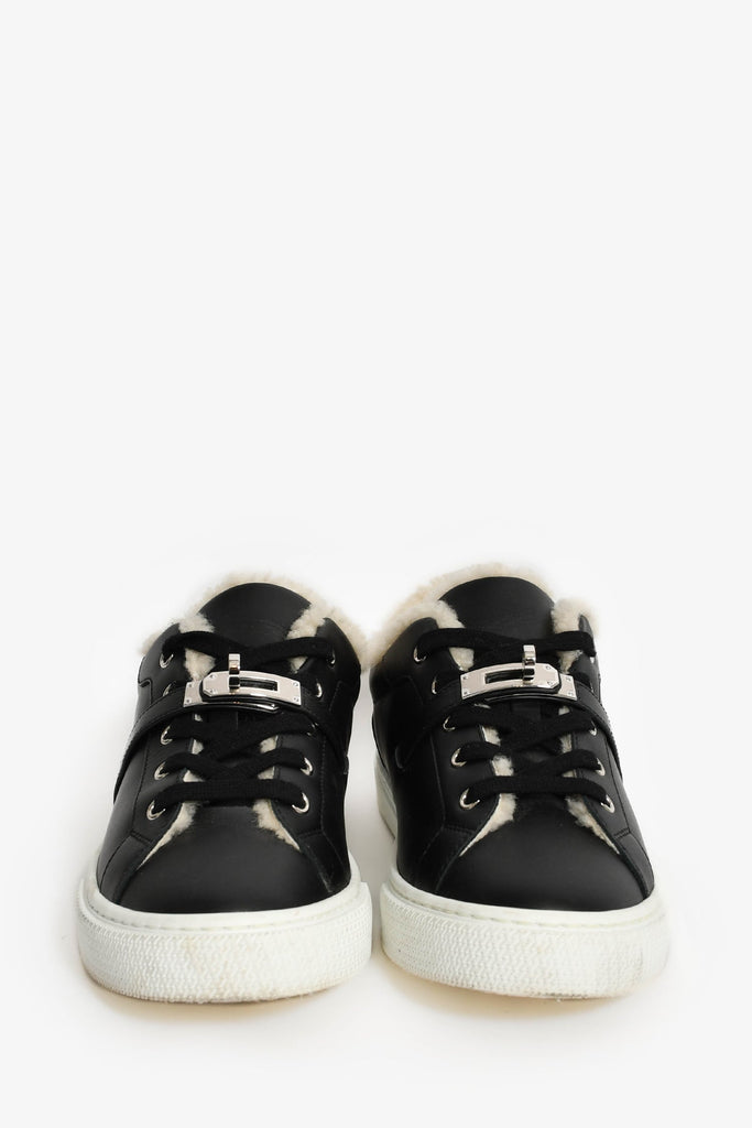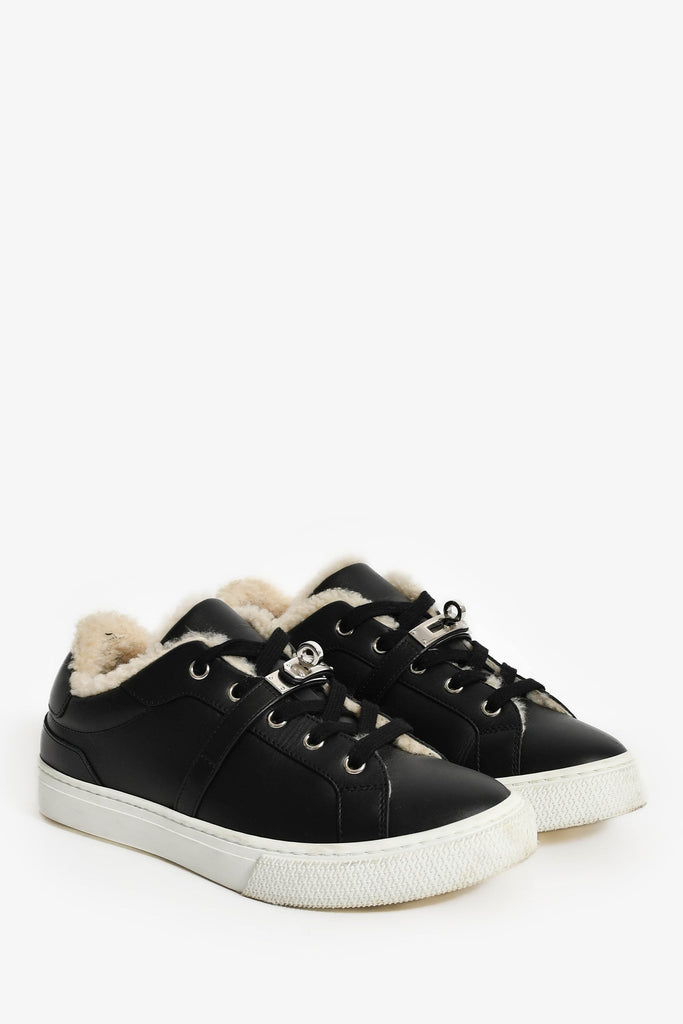 Hermes Black Leather/Shearling Kelly Buckle 'Day' Sneakers Size 38