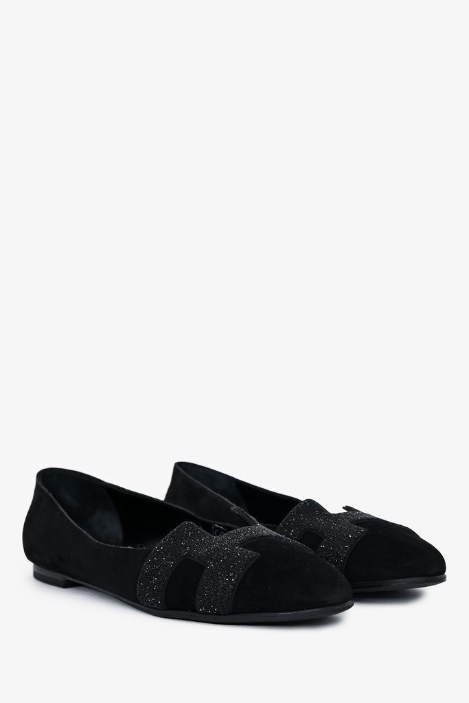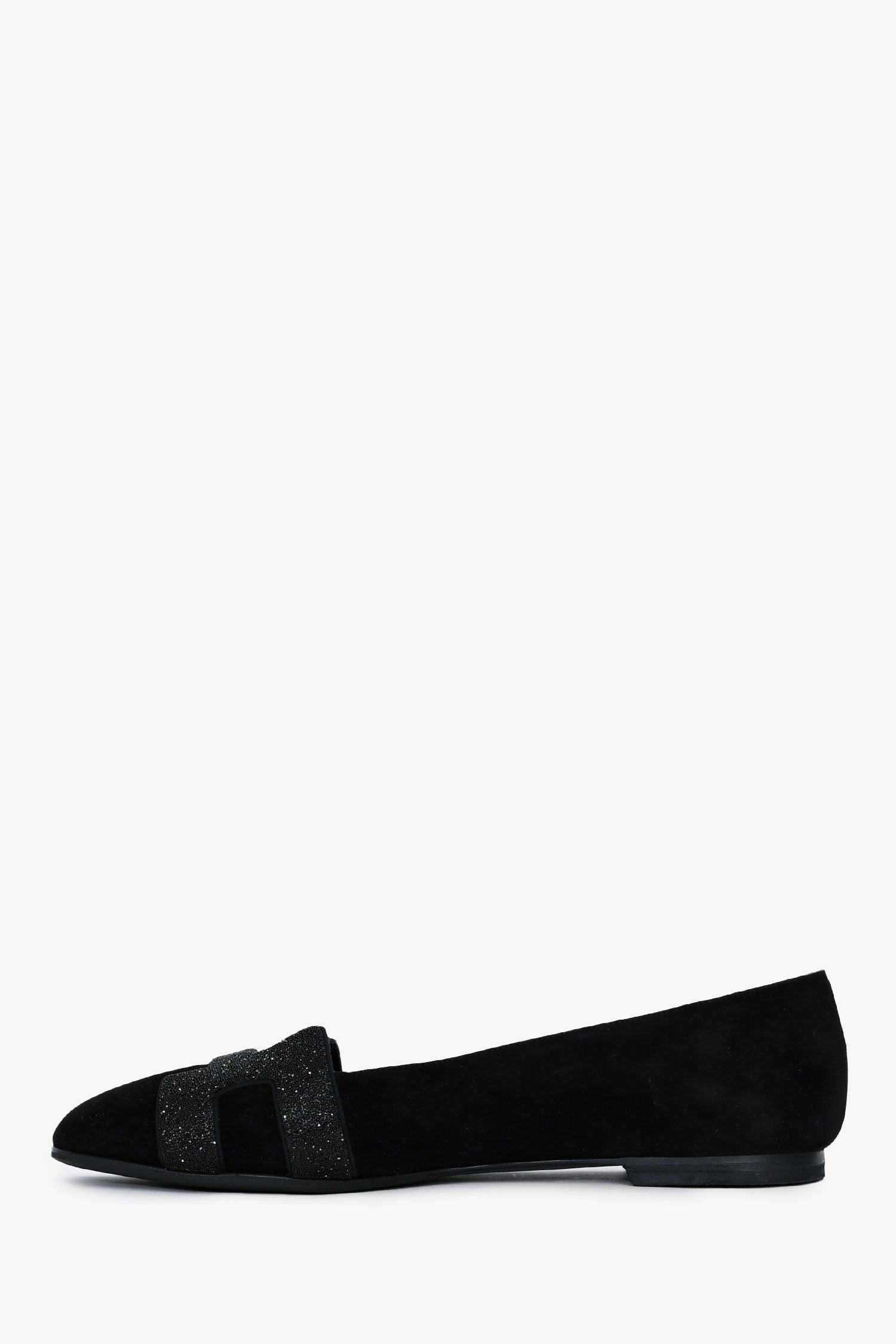 Hermes Black Suede Leather Crystal Embellished H Logo Nice Flats. Round toe. Crystal 'H'. Leather insoles. Suede trim. Tonal stitching.