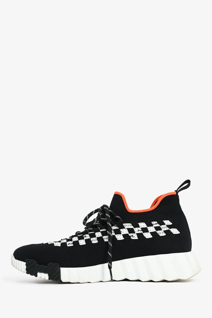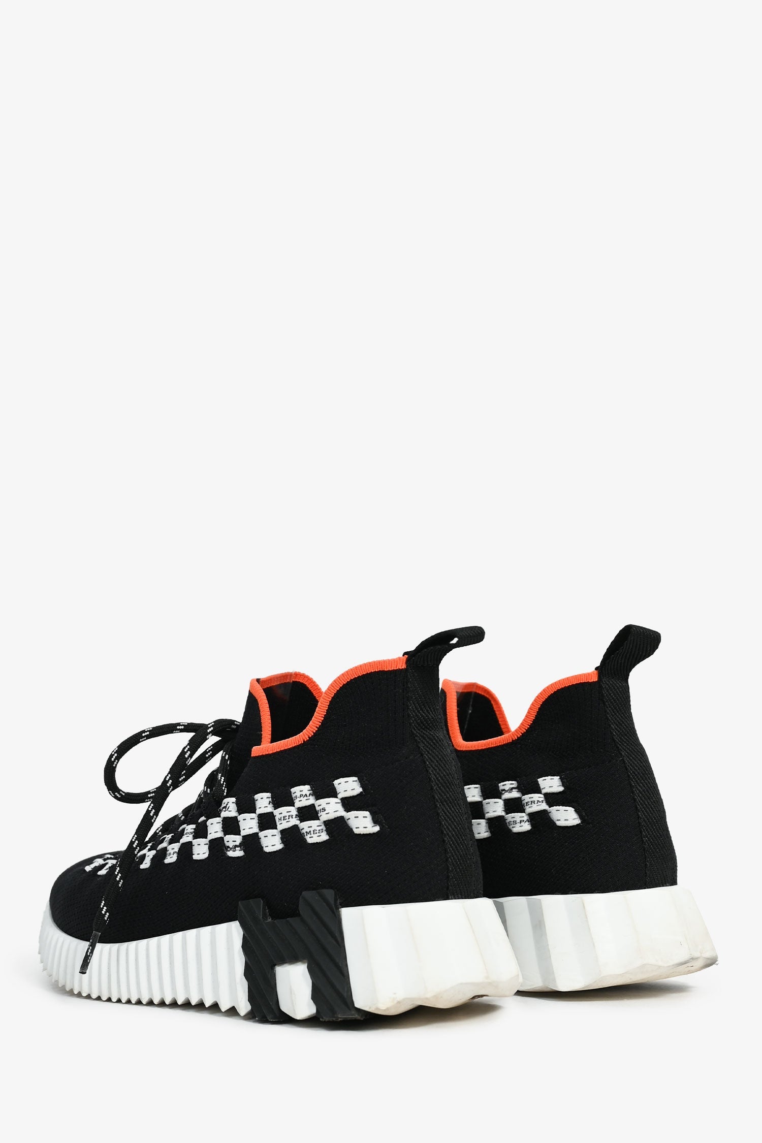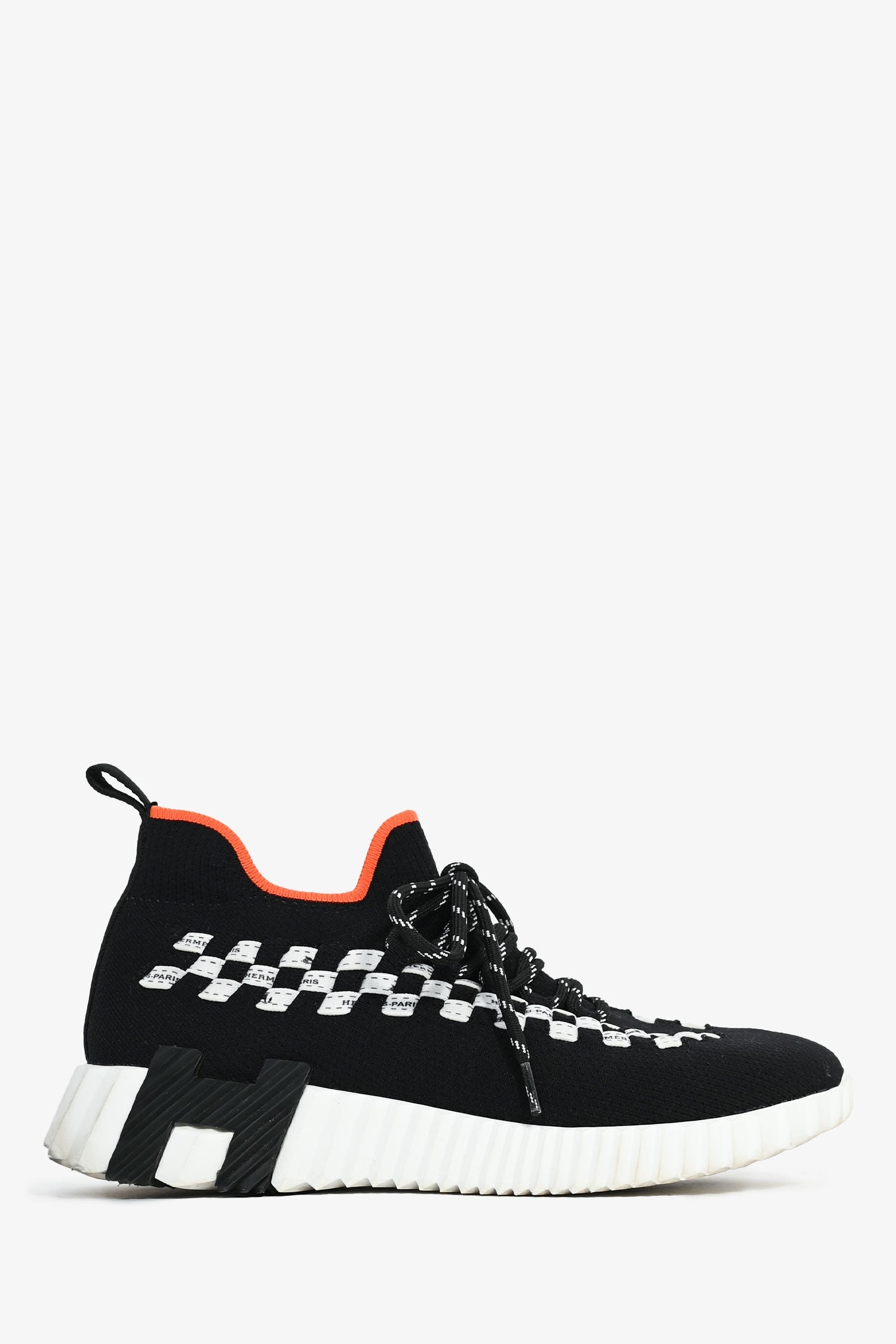 Hermes Black/White Mesh H 'Bouncing' Sneakers. Lace-up front closure. Leather insoles. Rubber soles. Tonal stitching.