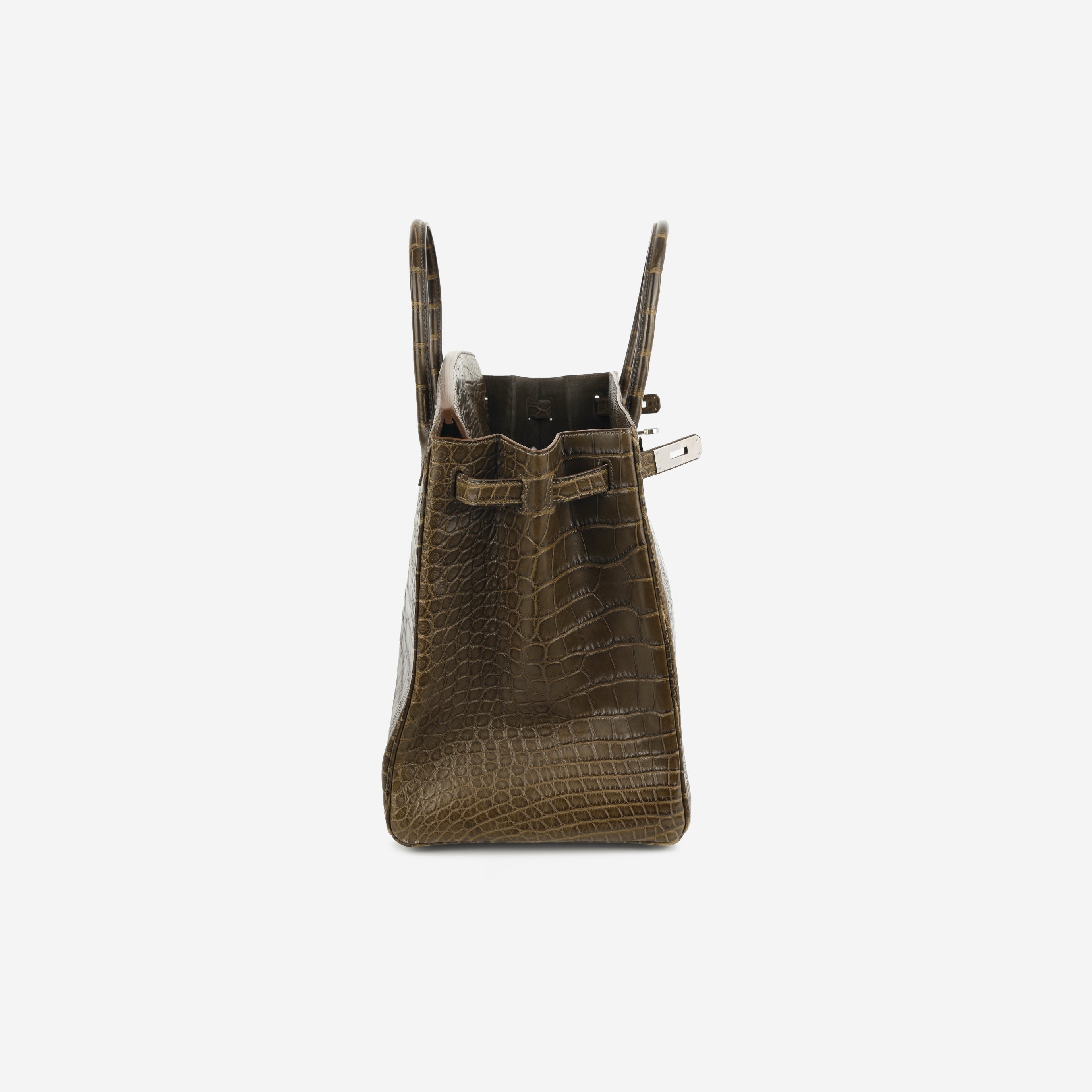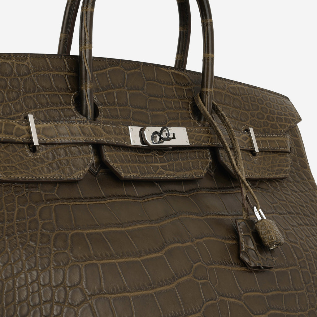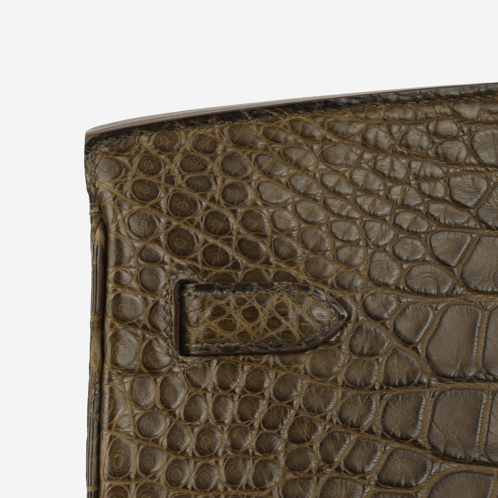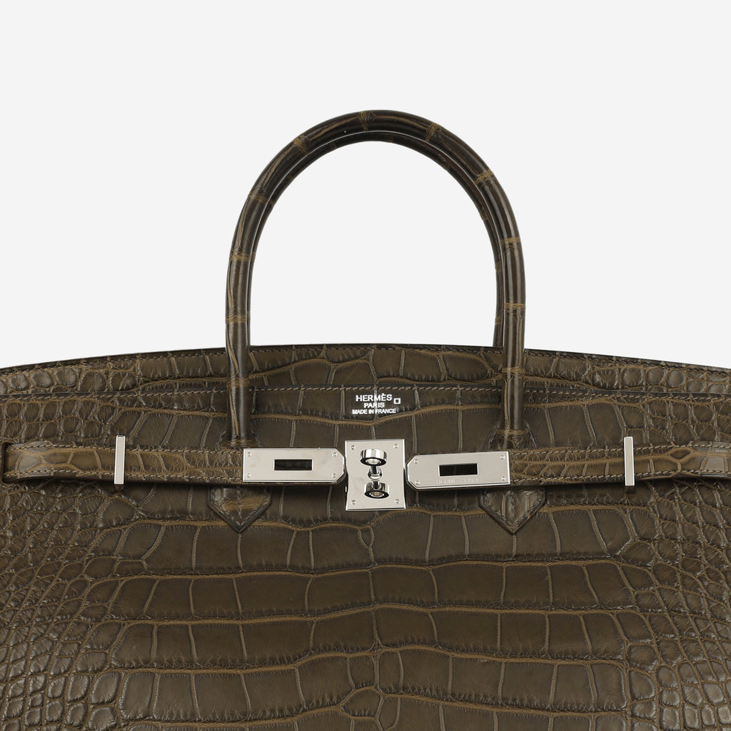 The Hermès Birkin 40 in Gris Elephant Alligator Mississippiensis with Palladium Hardware is a museum-worthy collector’s piece, crafted from one of the most luxurious exotic croc skins in the world. The deep, earthy Gris Elephant tone adds understated richness, while the cool-toned Palladium Hardware complements the matte texture of this highly prized American alligator leather.