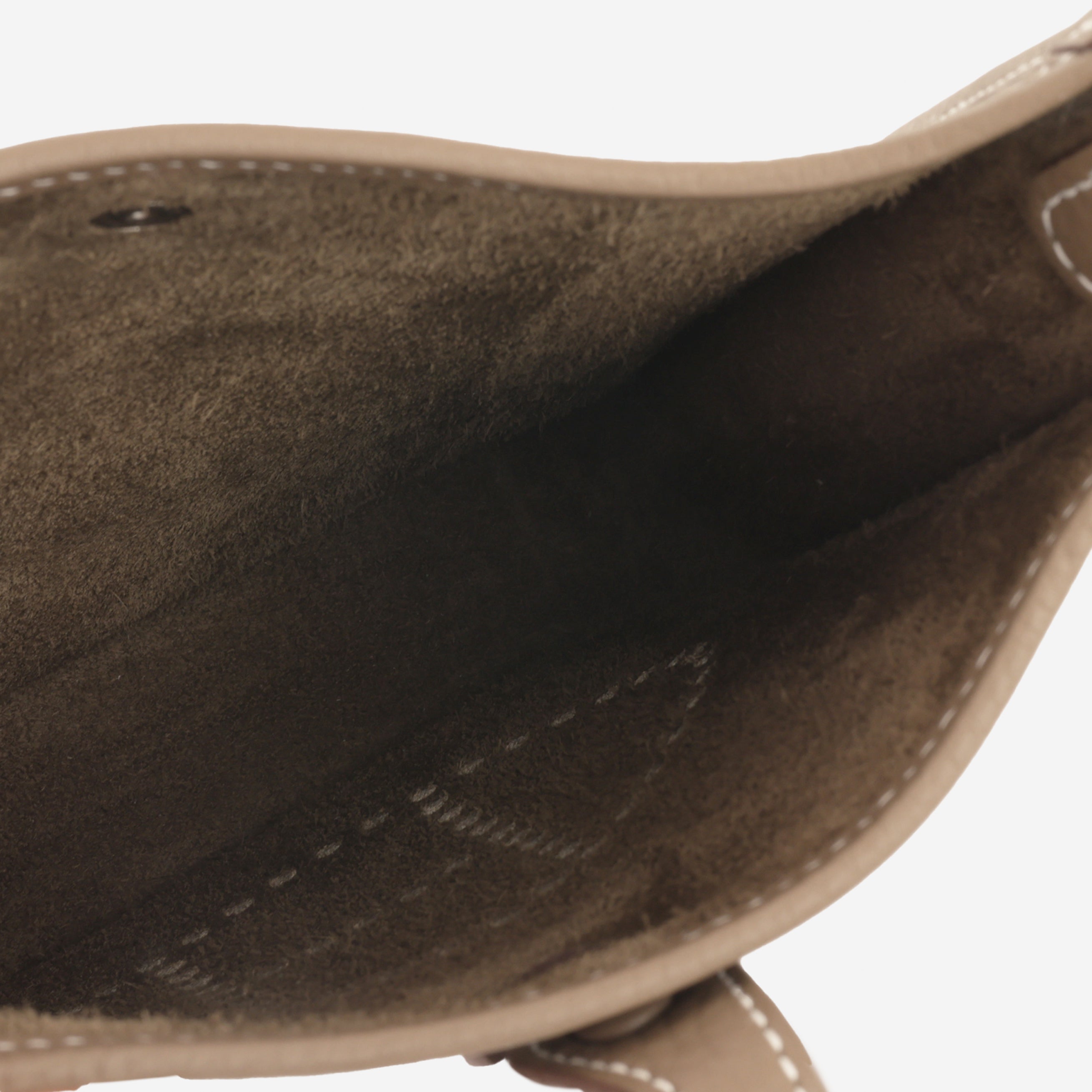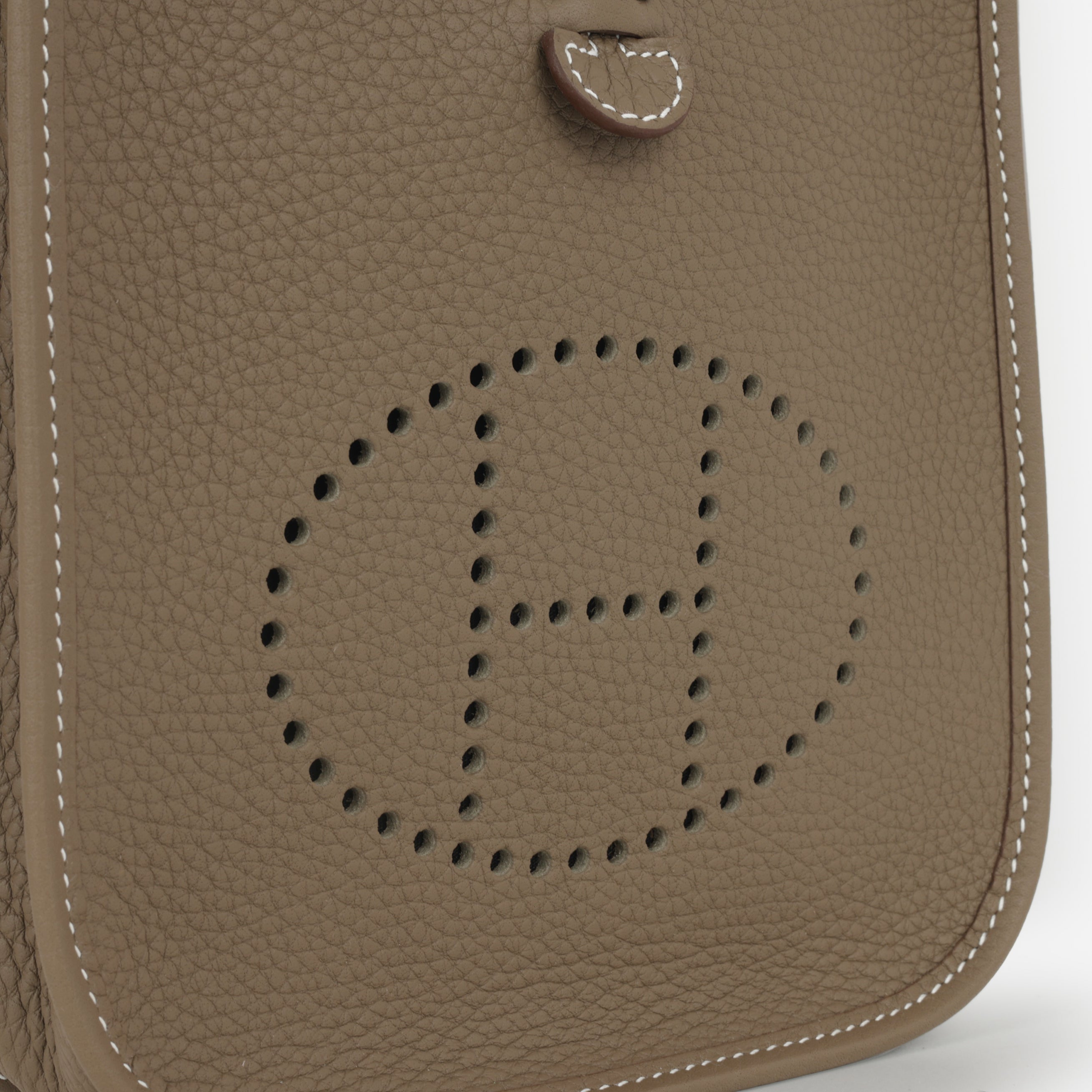 Crafted in Clemence leather, the Mini Evelyne offers a soft, durable finish, while the signature perforated “H” and detachable canvas strap create an effortless, casual look. The Etoupe and Bleu Indigo combination is rare to find and provides a subtle yet distinctive contrast.