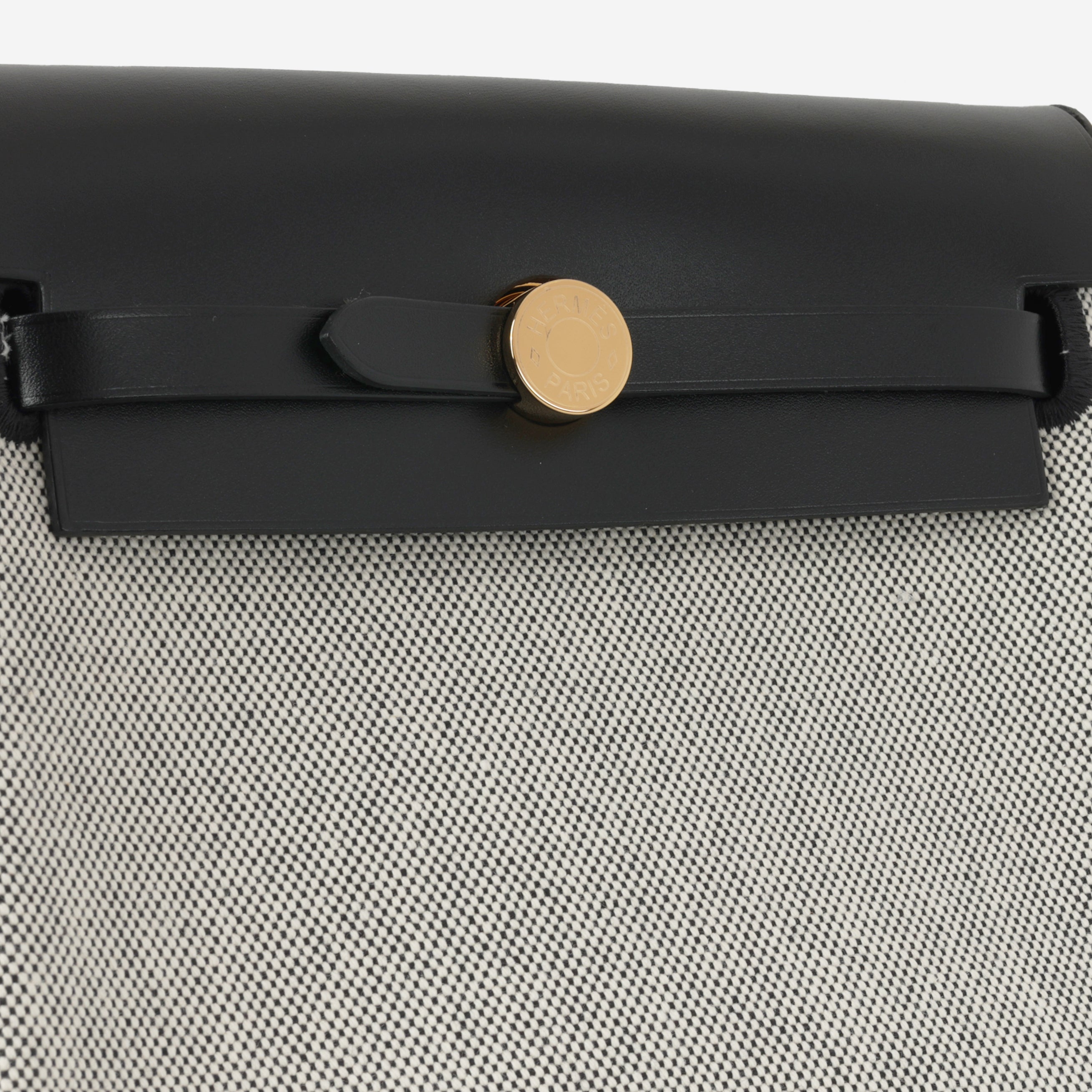 Hermès Mini Herbag 20 - Noir / Ecru Quadrille / Noir Hunter | Gold Hardware