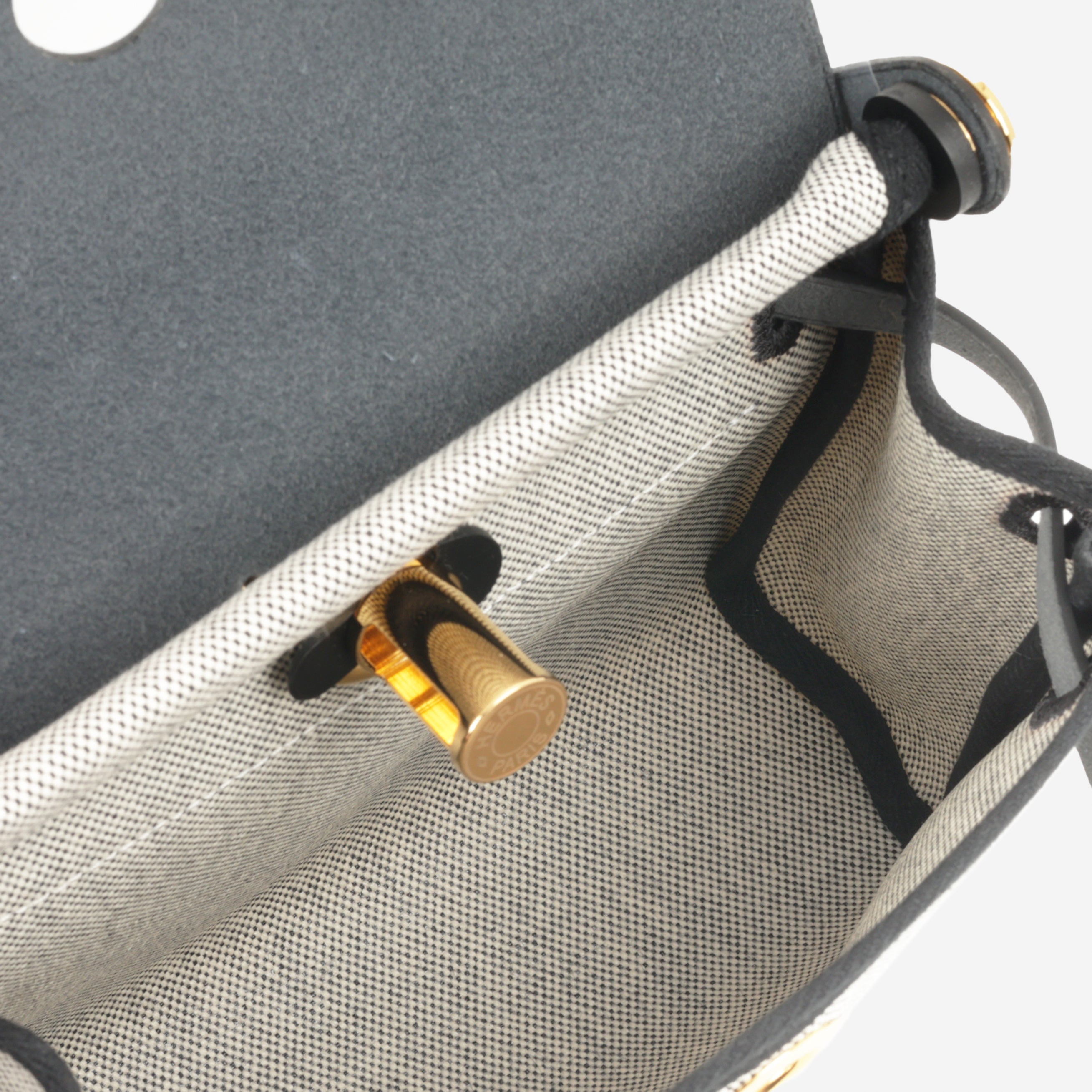 Playful yet timeless, the Hermès Mini Herbag is a modern icon that blends casual elegance with everyday versatility. This piece features Écru Quadrille canvas paired with Noir Hunter leather, finished with warm gold hardware (GHW).