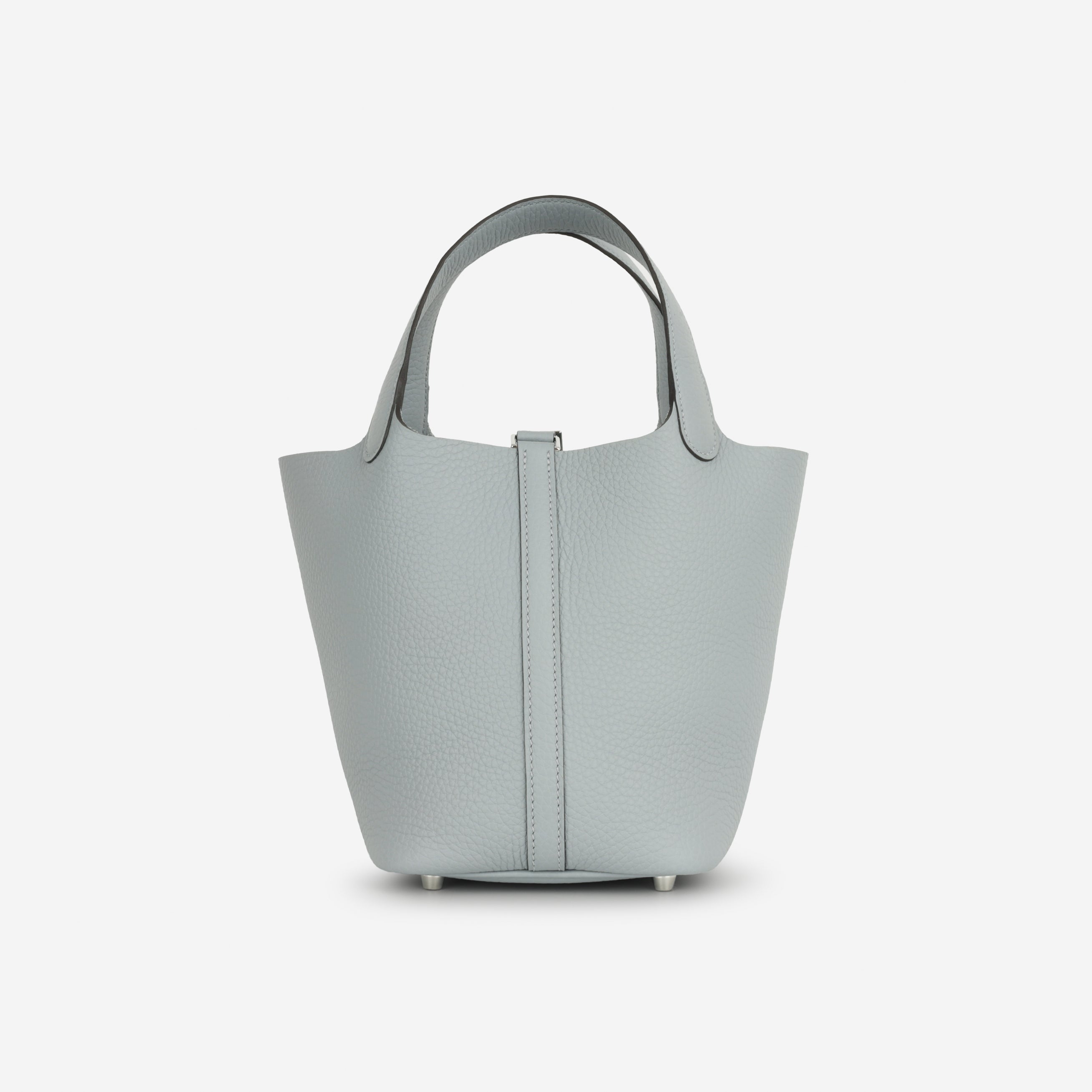 This edition is crafted in Gris Pantin Clemence leather, a soft and supple calfskin known for its casual slouch and luxurious hand feel. Paired with Palladium hardware, the Picotin 18 exudes quiet sophistication while remaining effortlessly versatile.