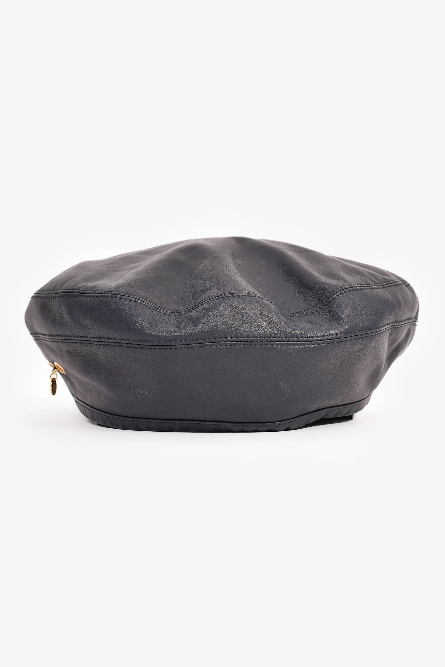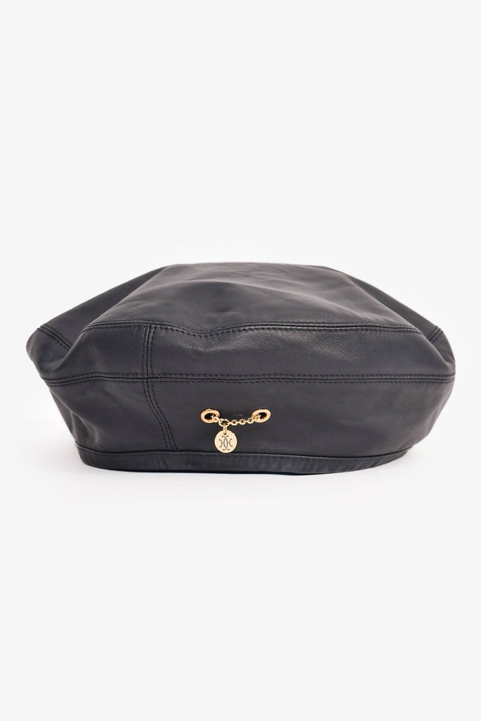 Hermès Navy Leather Beret. Lined.