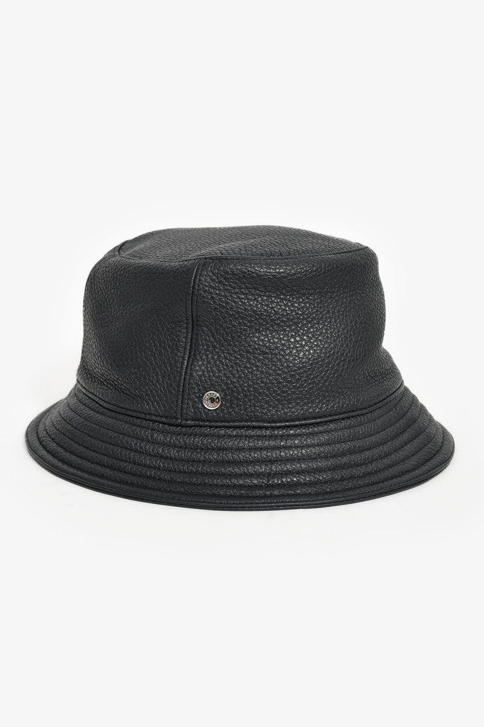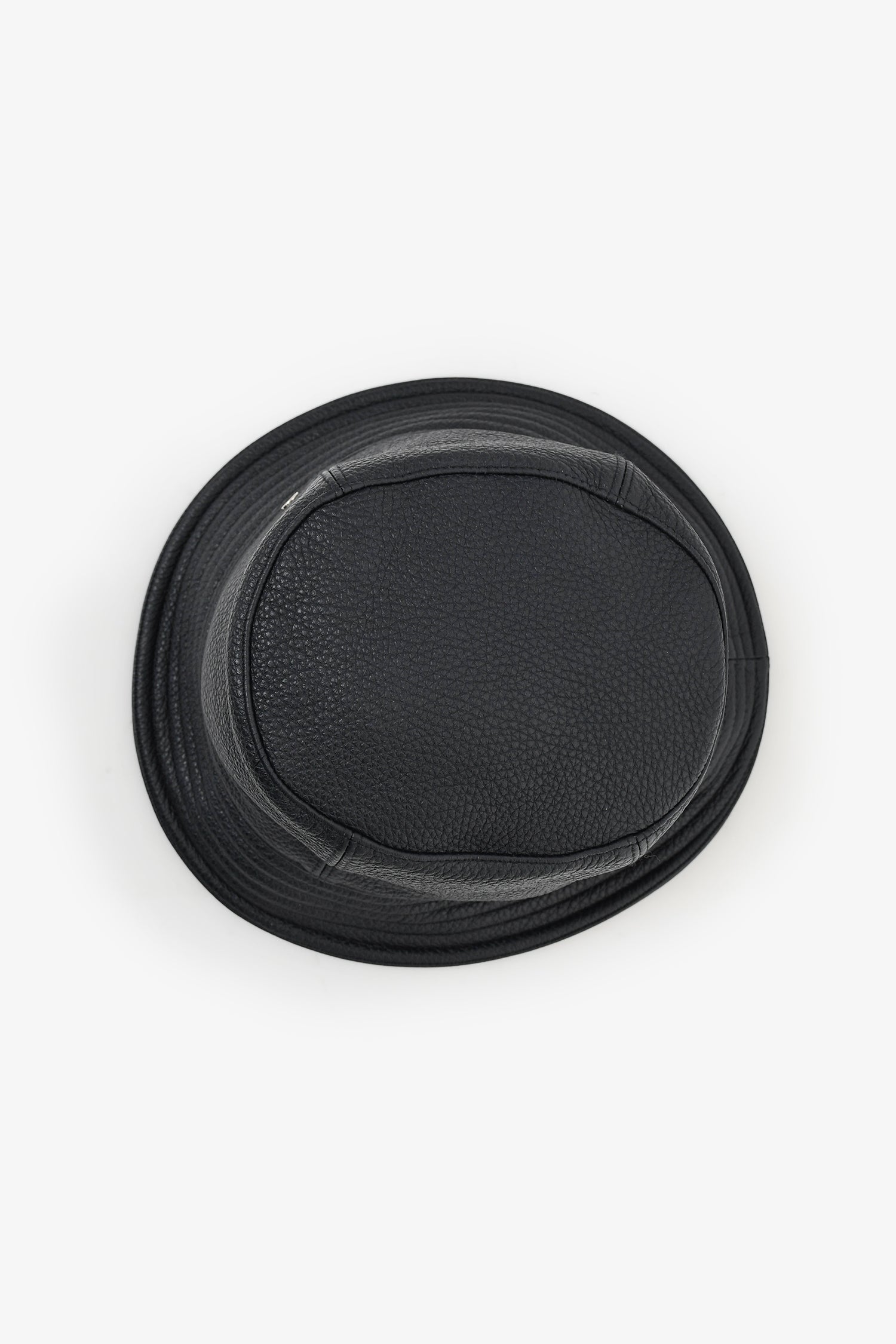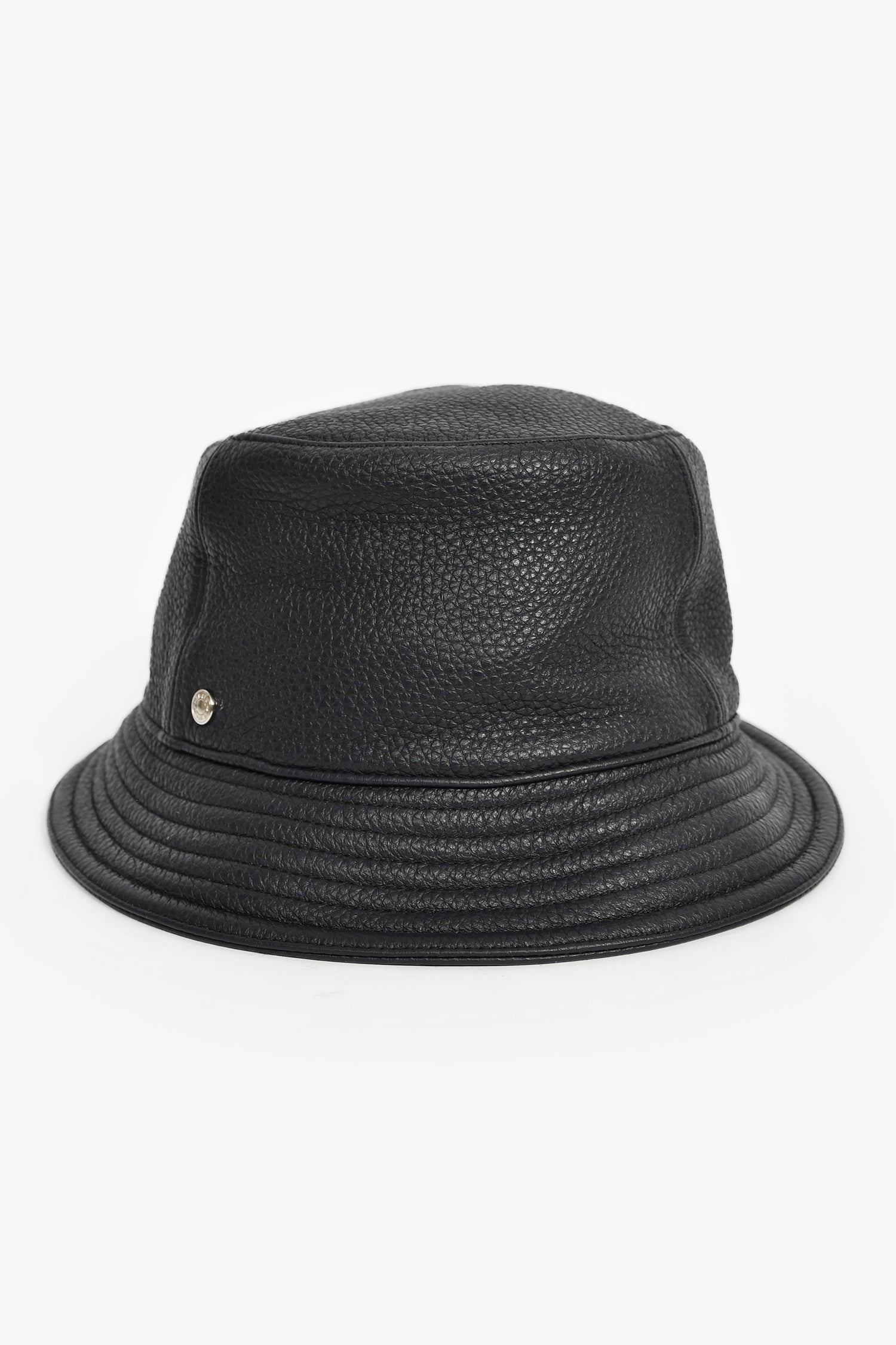 Hermès Navy Leather Bucket Hat. Slip-on. Lined interior. Tonal stitching.