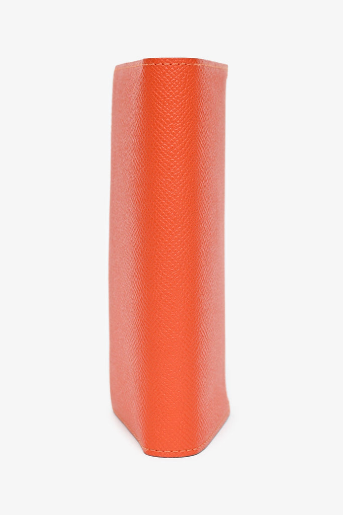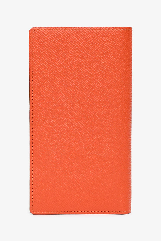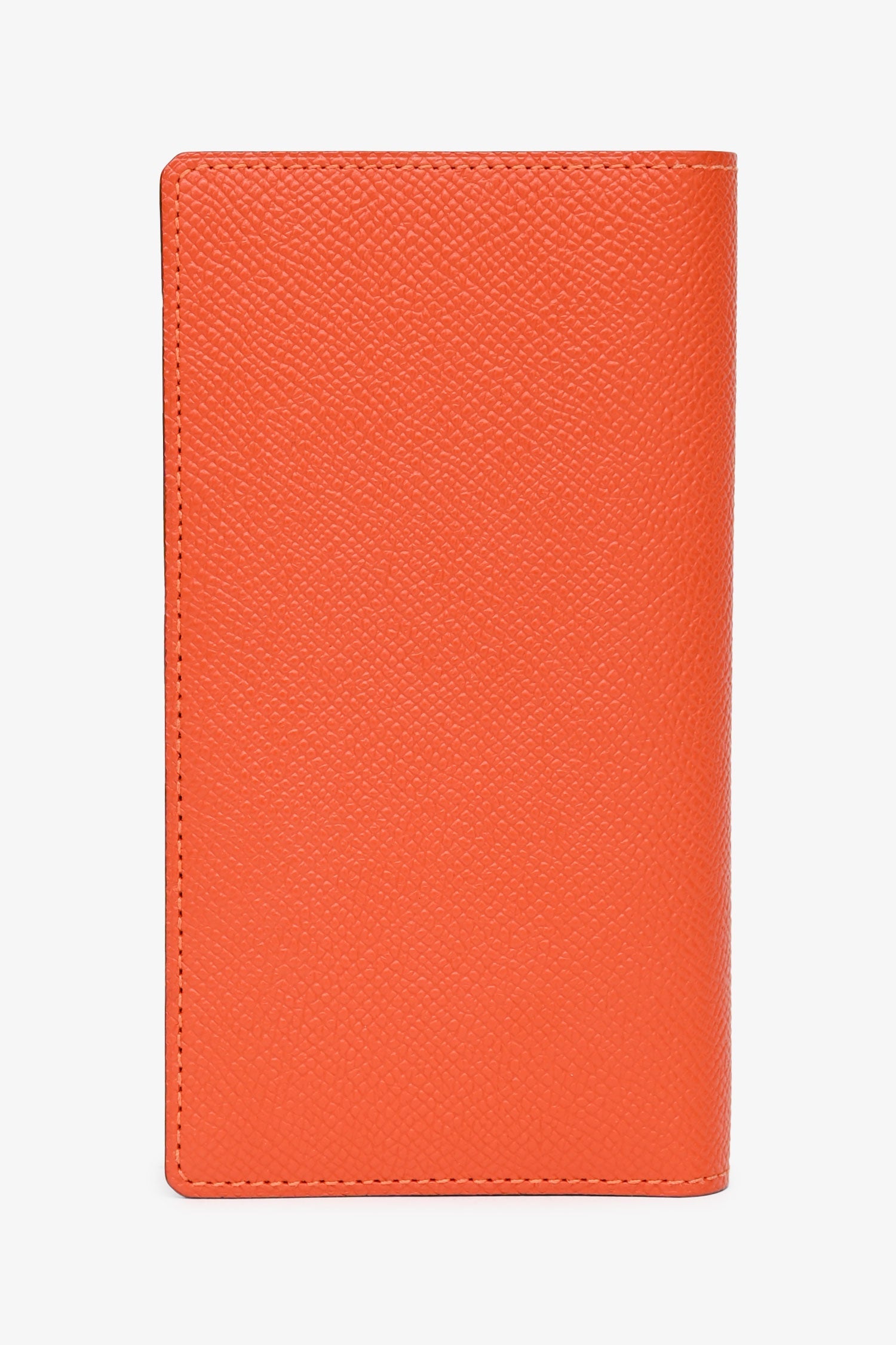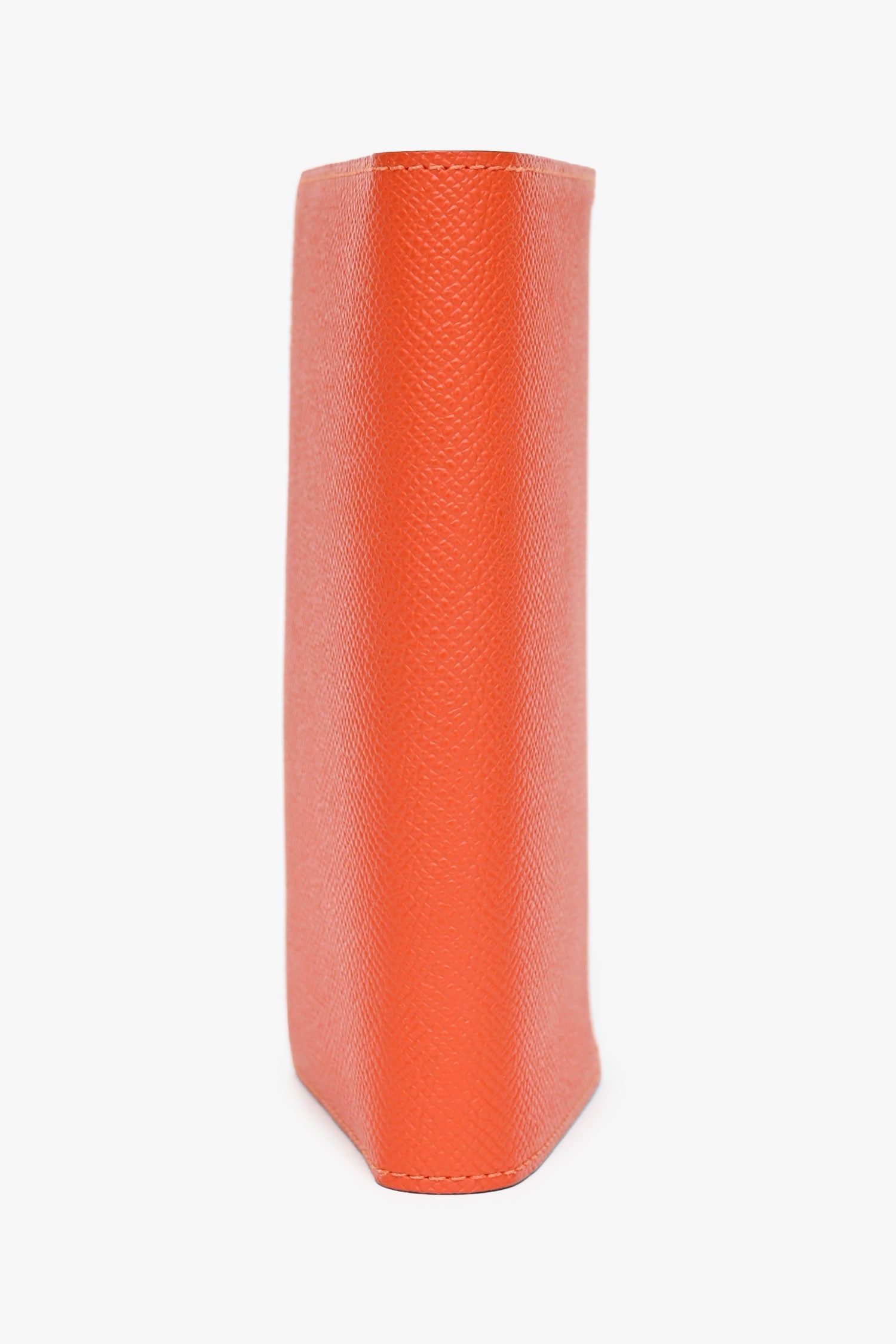 Hermès Orange Epsom Leather Long Bi-Fold Wallet. Four card slots. Two billfold compartments. One open compartment with divider. Tonal stitching.