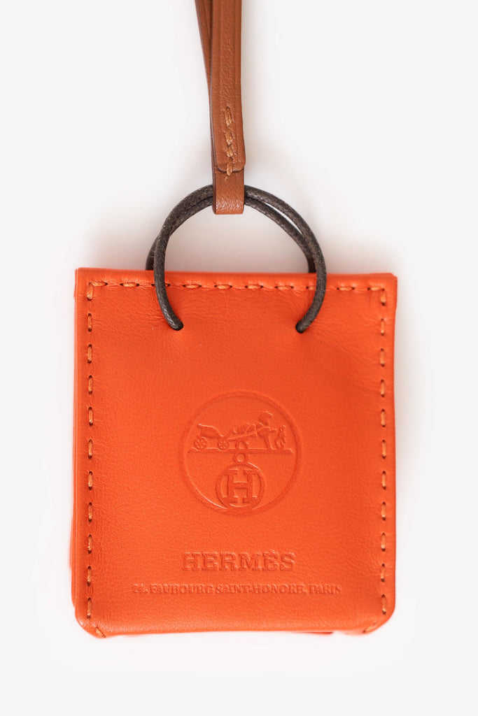 Hermes Orange Leather Bag Charm. Tonal stitching.
