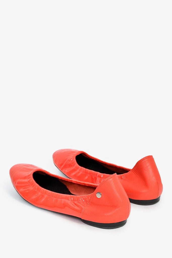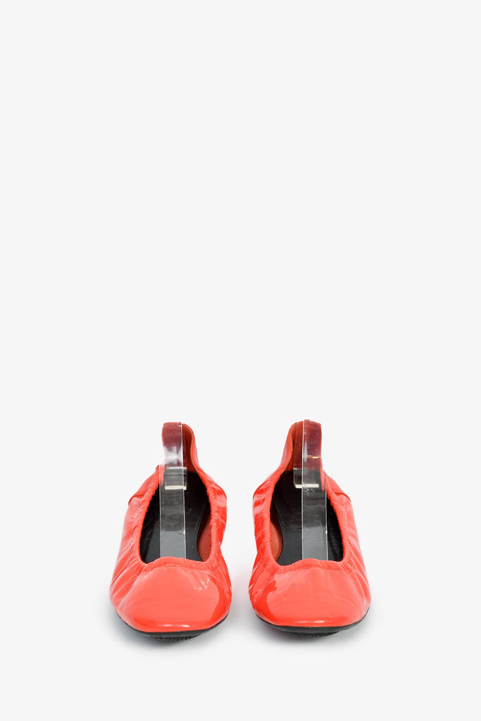 Hermes Orange Patent Ballet Flats. Slip-on. Round toe. Leather insoles. Tonal stitching.