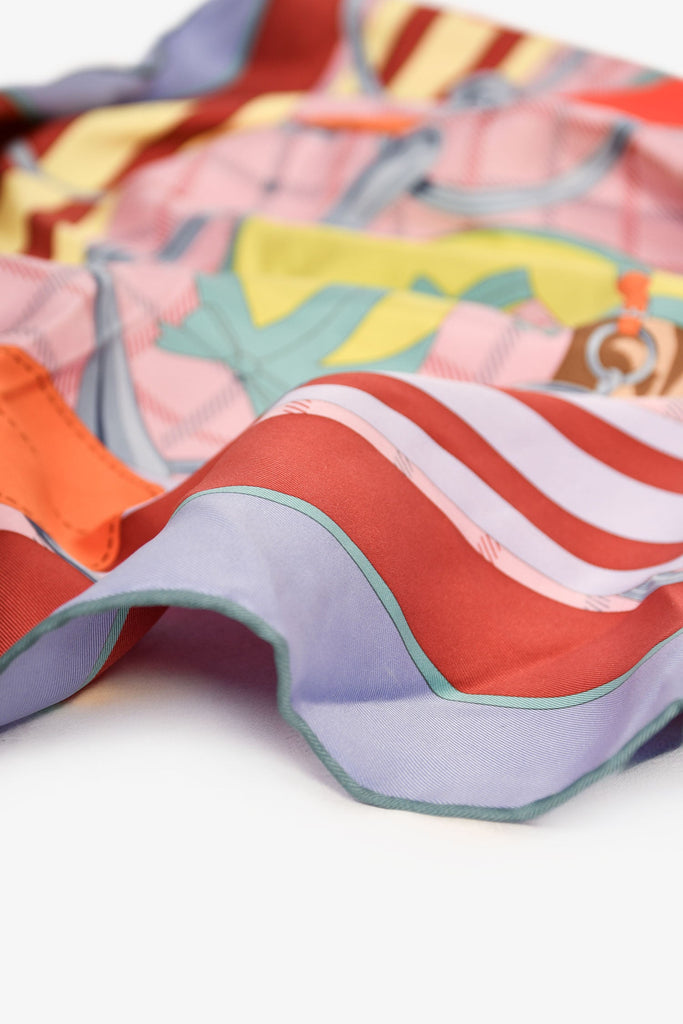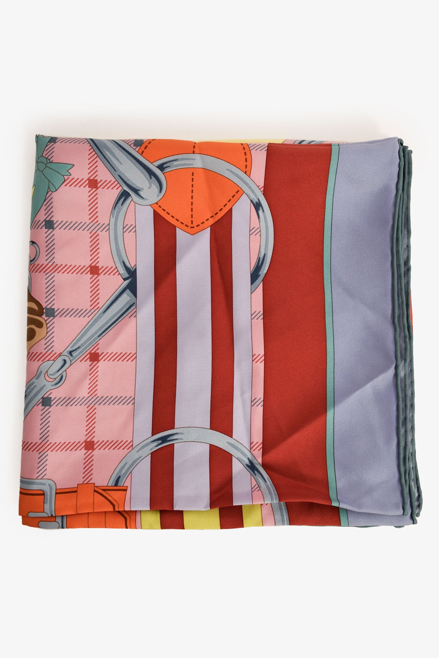 Hermès Purple/Multi Silk 'Sellier' Scarf 90. Tonal stitching.