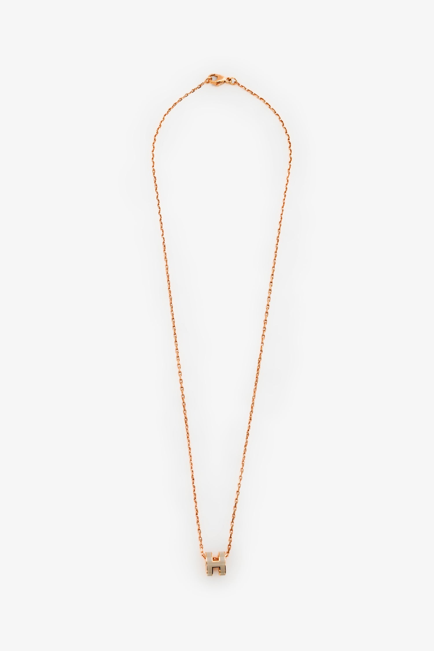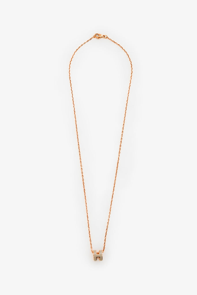 Hermès Rose Gold Toned/Taupe Enamel H Pop Necklace. Lobster clasp closure.