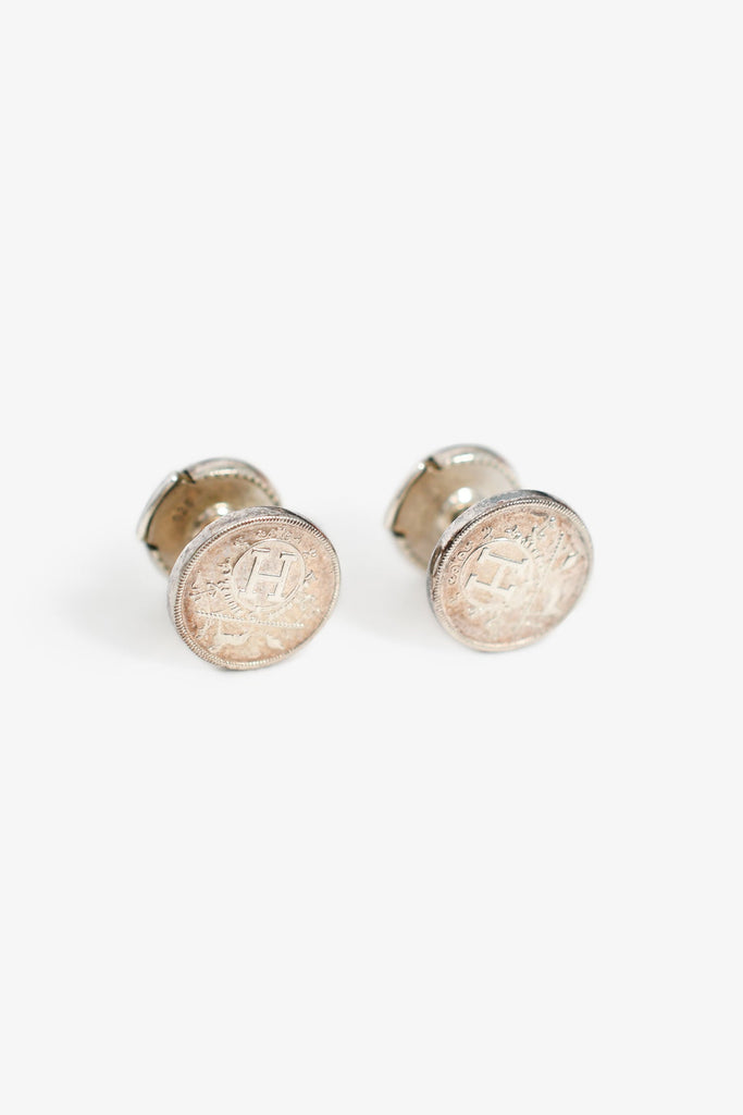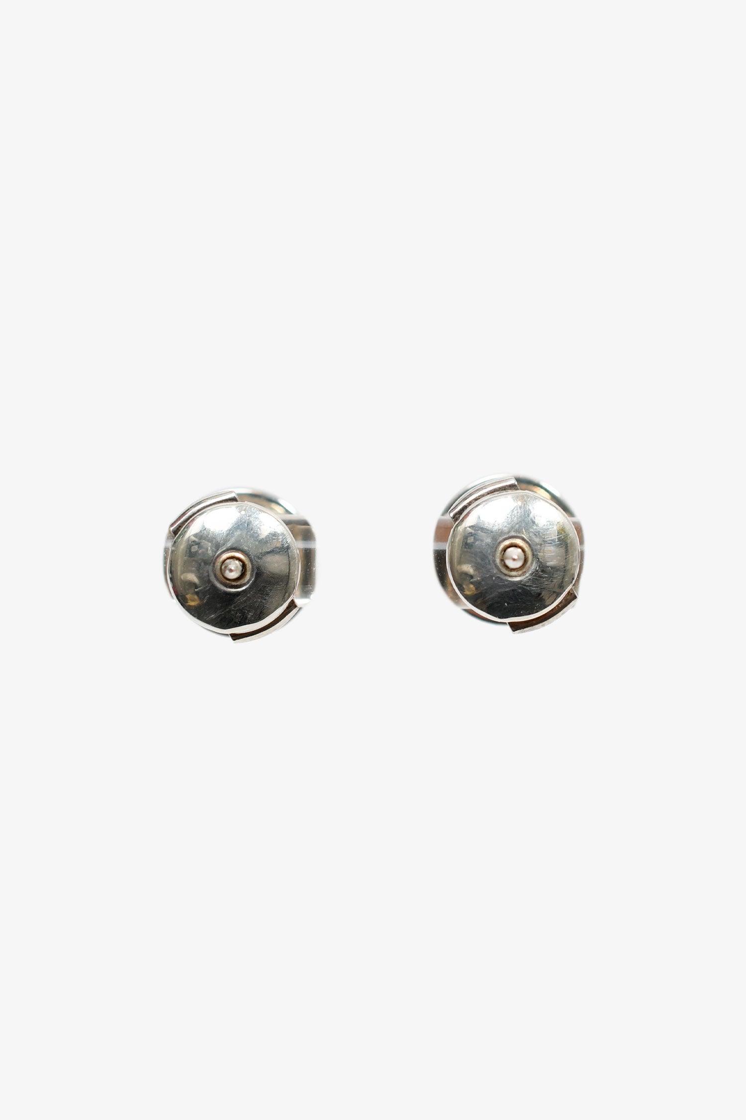 Hermes Sterling Silver Ex-Libris Button Earrings. Push pin with press-release backing.