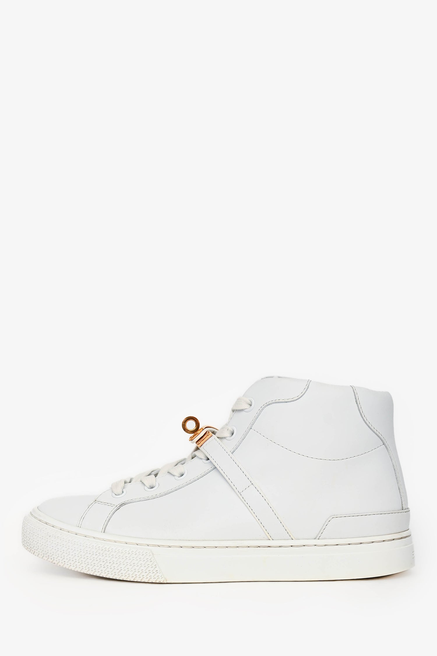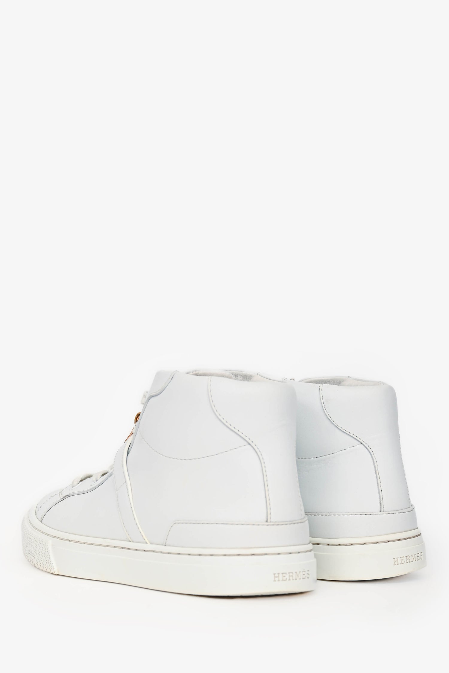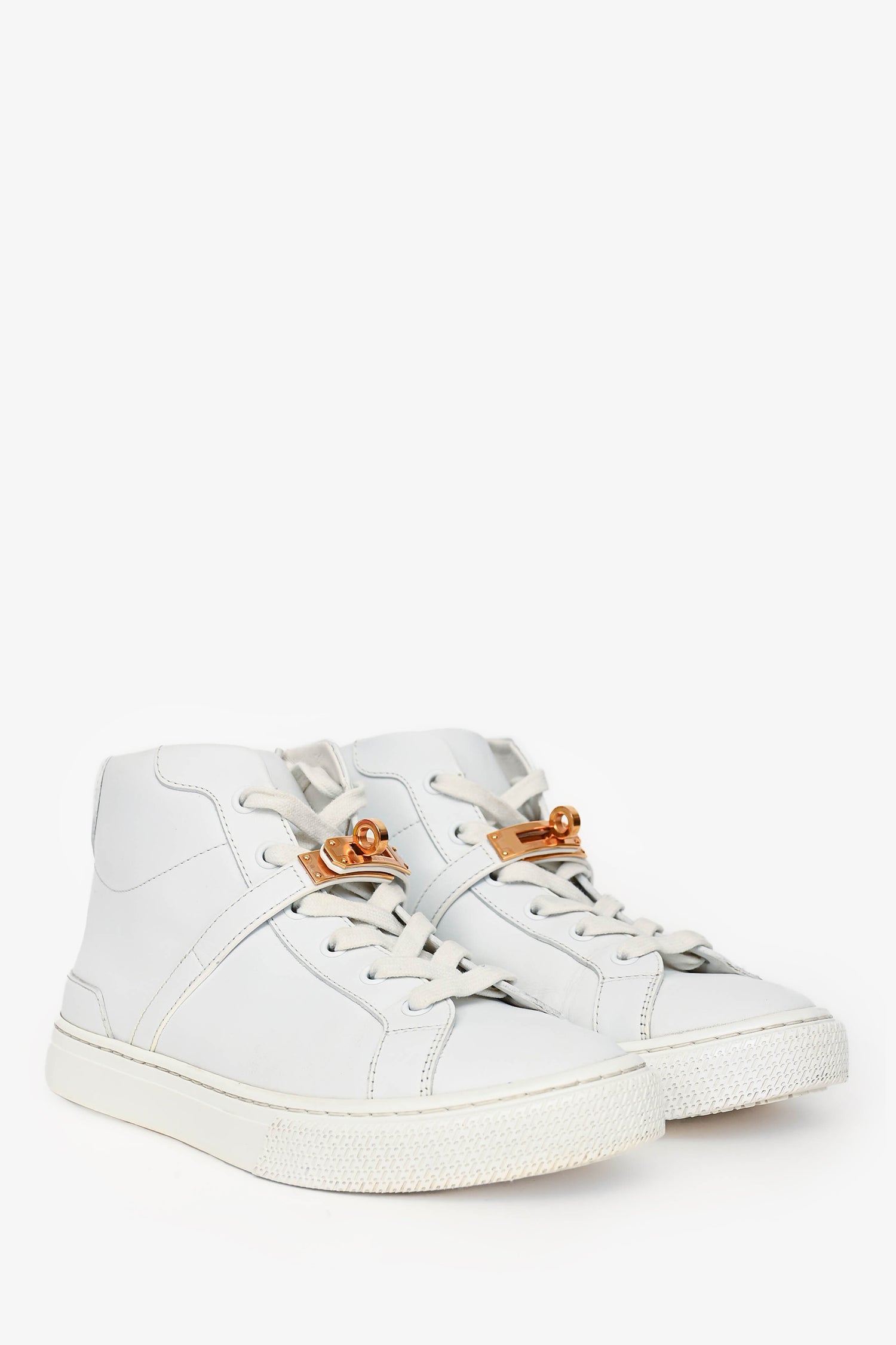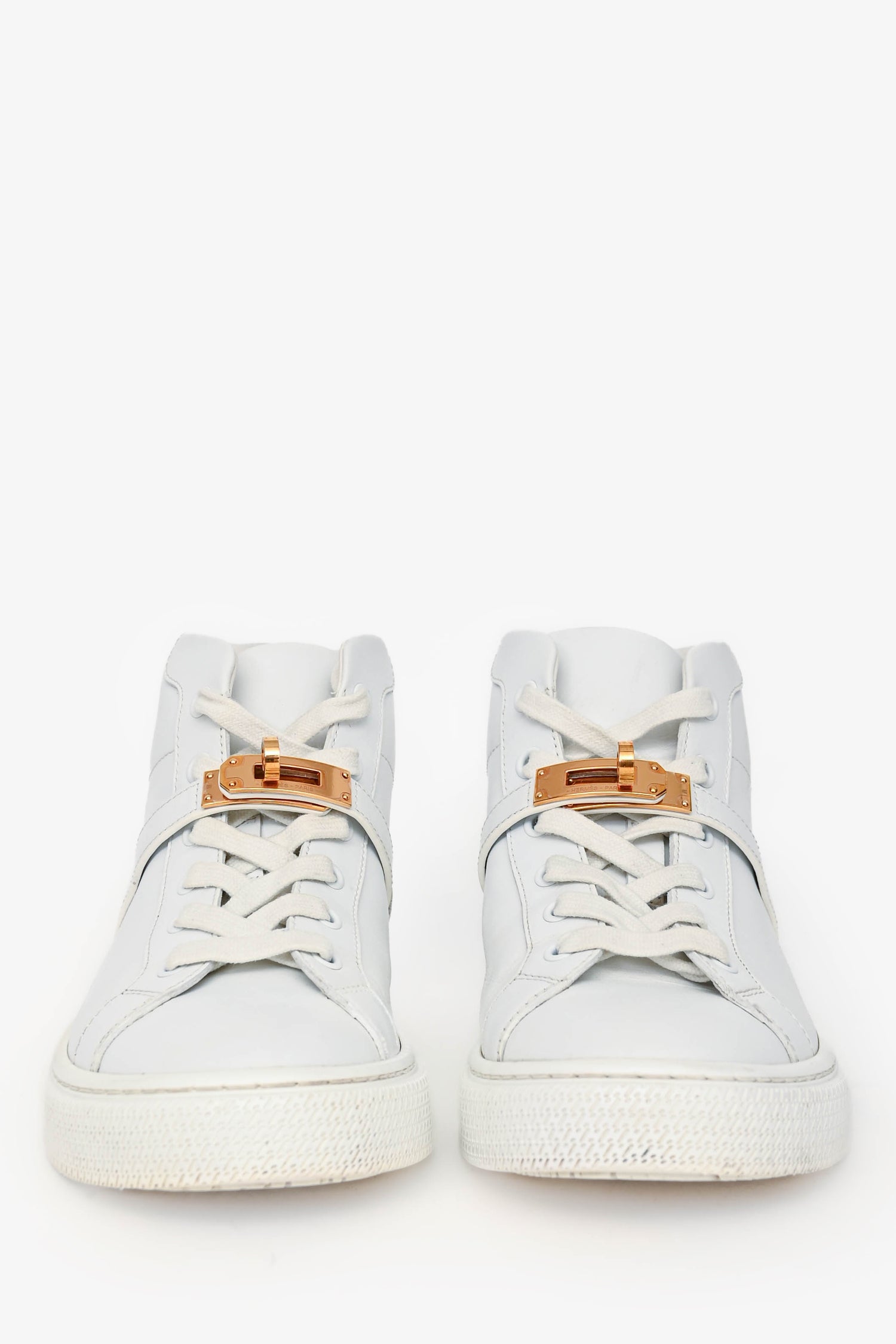 Hermès White Leather Kelly Buckle 'Daydream' High Top Sneakers Size 36