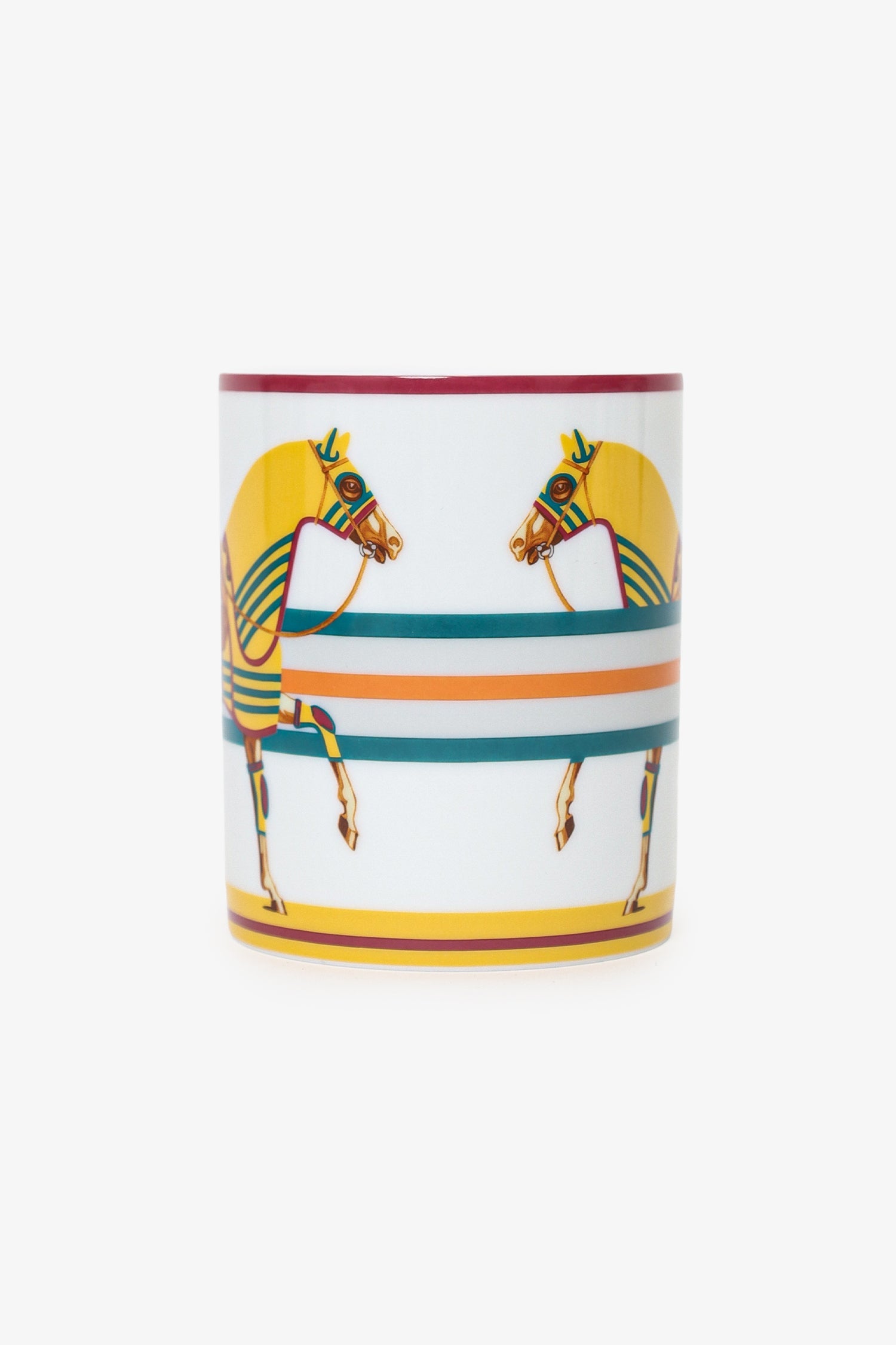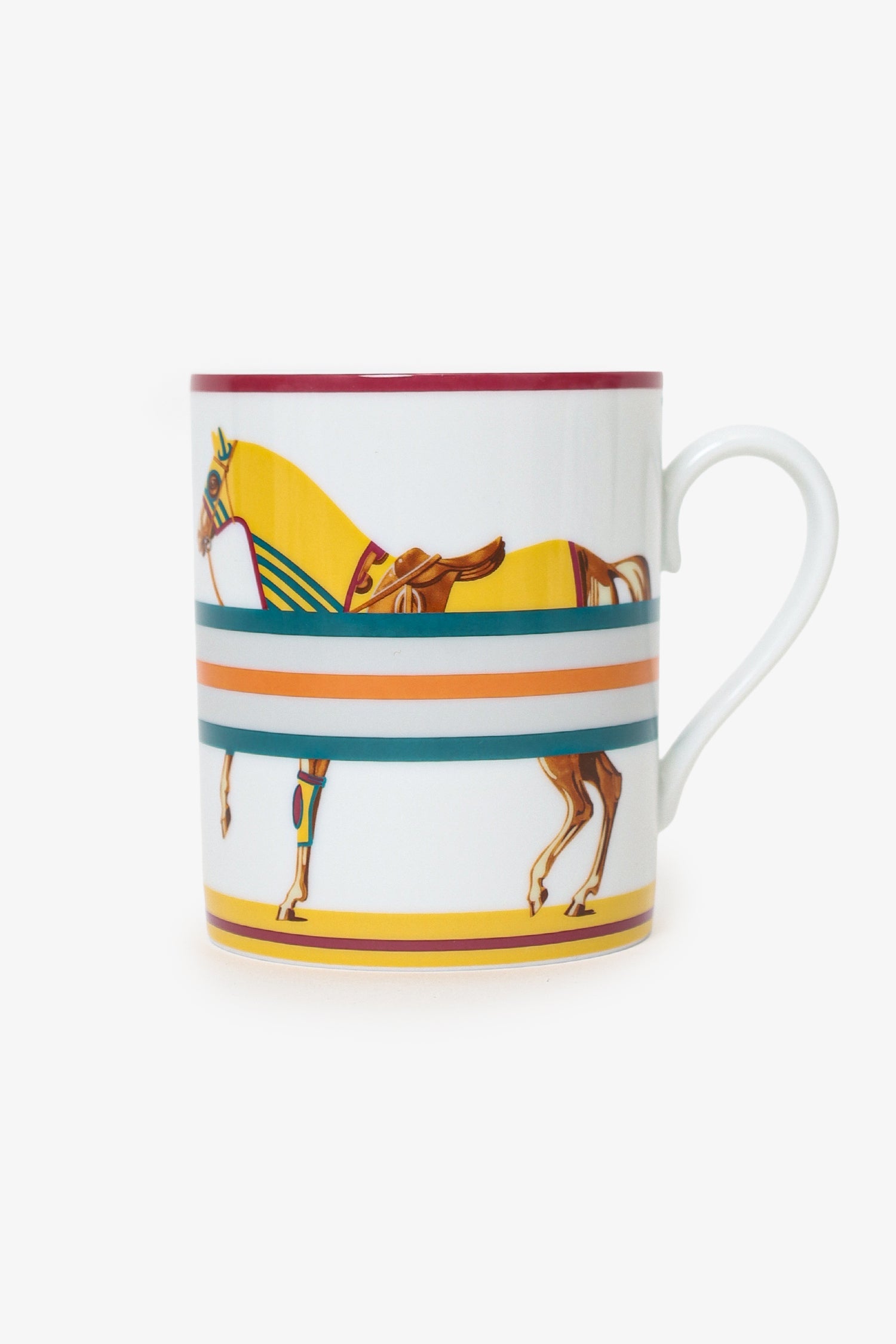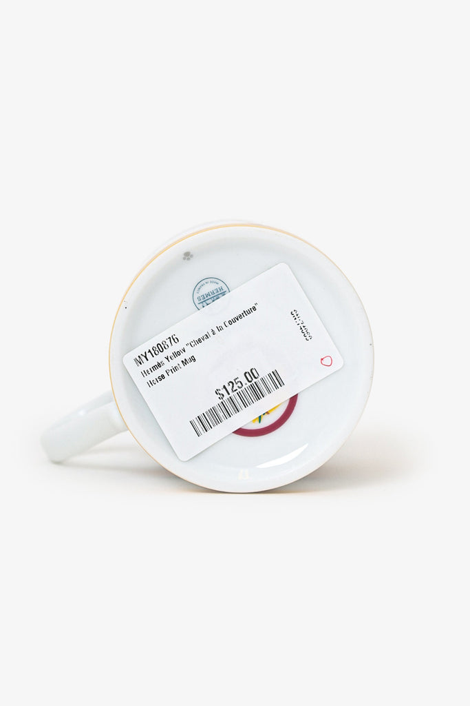 Hermès Yellow "Cheval à la Couverture" Horse Print Mug. Contrast detailing.