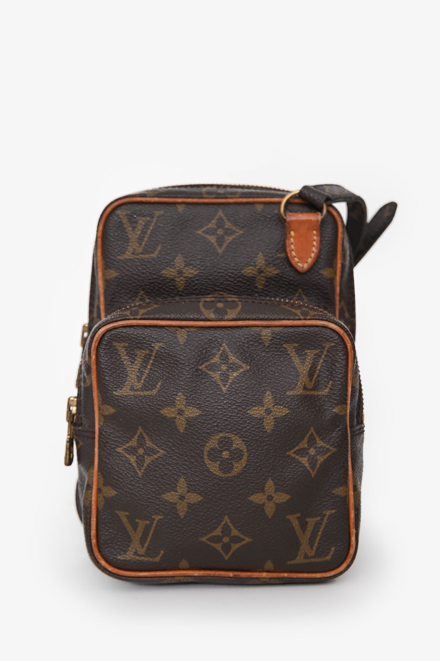 Louis Vuitton 1987 Monogram Mini Amazone. 2 compartments with zip closure. Adjustable canvas strap. Gold-tone hardware. Tonal stitching.