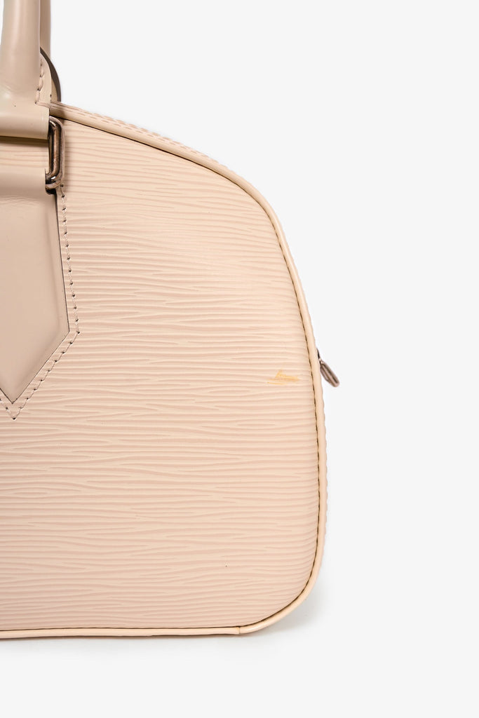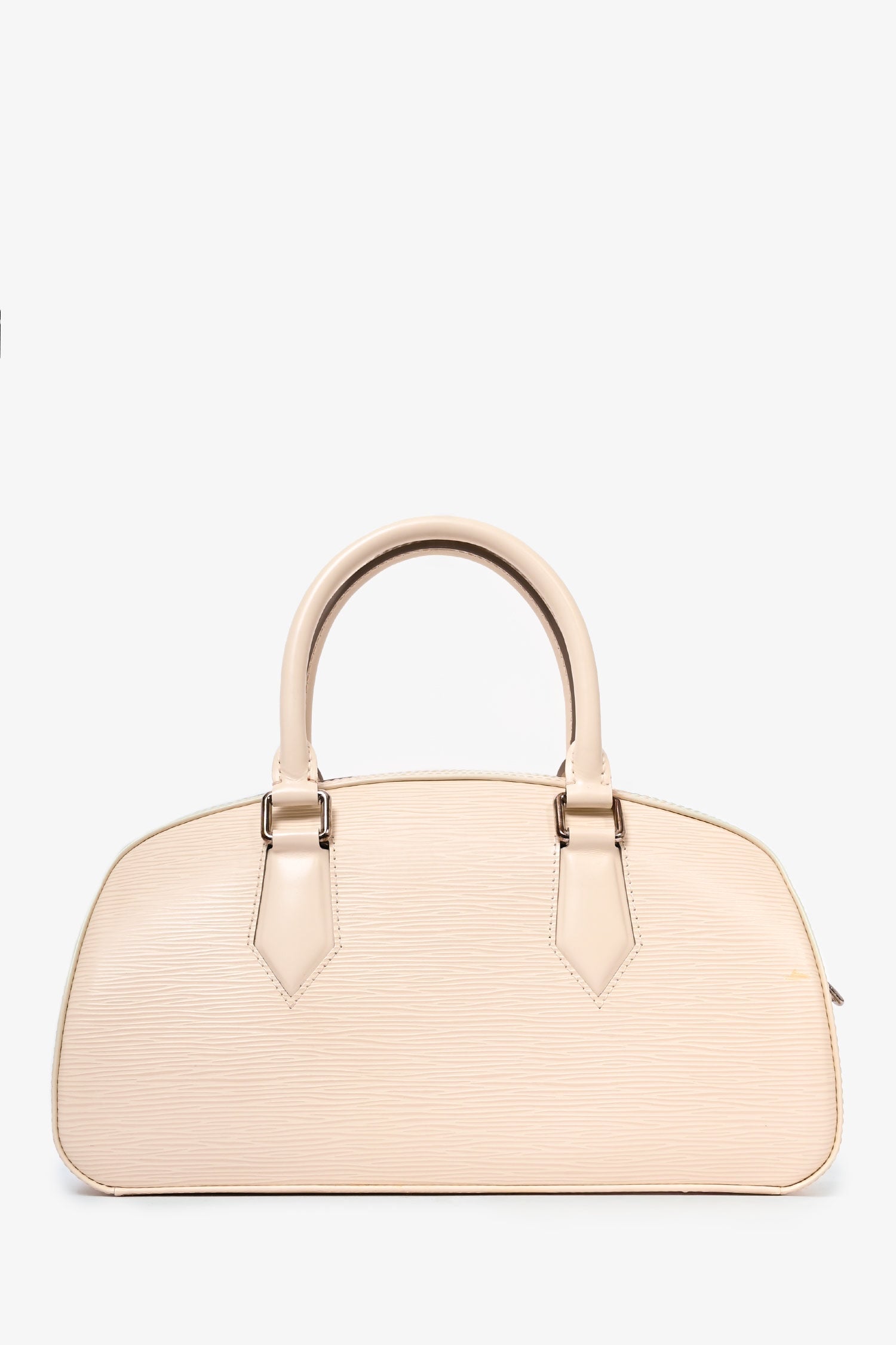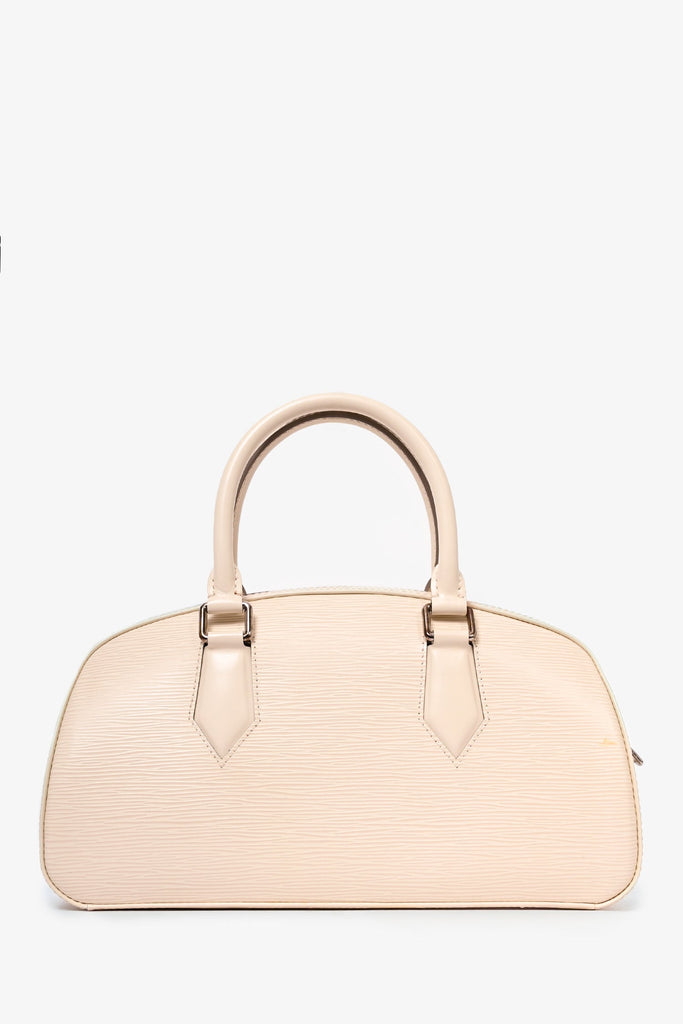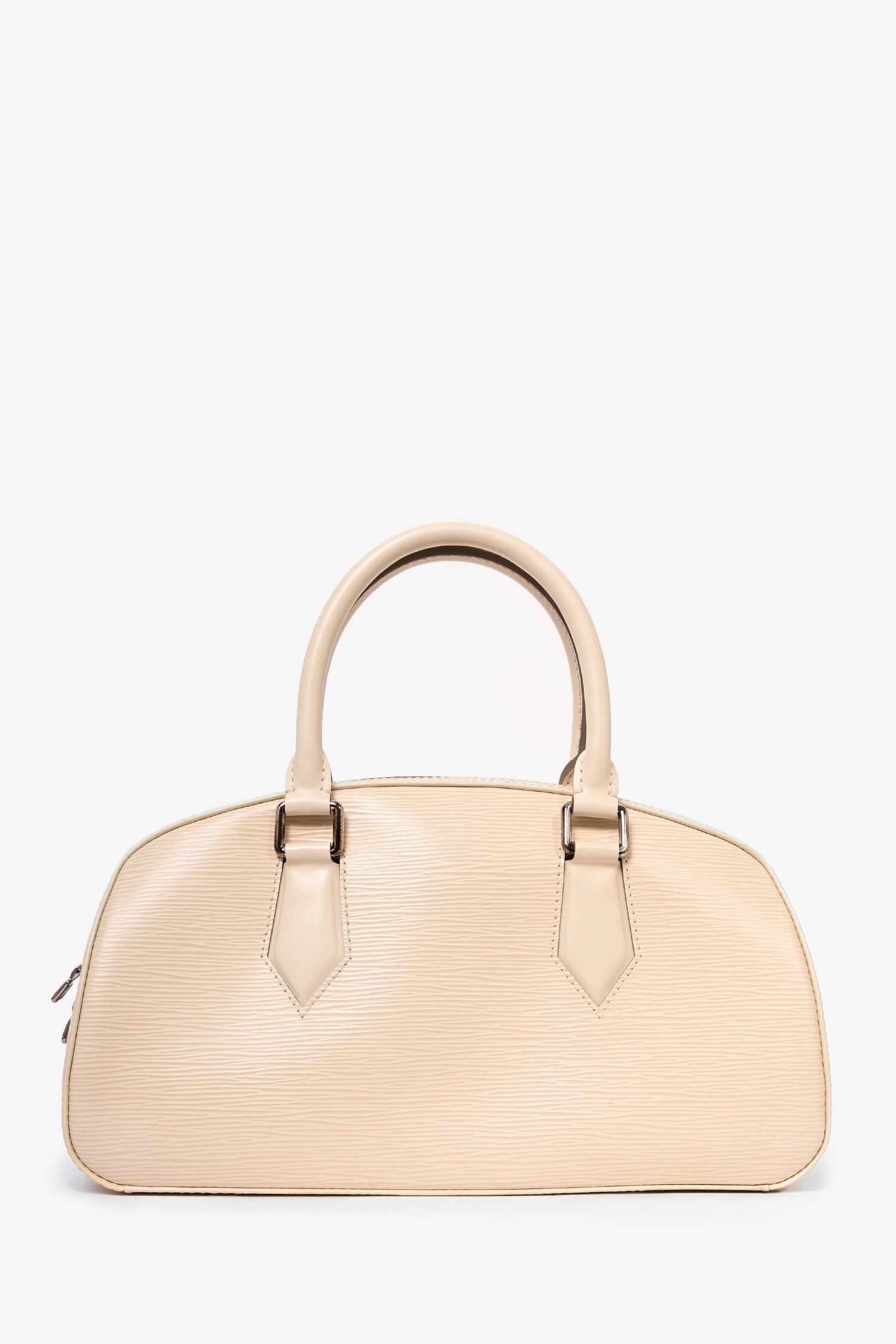 Louis Vuitton 2007 Cream Epi Leather Jasmine Top Handle. Top zip closure. Dual handles. Lined interior. Single interior wall flap with slip pocket. Silver-tone hardware. Tonal stitching.
