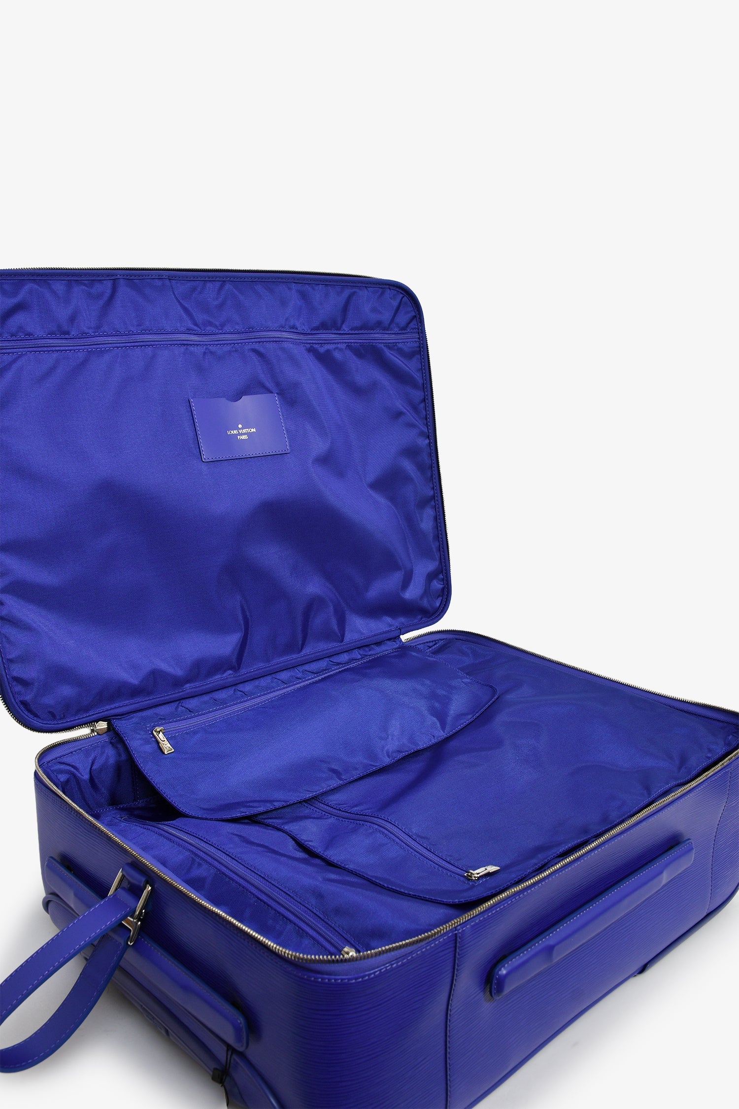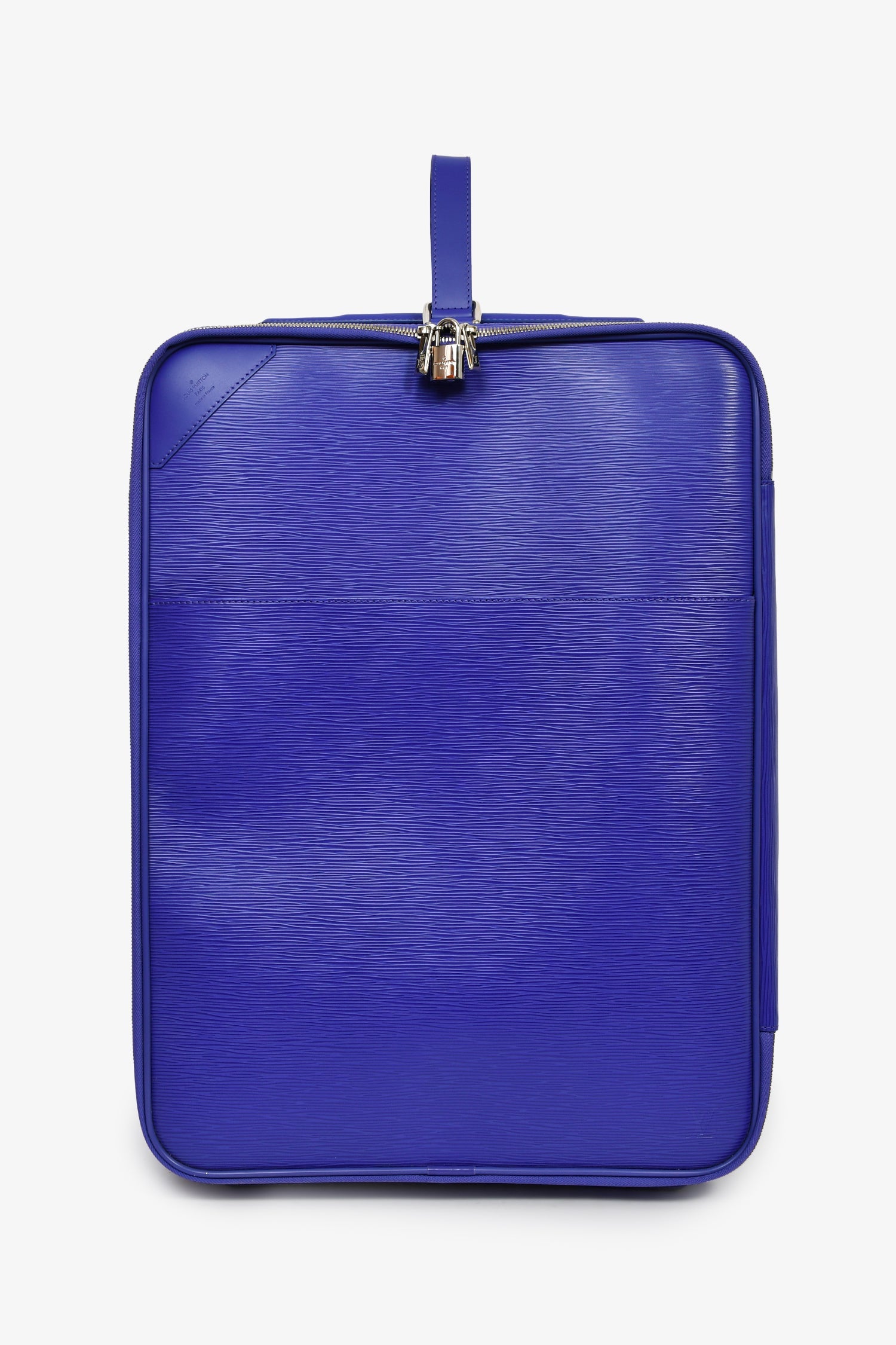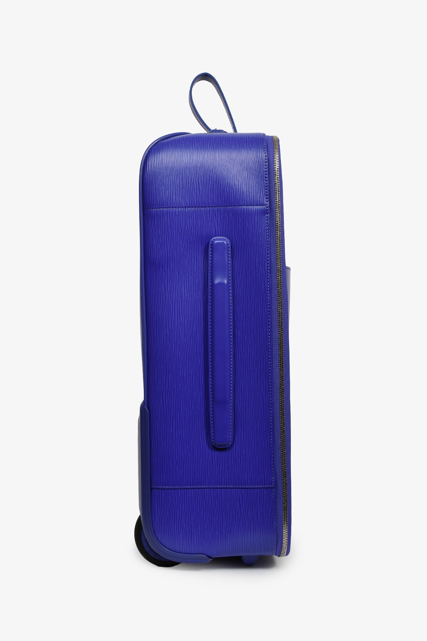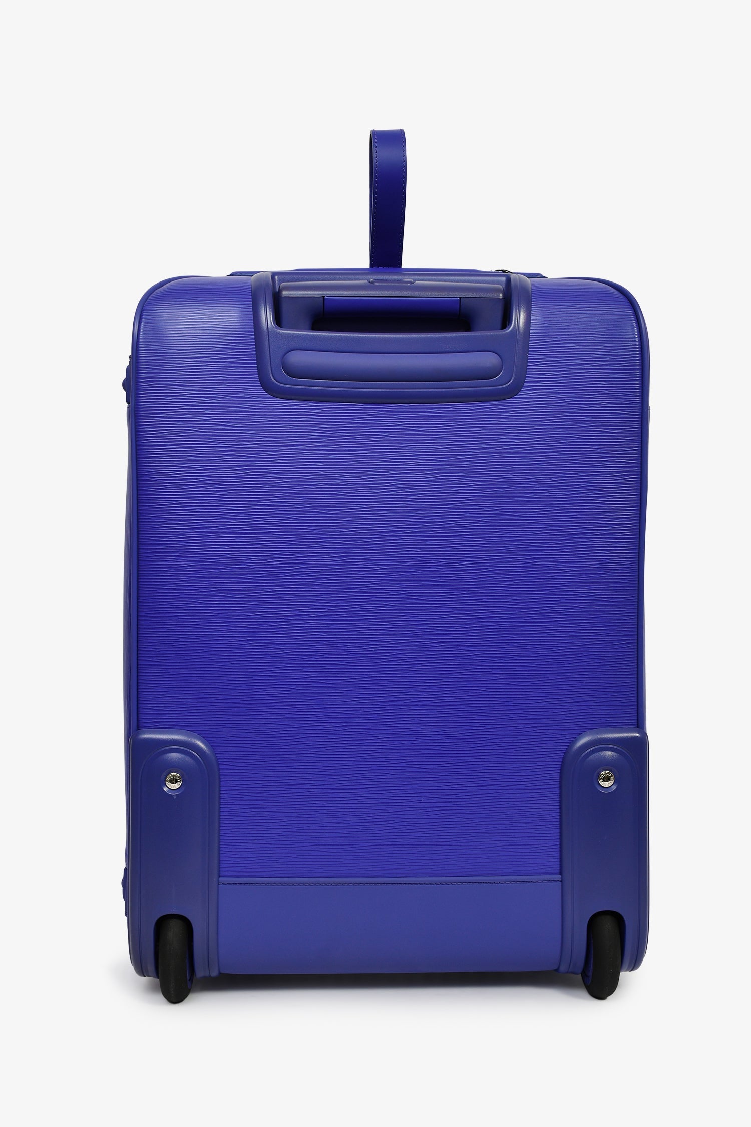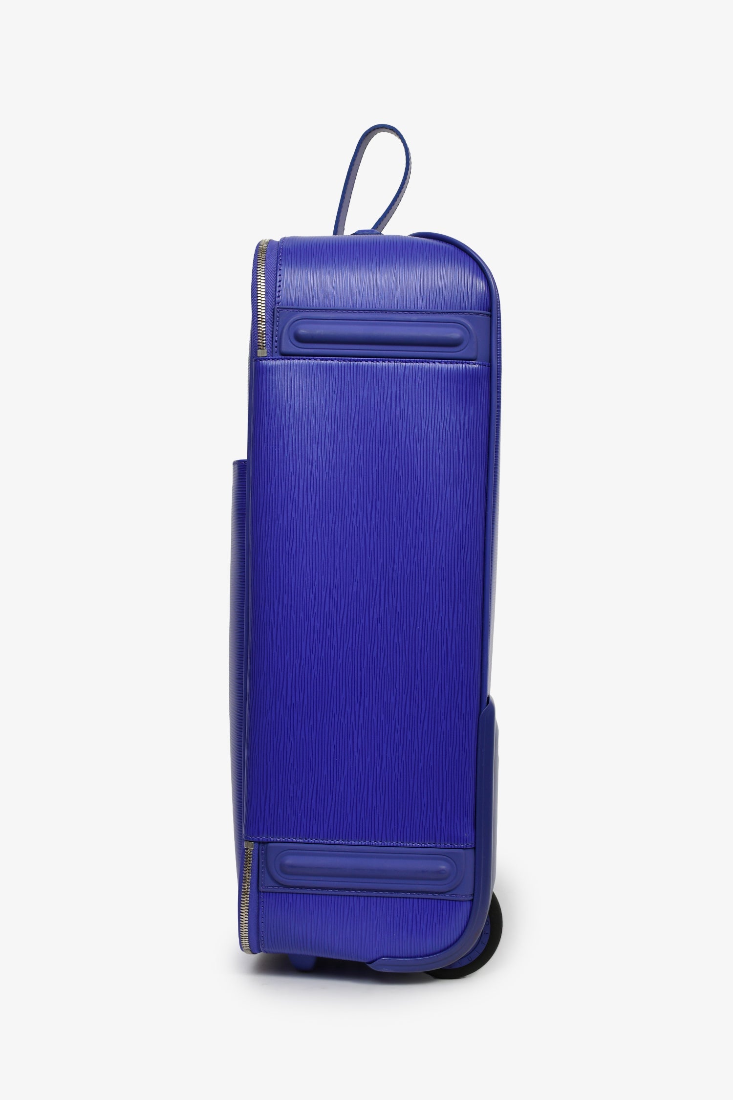 Louis Vuitton 2013 Lilas Epi Leather Pegase 55. Zip around closure. 1 side handle and 1 top telescopic handle. 1 exterior compartment. 4 bottom wheels. Lined interior with 3 zipped compartments. Silver-tone hardware. Tonal stitching.